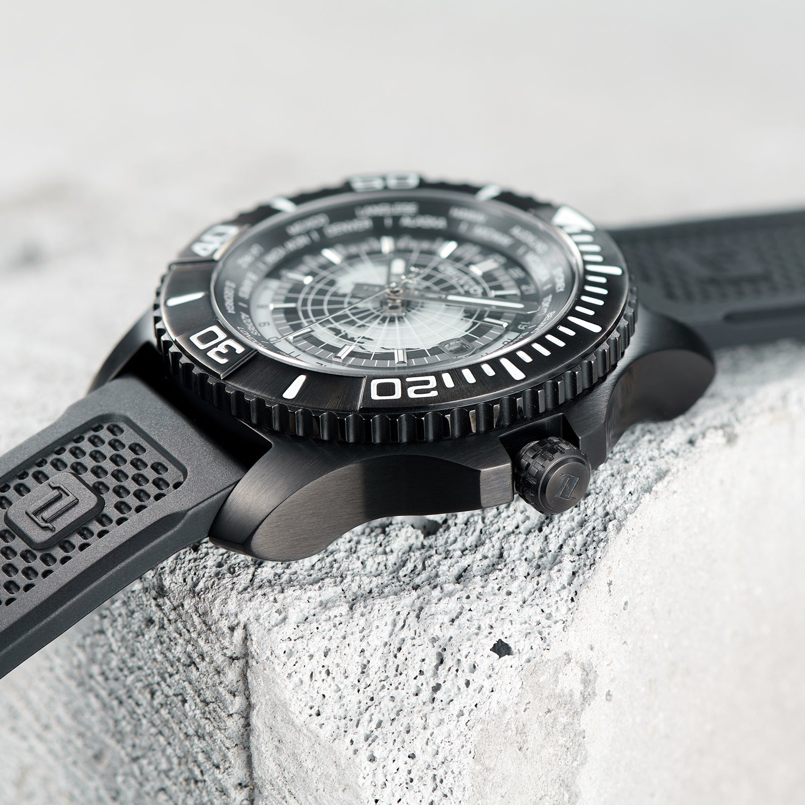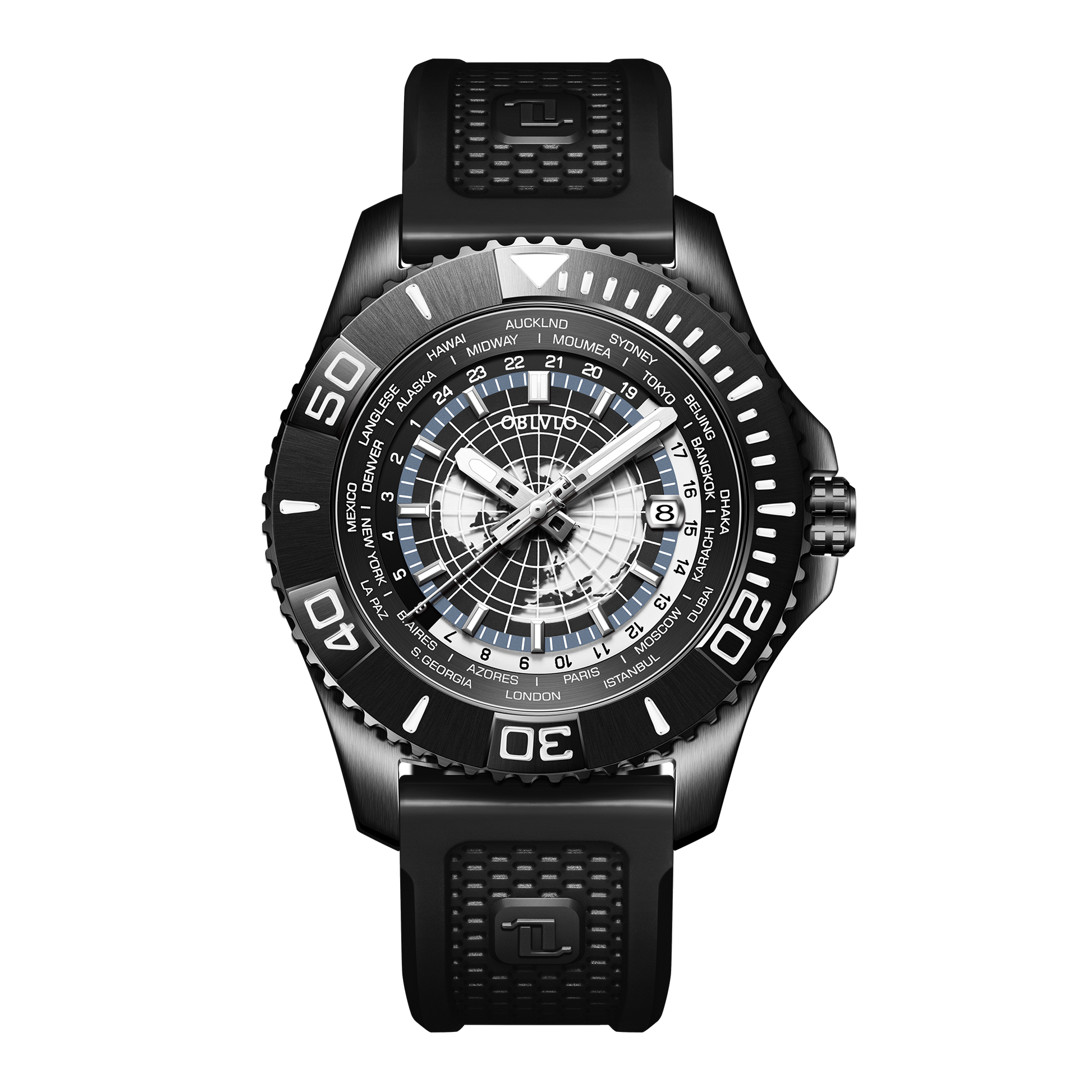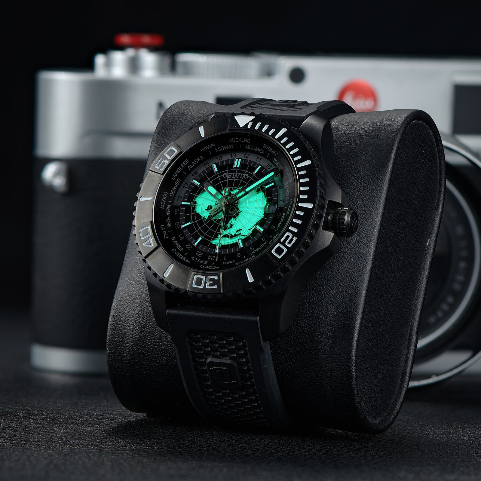 Dial:Black dial,flat map & silver indices and hands with luminescent coating