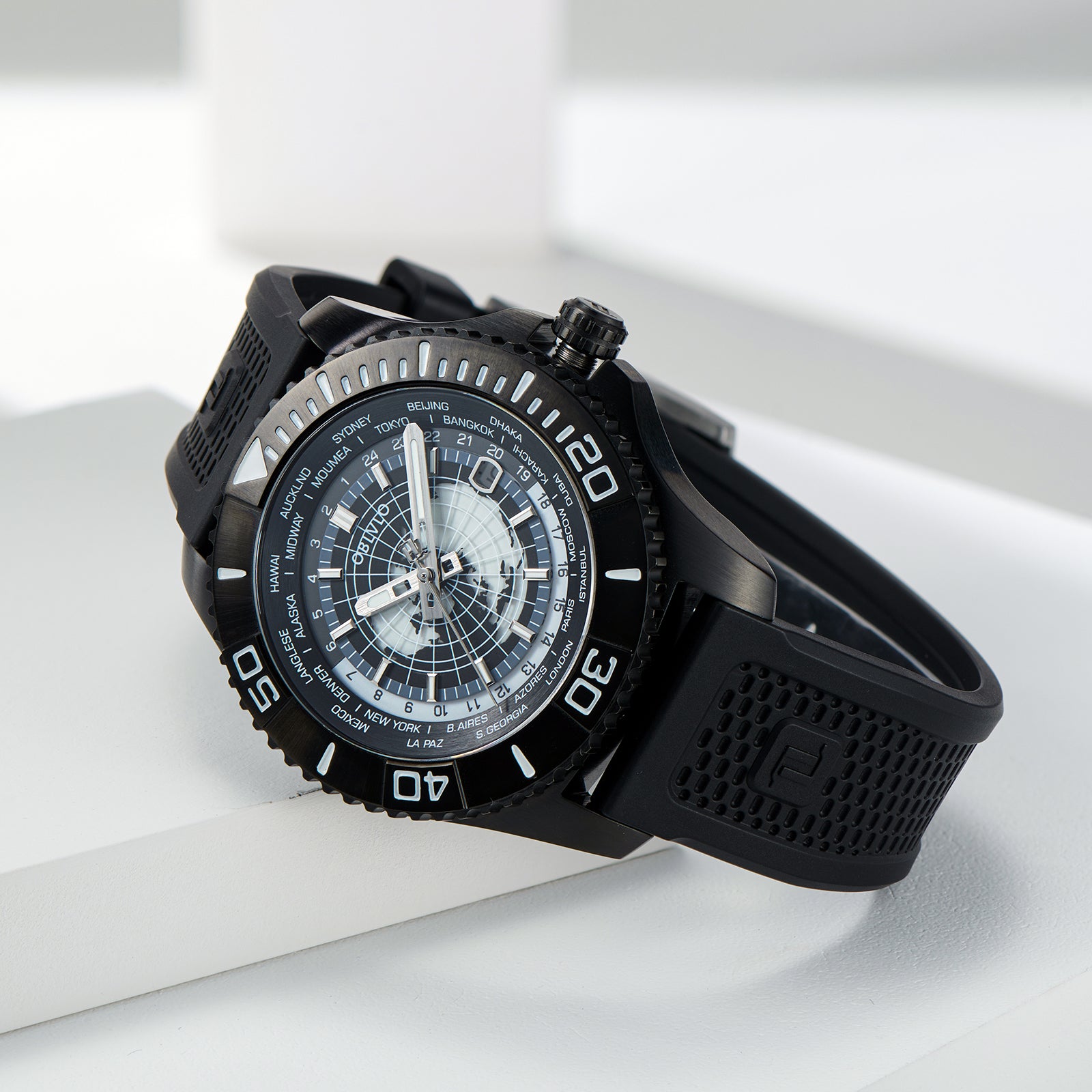 Case:316 Stainless Steel Plated With Black PVD & Black Ceramic Bezel
