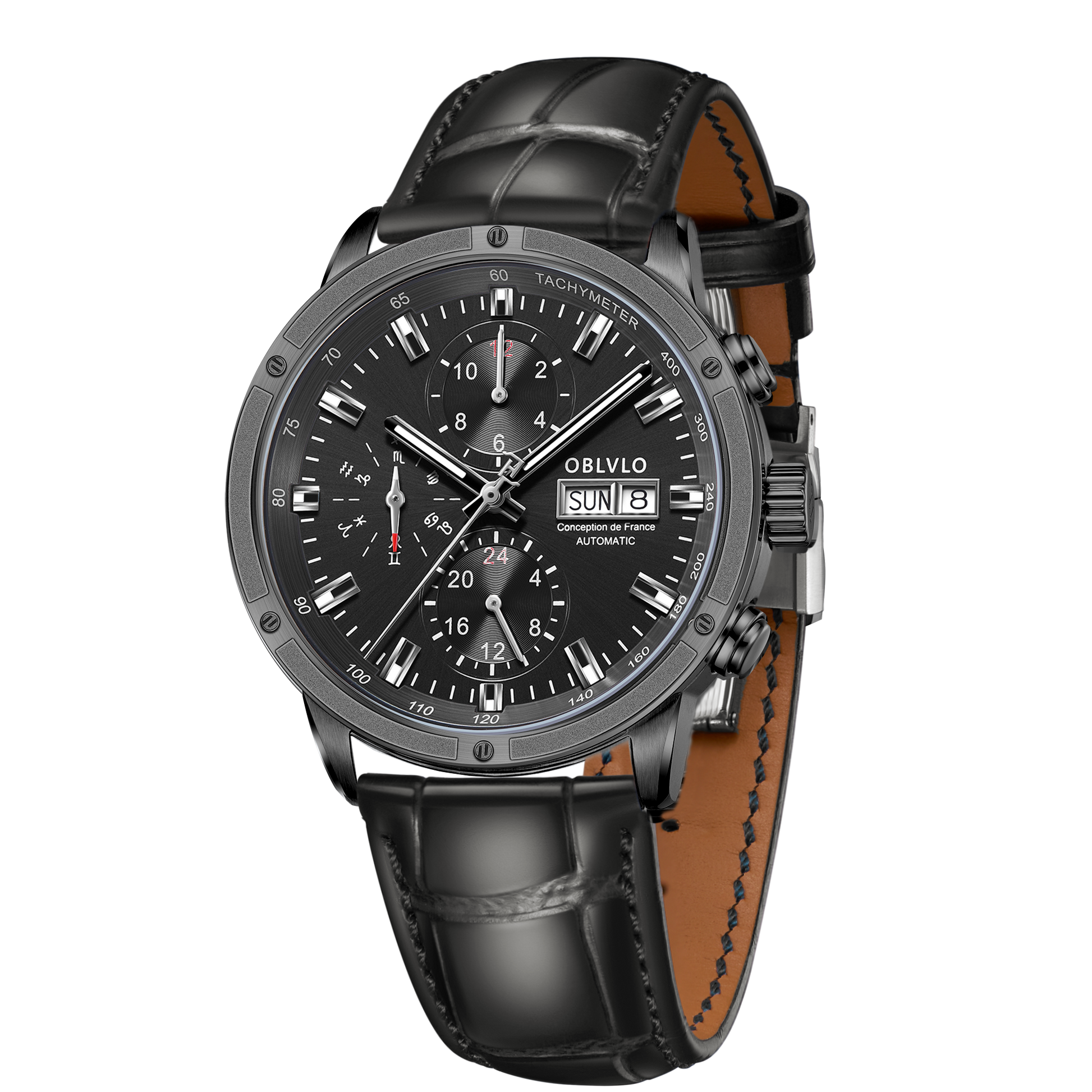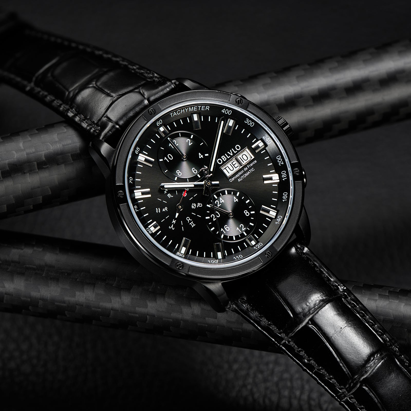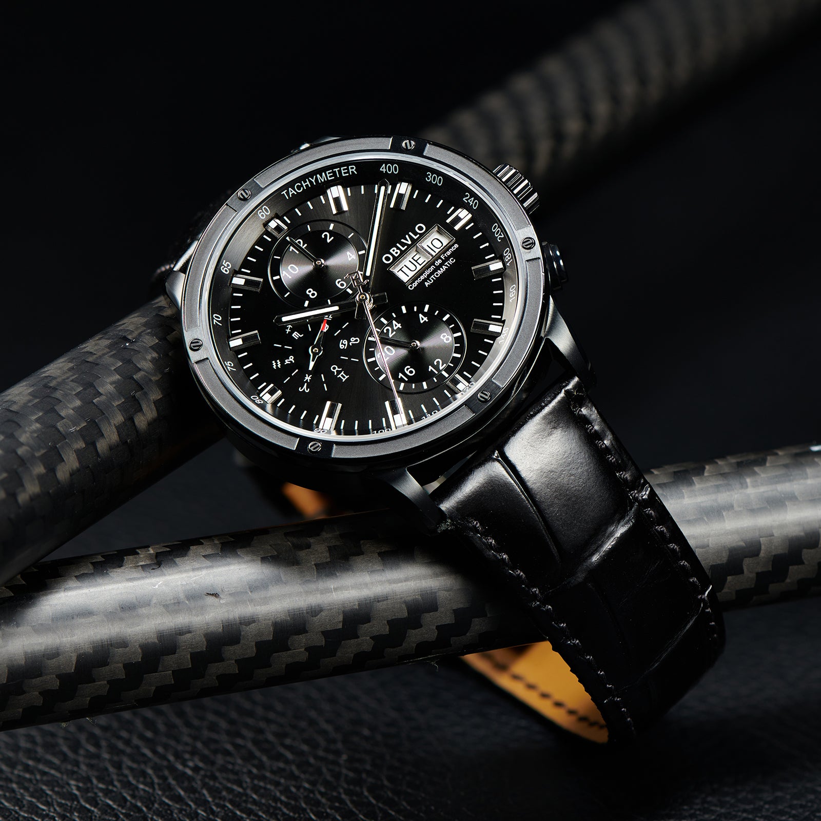 Our Black PVD Oblvlo automatic chronograph pilot watches exemplify the perfect balance between fashion and functionality. They are meticulously crafted with attention to detail, ensuring that you have a timepiece that is both stylish and reliable.