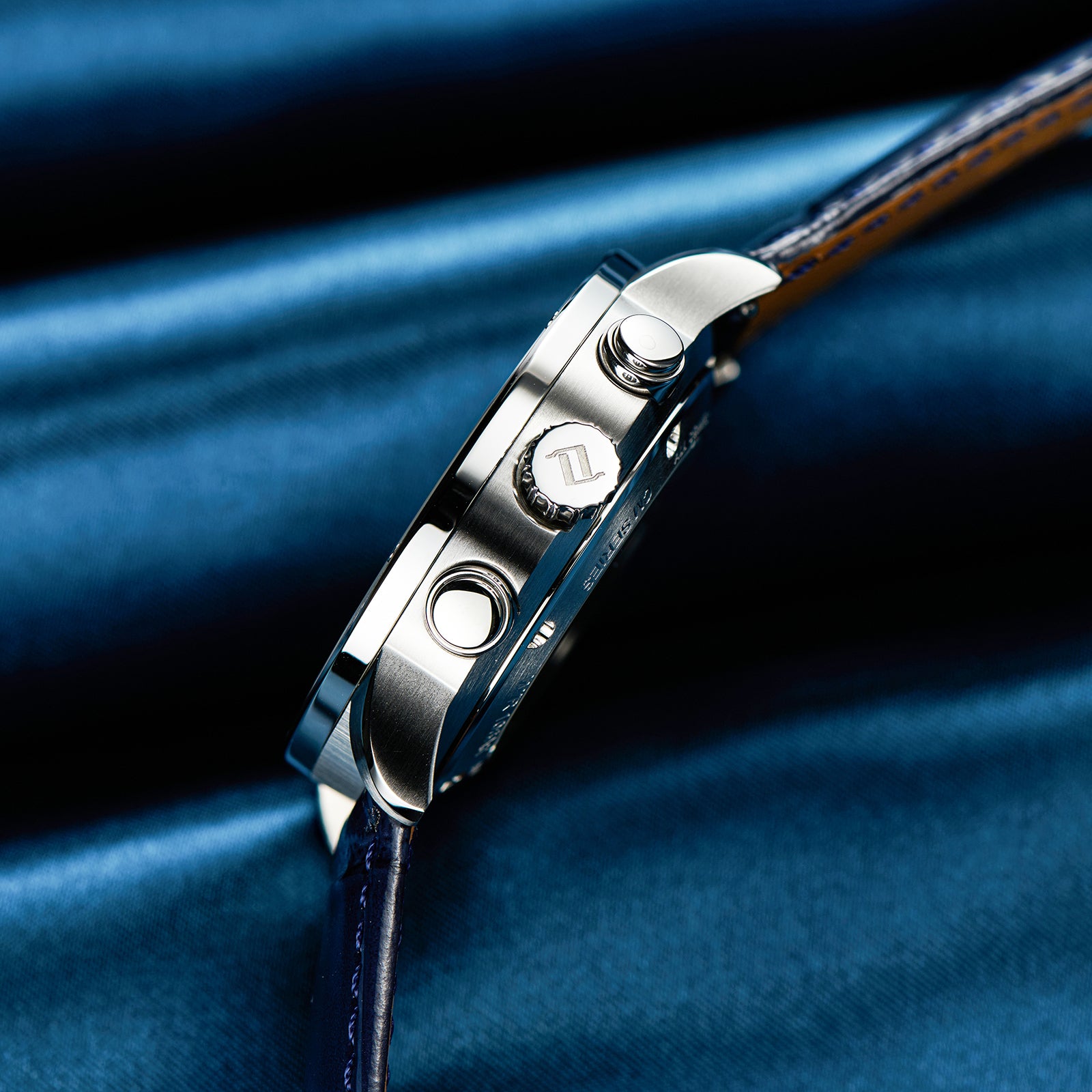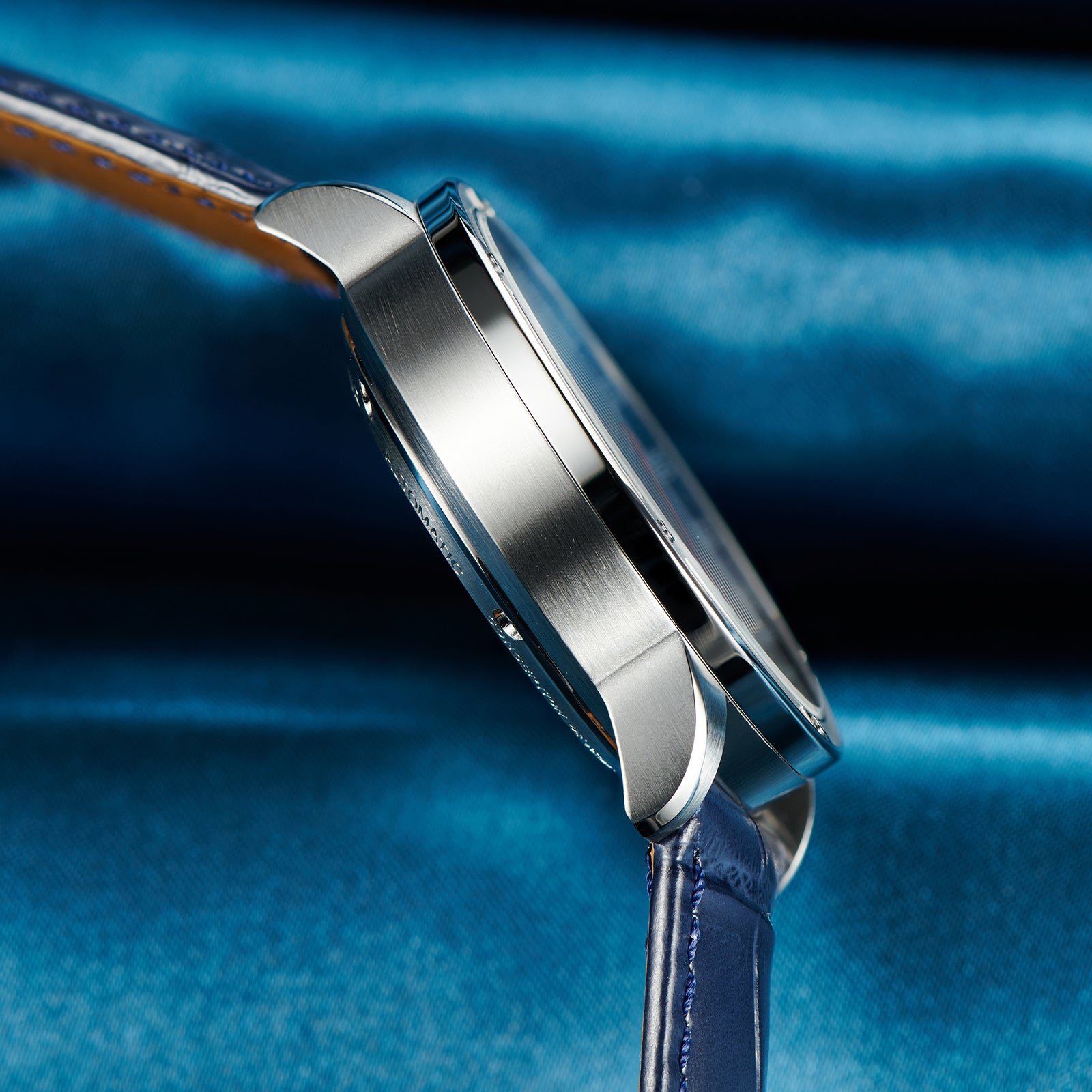 Dial:Blue dial,silver indices and hands with luminescent coating