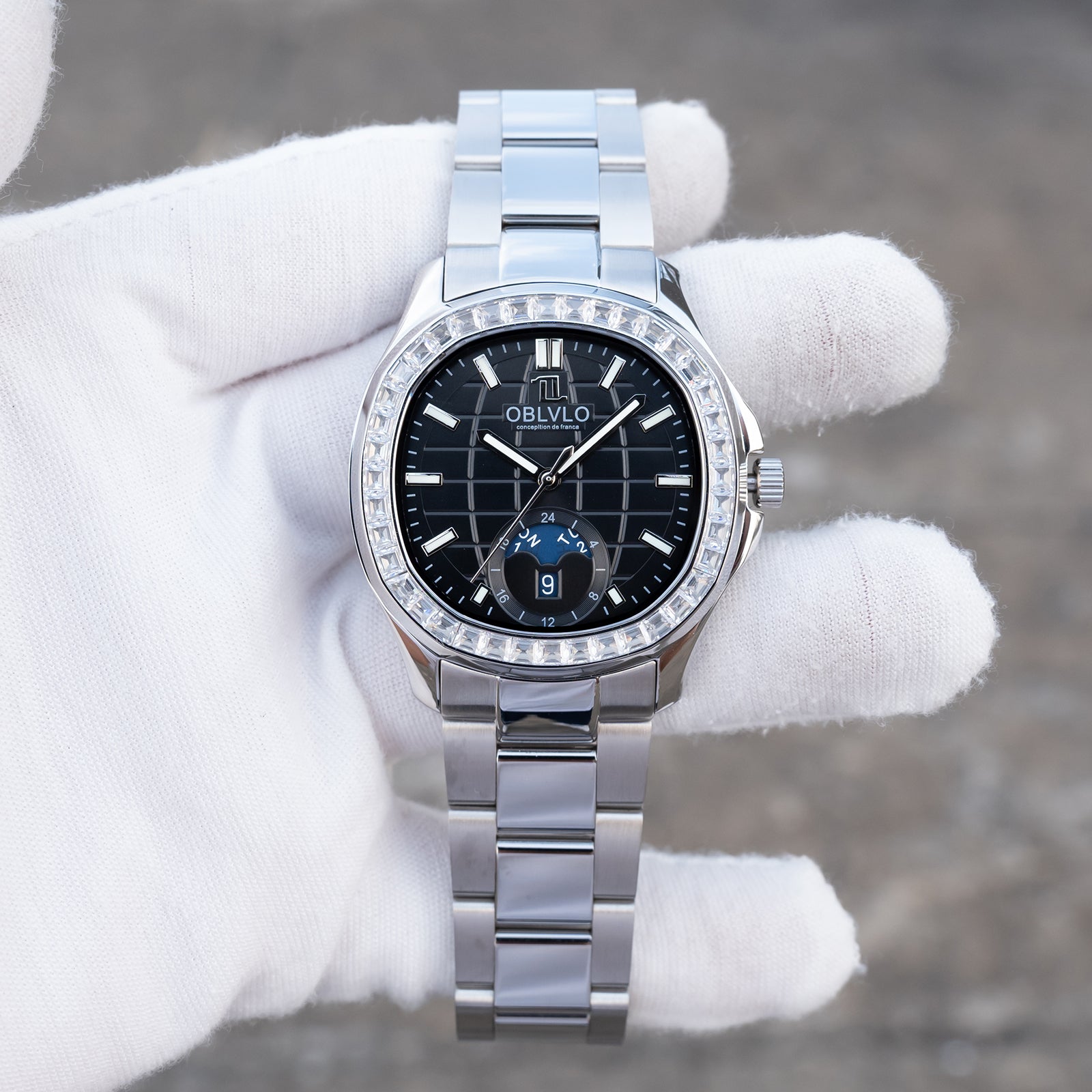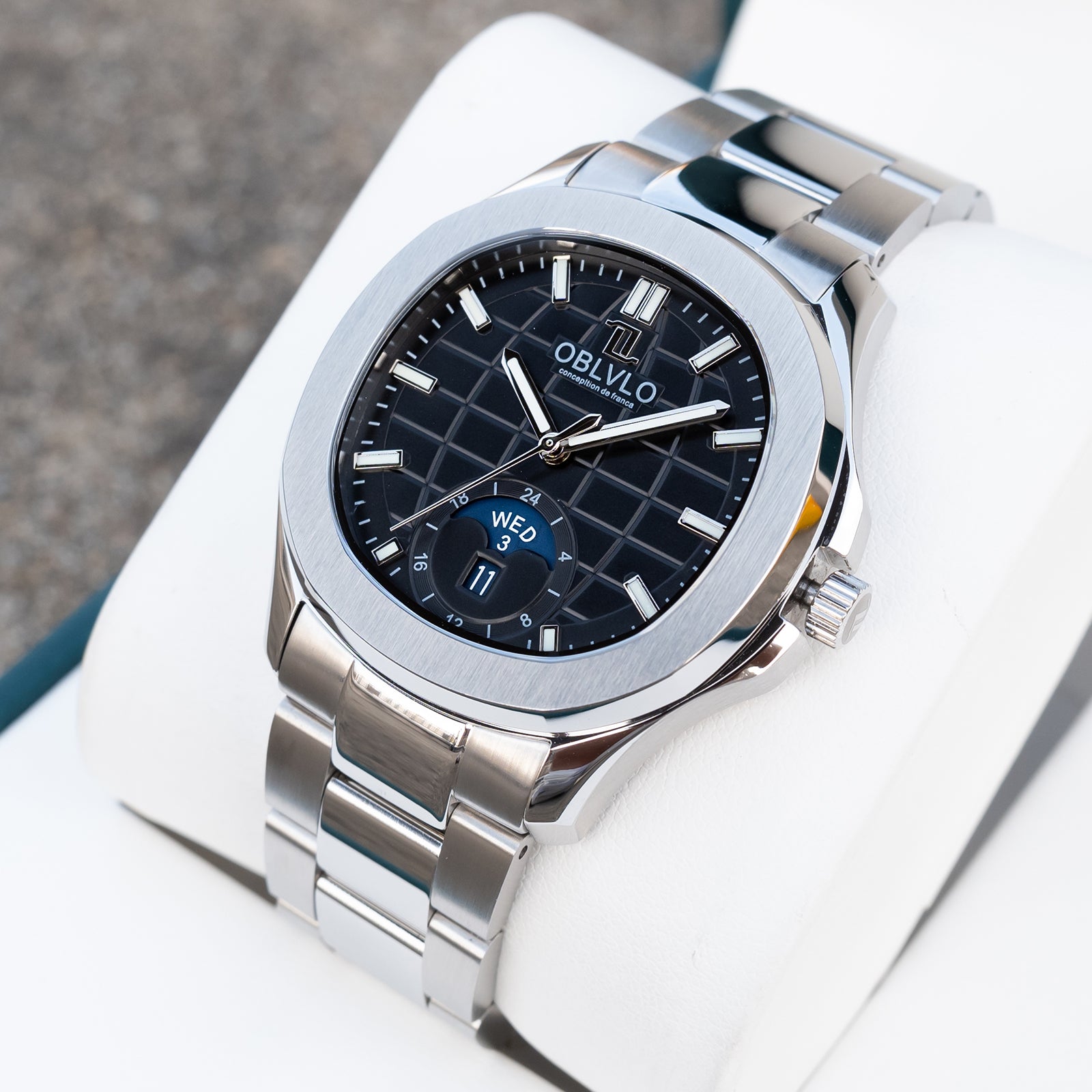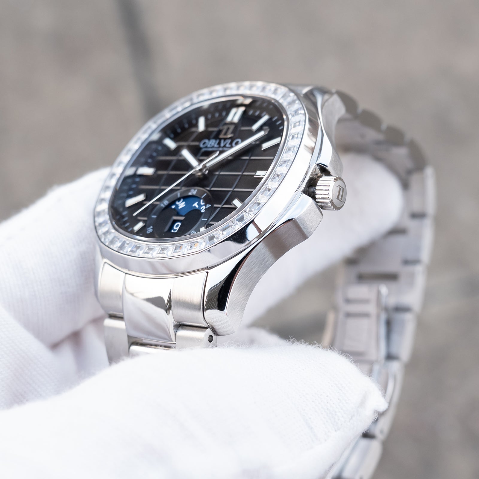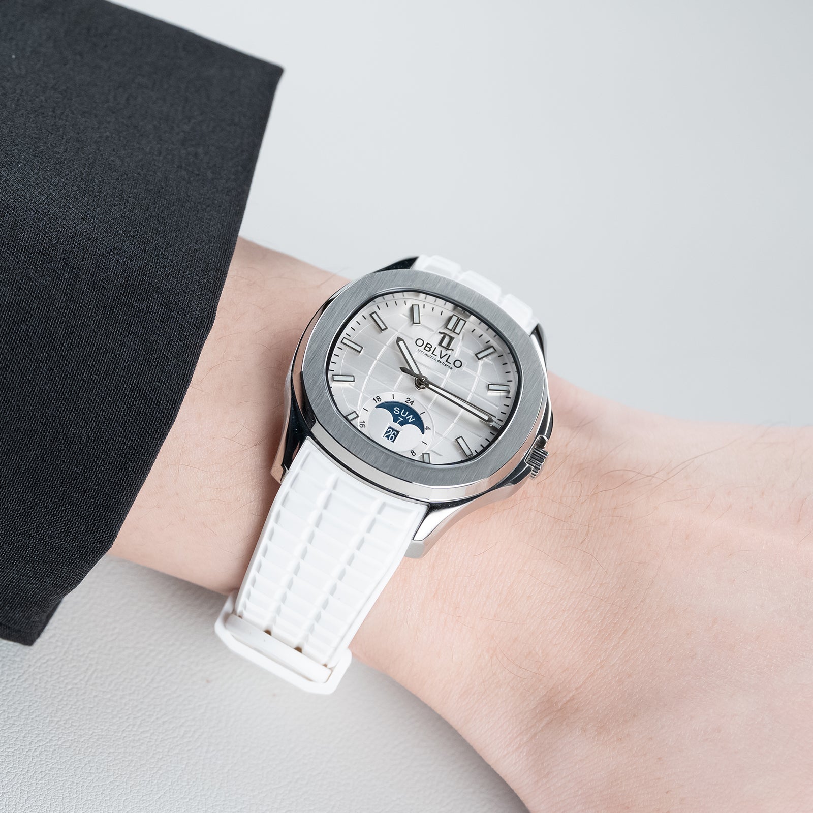 OBLVLO FM-SL-DD-D 39mm Automatic Watches for Men - Multi Calendar Moonphase Business Classic Wrist Watch