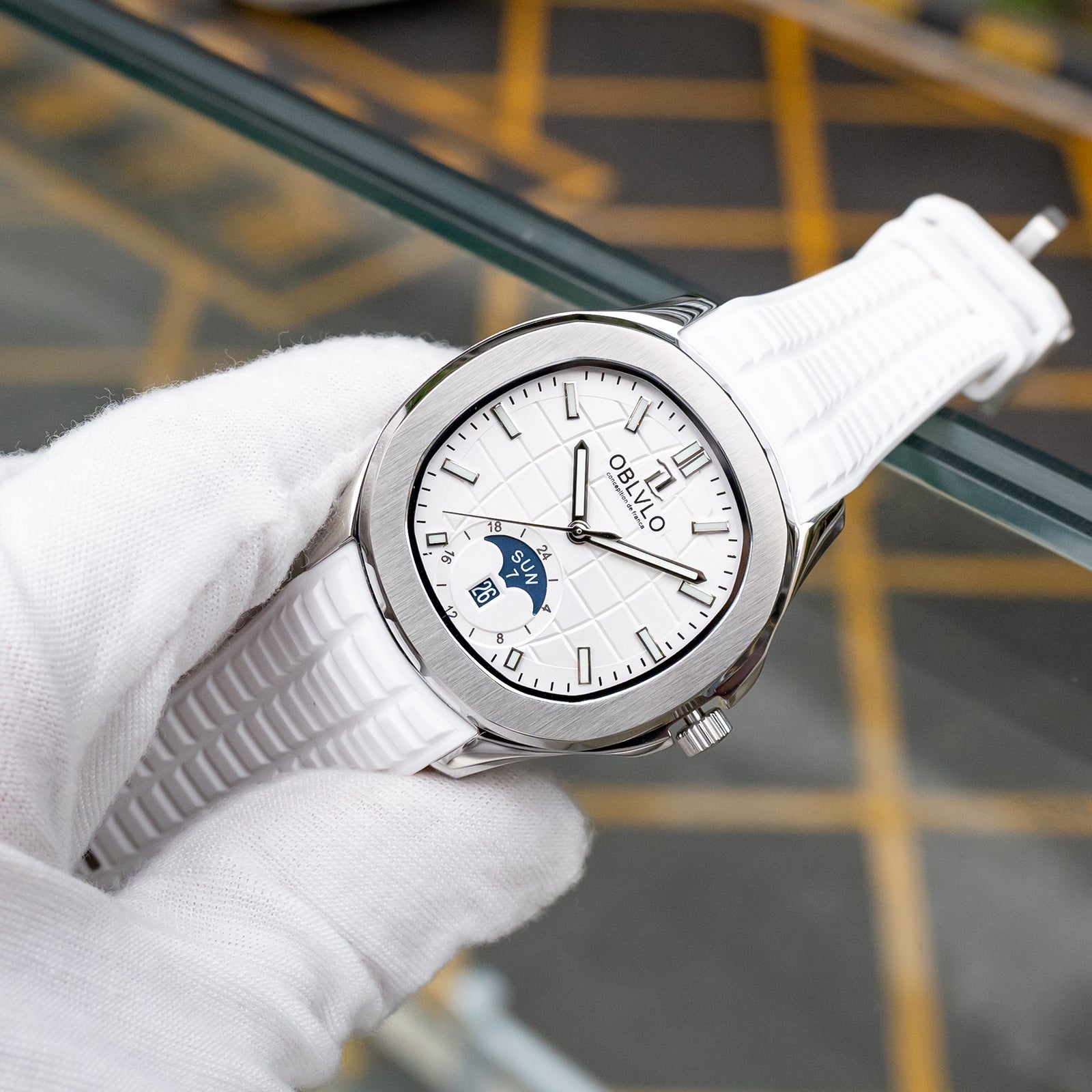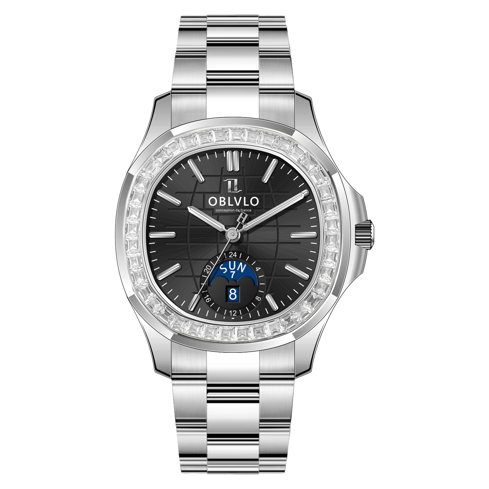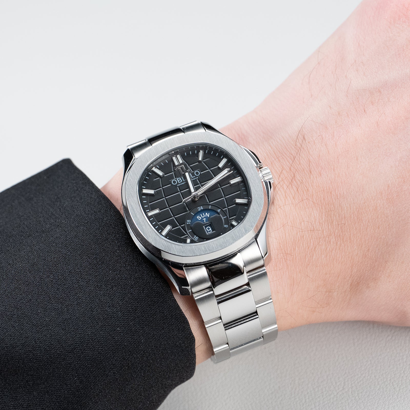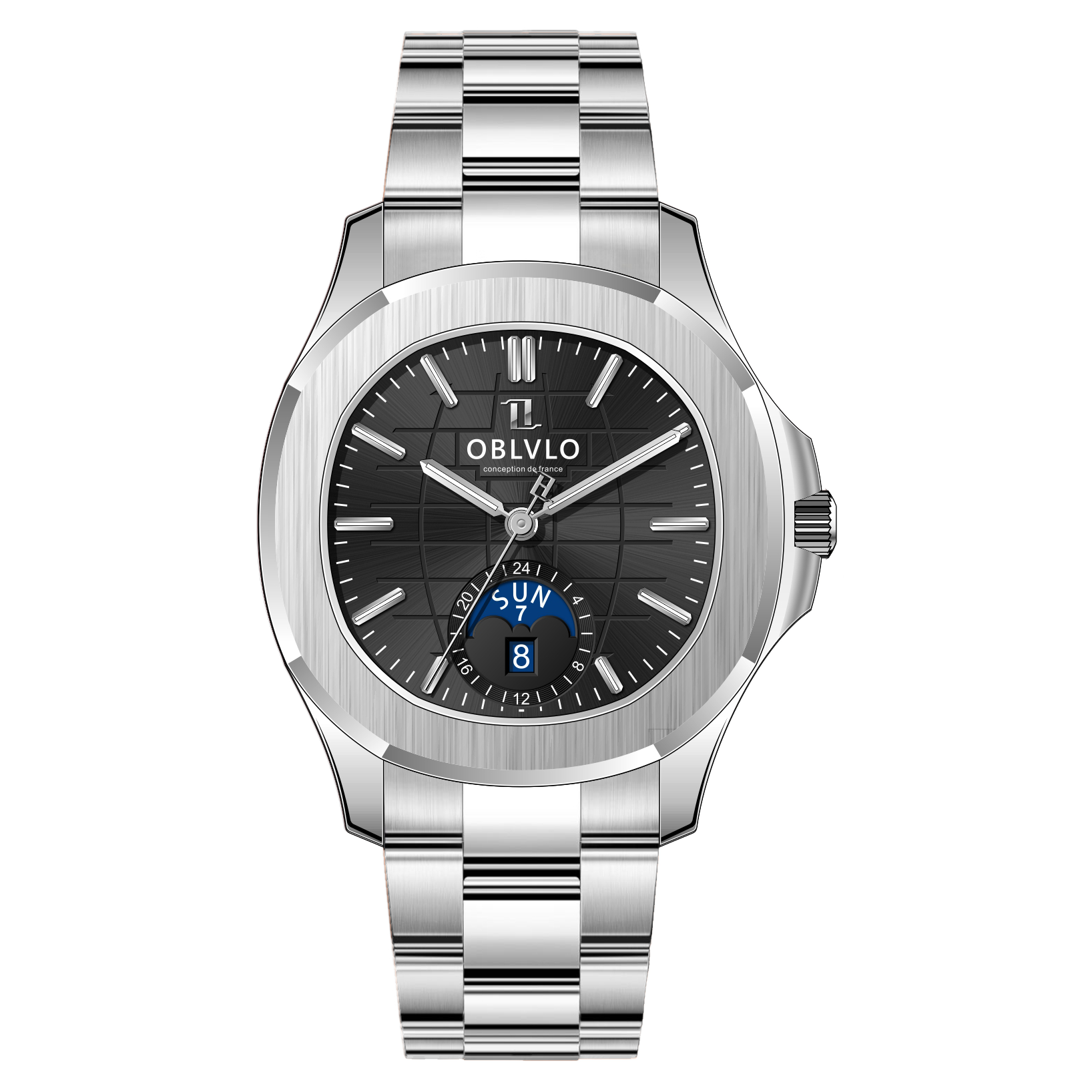 OBLVLO FM-SL-DD-D 39mm Automatic Watches for Men - Multi Calendar Moonphase Business Classic Wrist Watch