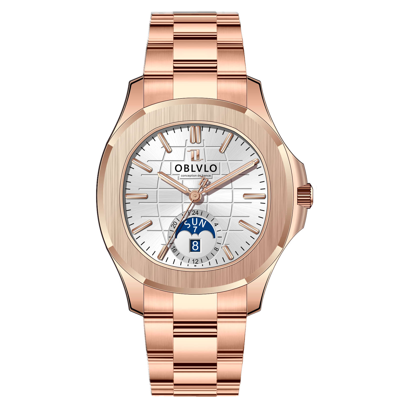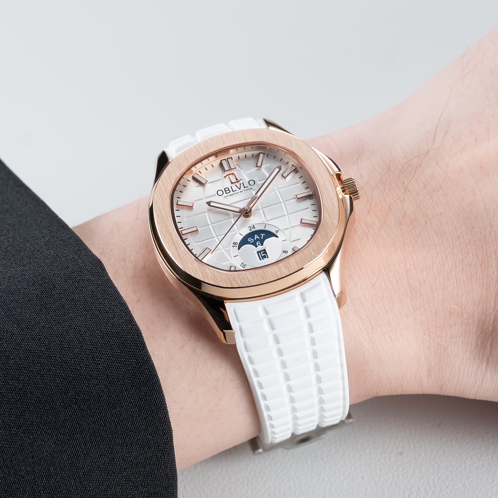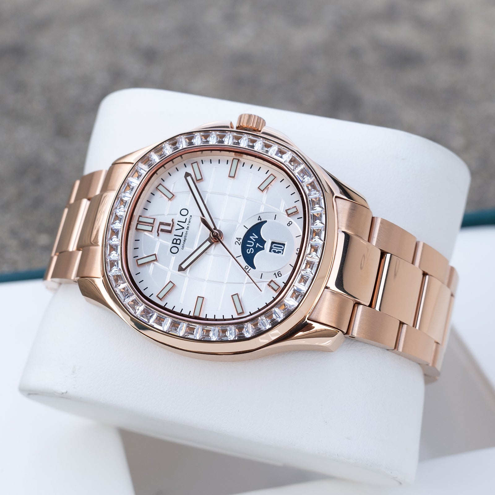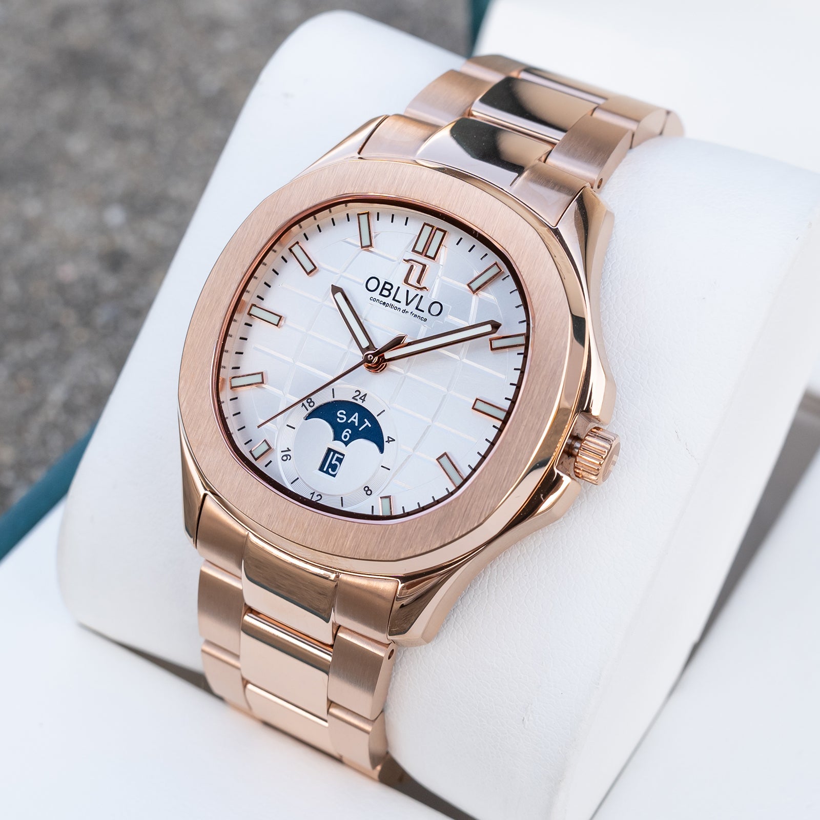 OBLVLO FM-SL-DD-D Rose Gold 39mm Square & White Dial Automatic Moonphase Business Wrist Watches