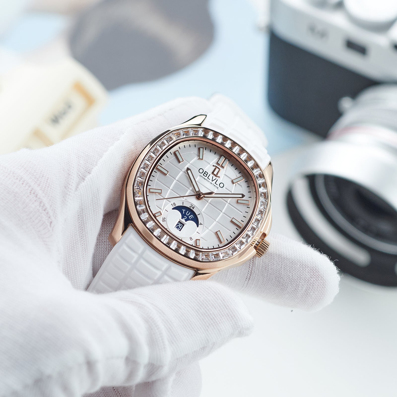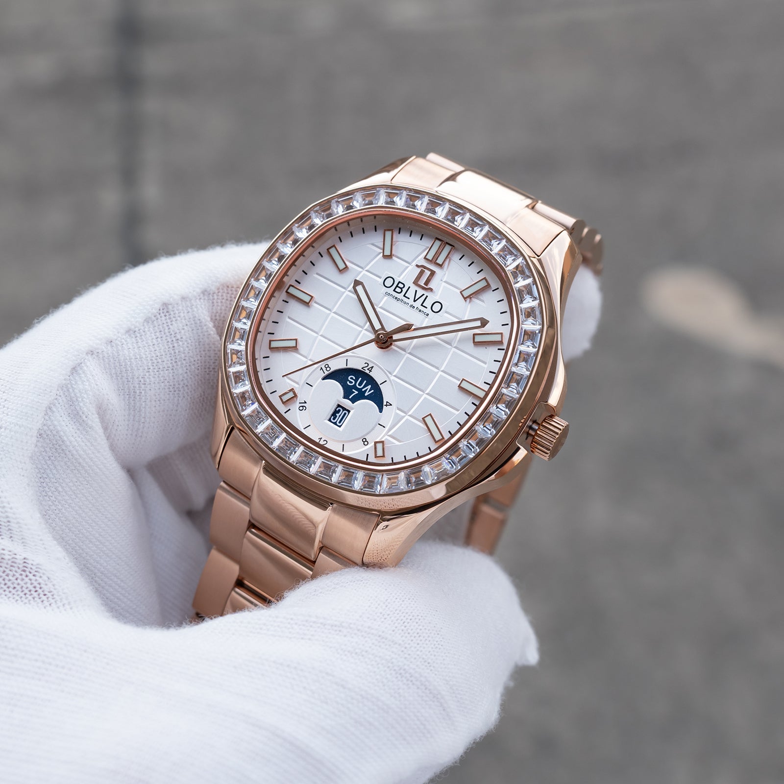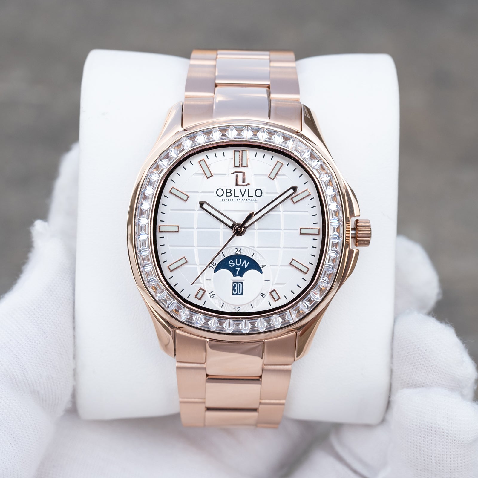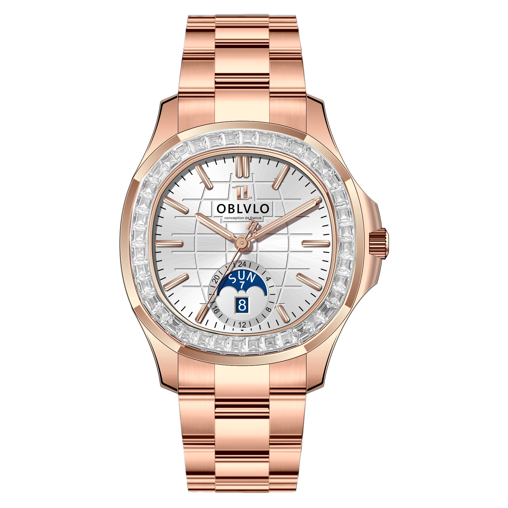 OBLVLO FM-SL-DD-D Rose Gold 39mm Square & White Dial Automatic Moonphase Business Wrist Watches