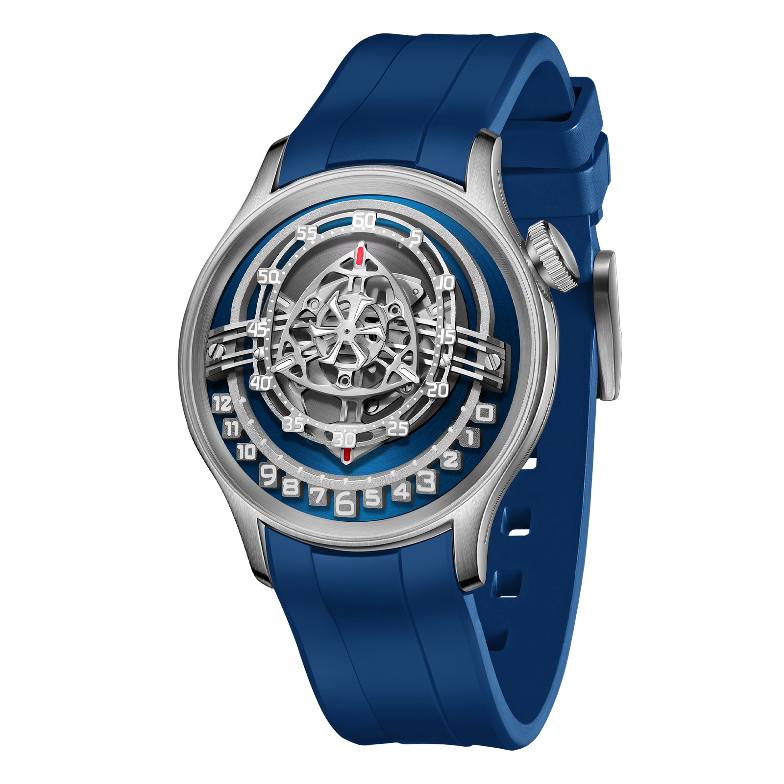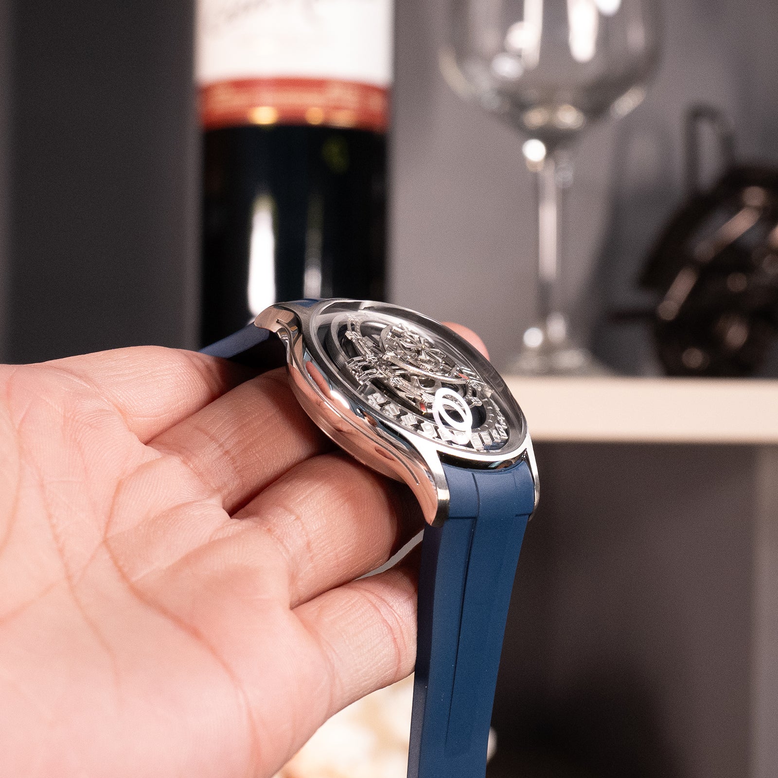 The OBLVLO BLM ROTOR features a striking round case crafted from316 stainless steel, known for its durability and resistance to corrosion. Measuring 41mm in diameter and 12mm in thickness, this watch is designed to make a statement without being overly bulky. The blue fluoro rubber strap adds a contemporary twist, ensuring comfort and flexibility for daily wear.