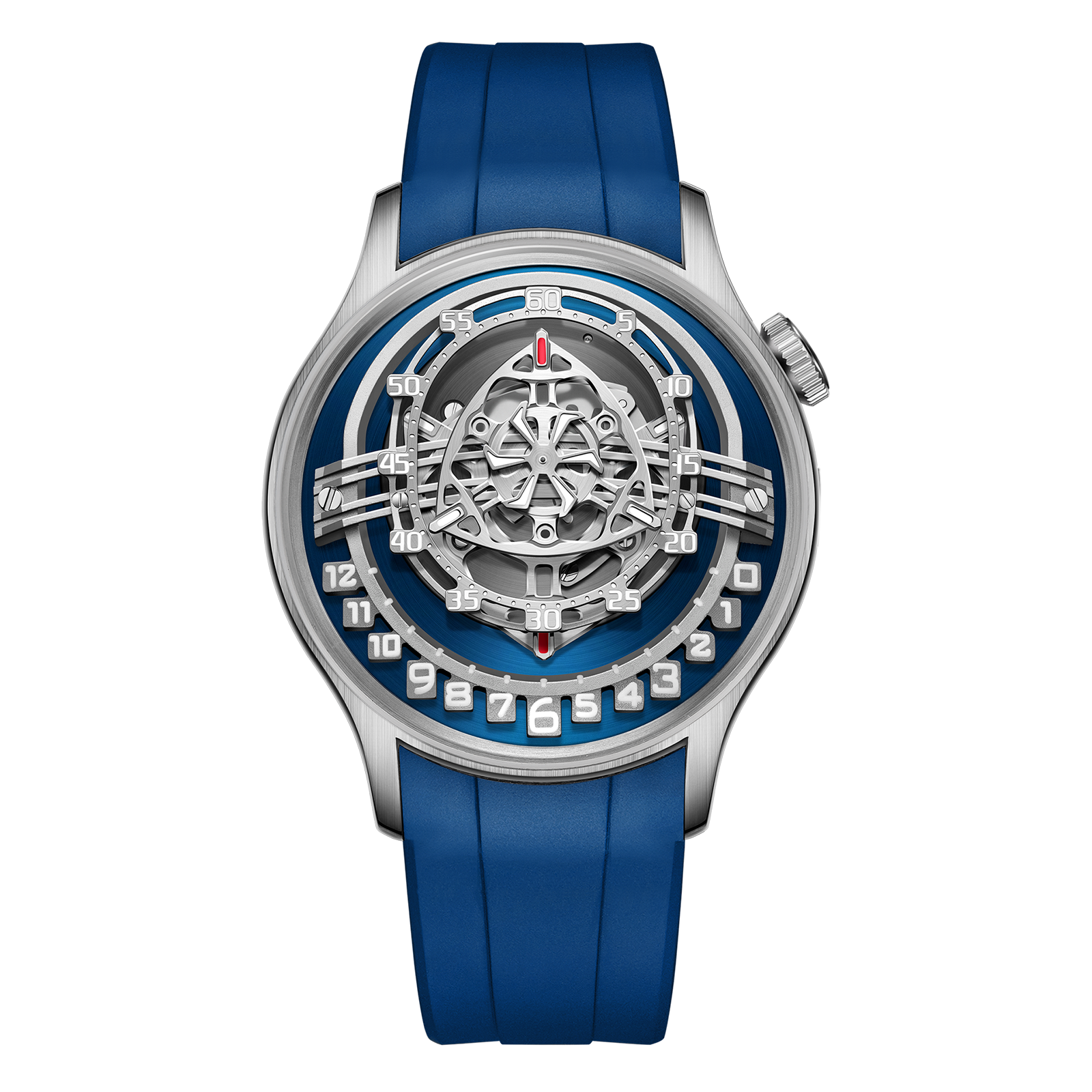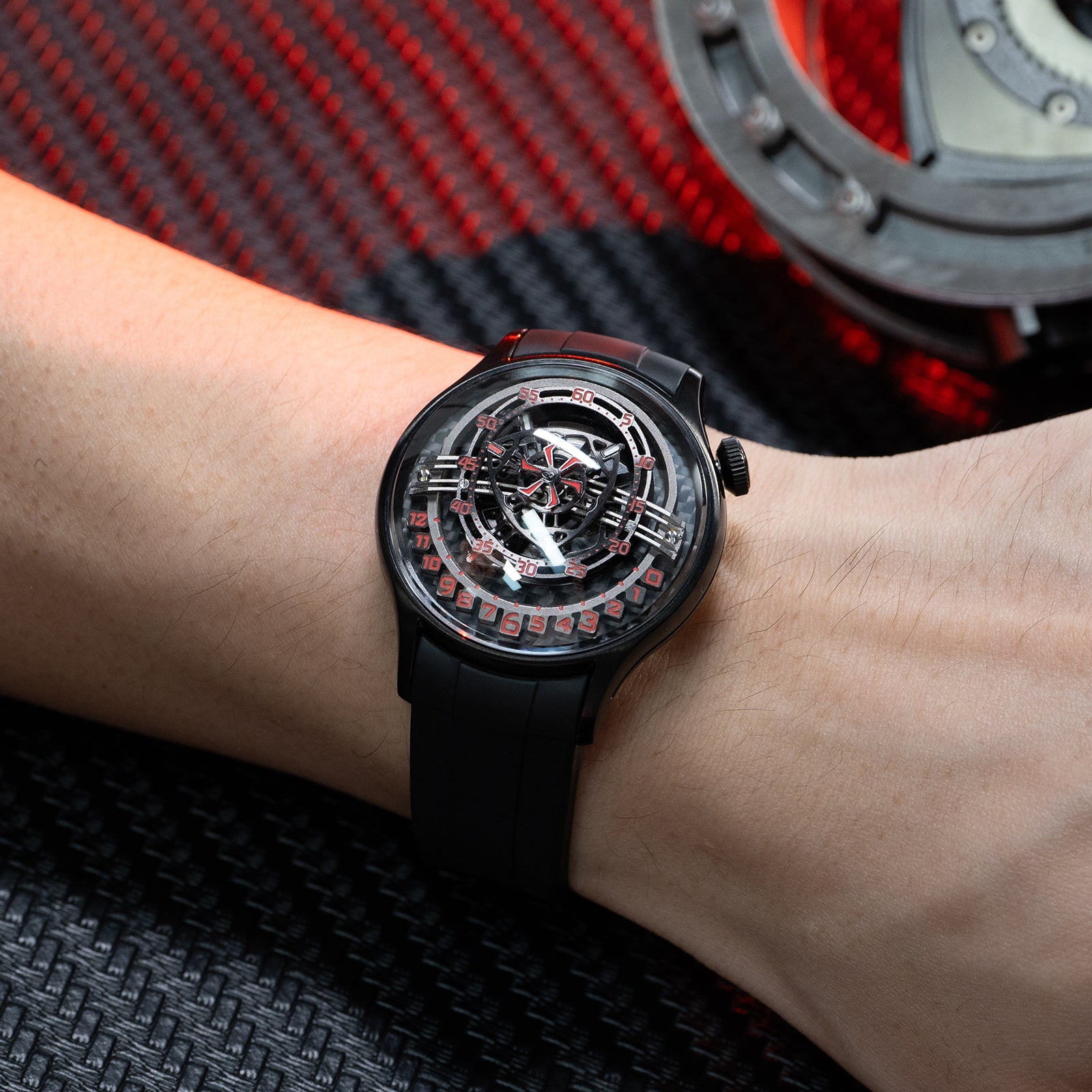 Dial:Black Dial, Unique Silver Rotary Engine Style Mechanical Rotating Indices, And Hands With Luminous Paint.
