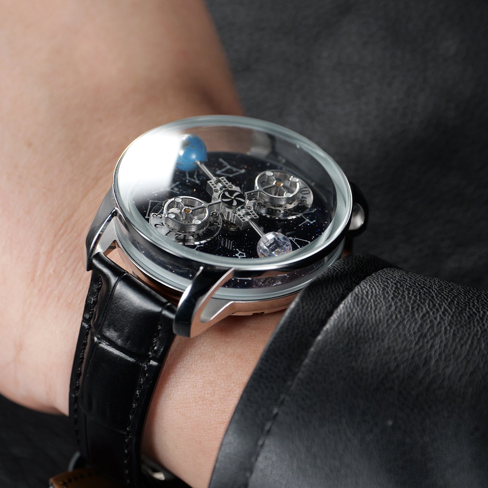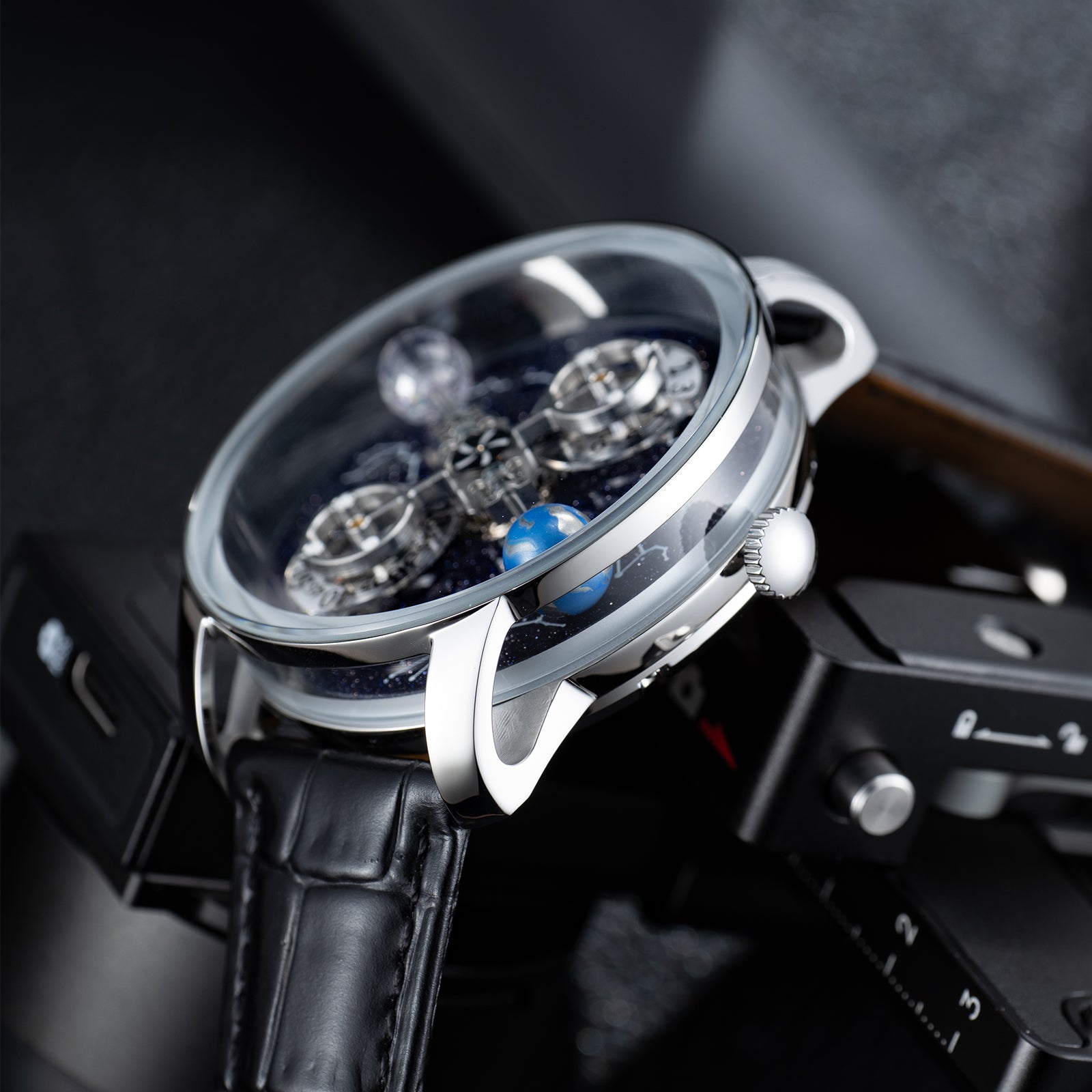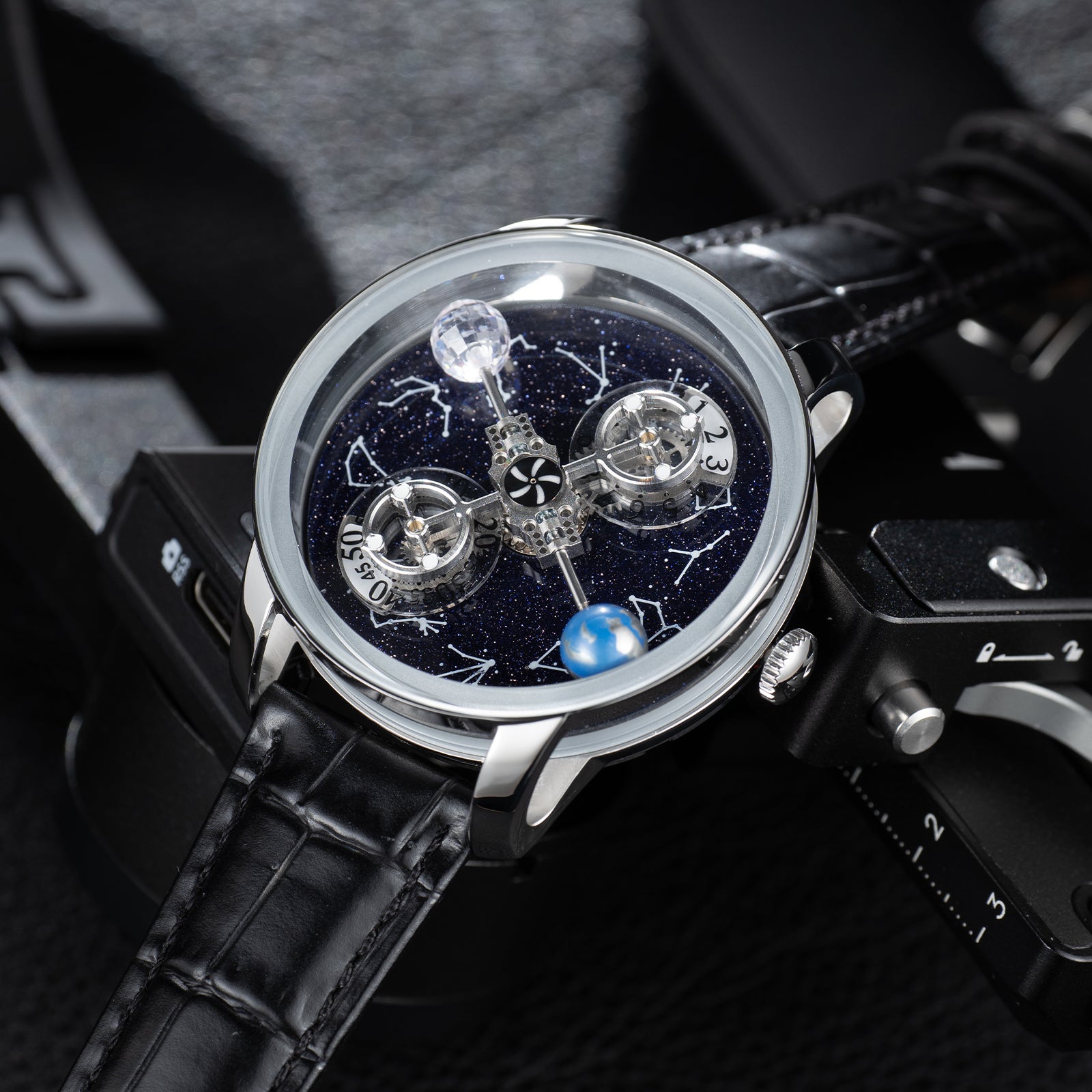 Dial Design: Starry Sky (Aventurine Dial) , This watch dail combines the timeless elegance of mechanical watchmaking with the awe-inspiring beauty of space exploration. The mesmerizing twelve Constellations dial features a detailed universe scene that transforms a simple time check into a moment of cosmic appreciation.