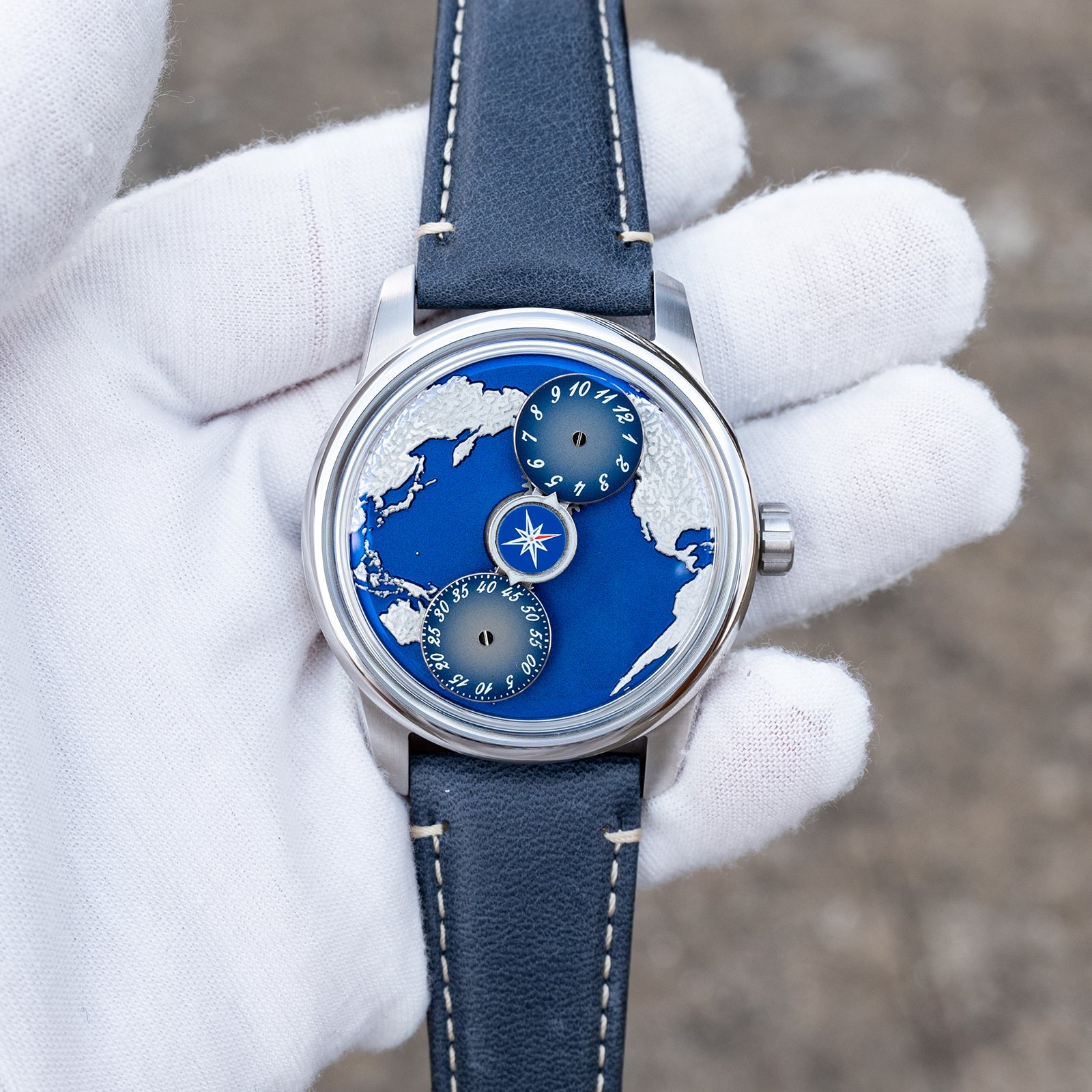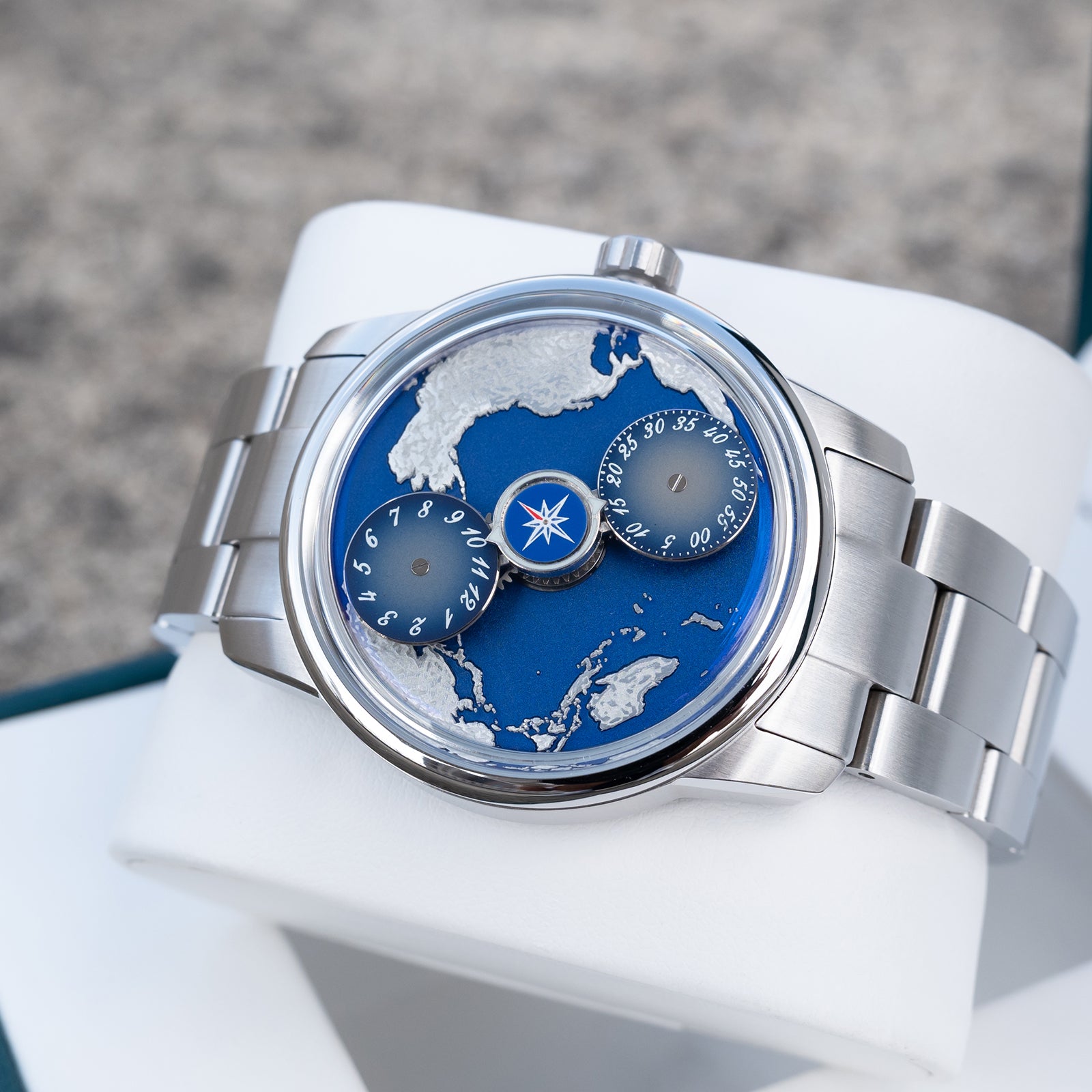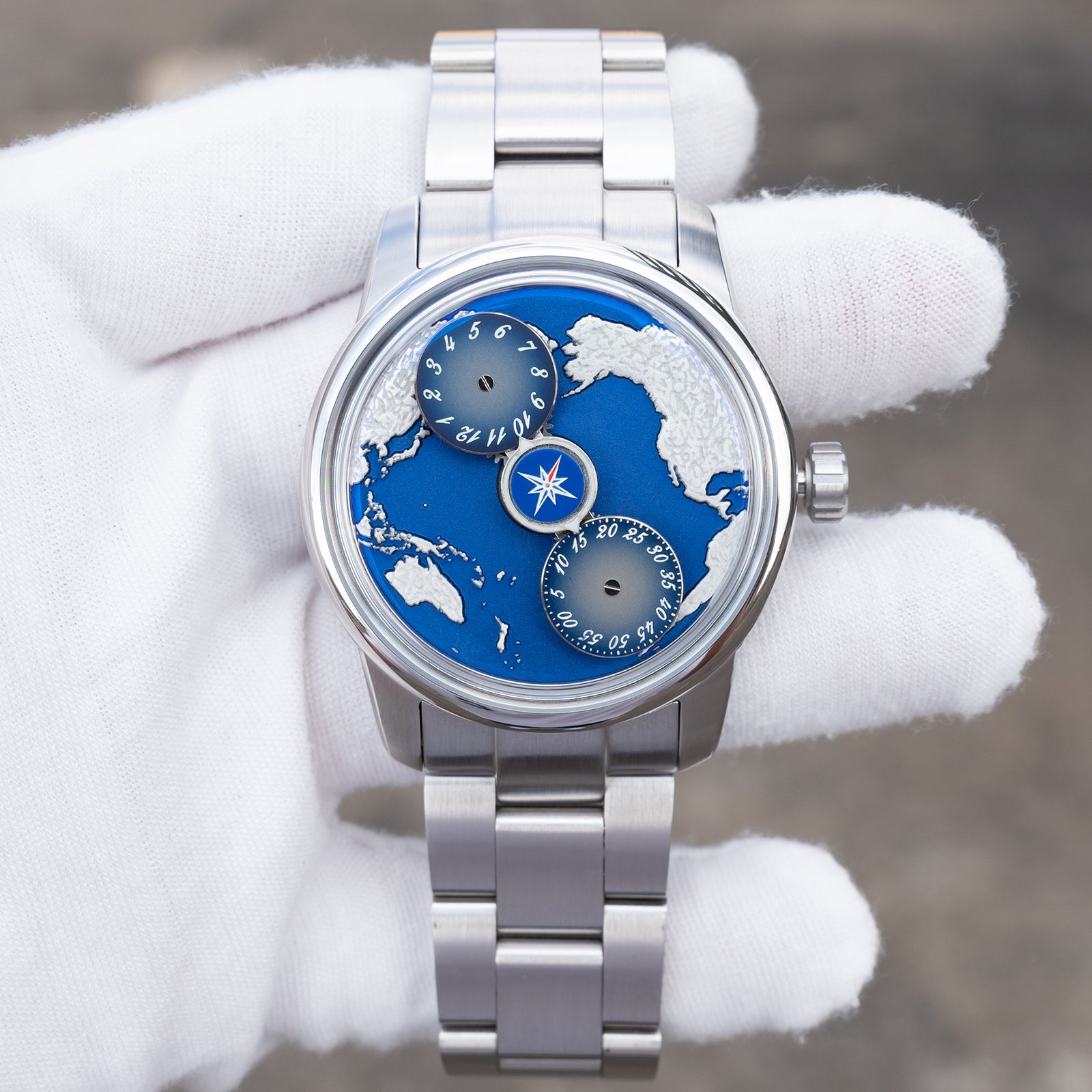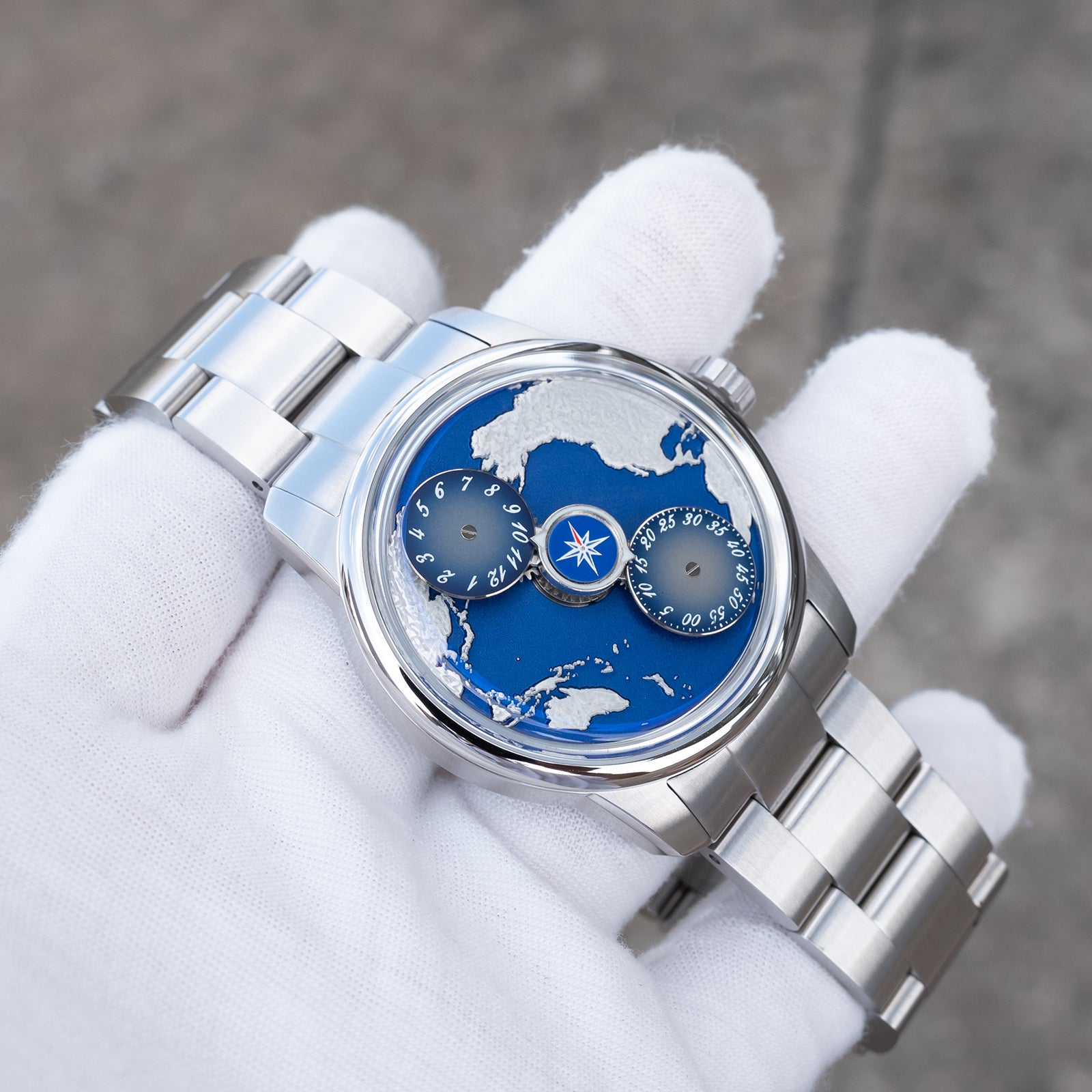 Dial:Deep Blue Earth Ocean Map Dial, Unique Flying Mechanical Sports Indices And Hands With Luminescent Coating