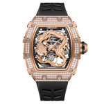One of the most striking features of this watch is its skeleton dial, showcasing the intricate and unique rose gold Chinese dragon design. This artistic detail sets this watch apart from the rest, making it a statement piece that is sure to turn heads wherever you go.