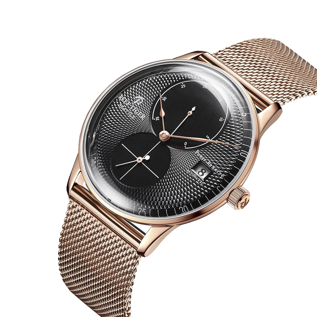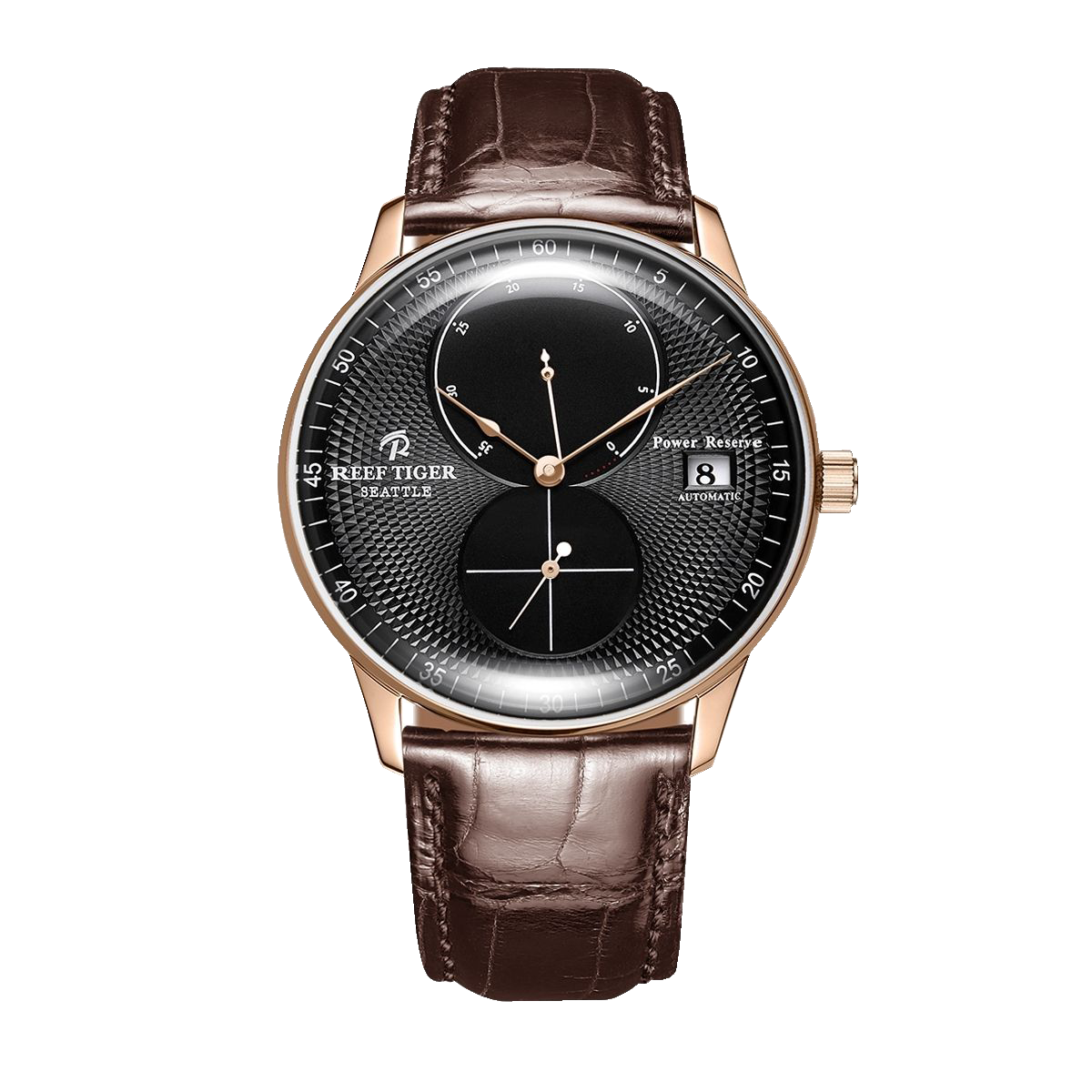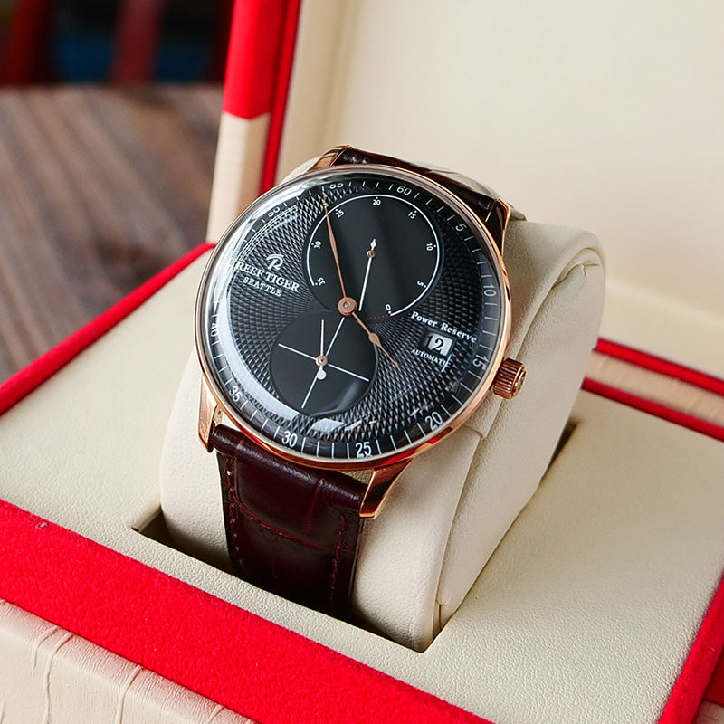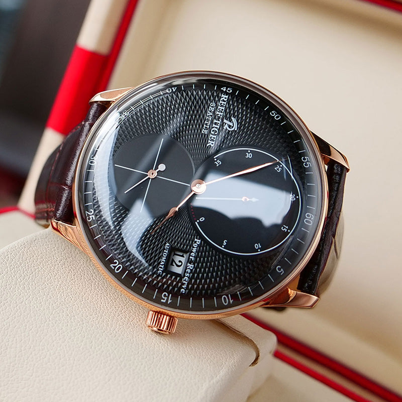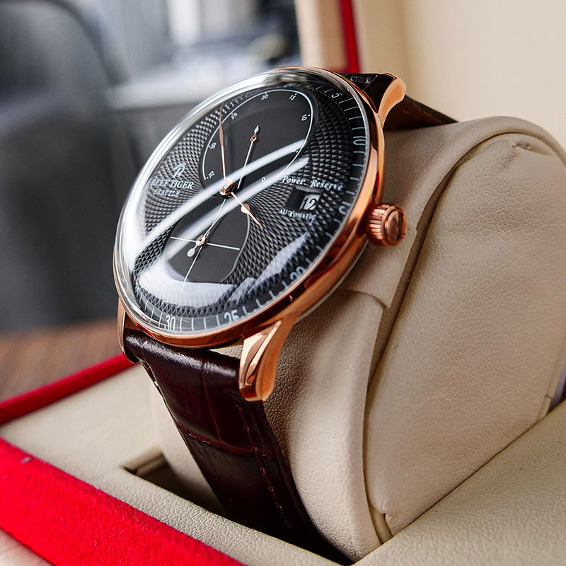 The Luxury Rose Gold Men's Dress Watch from Reef Tiger Seattle Navy 1 Series is a symbol of sophistication and style, making it a coveted accessory for the modern gentleman who appreciates fine craftsmanship and timeless elegance.