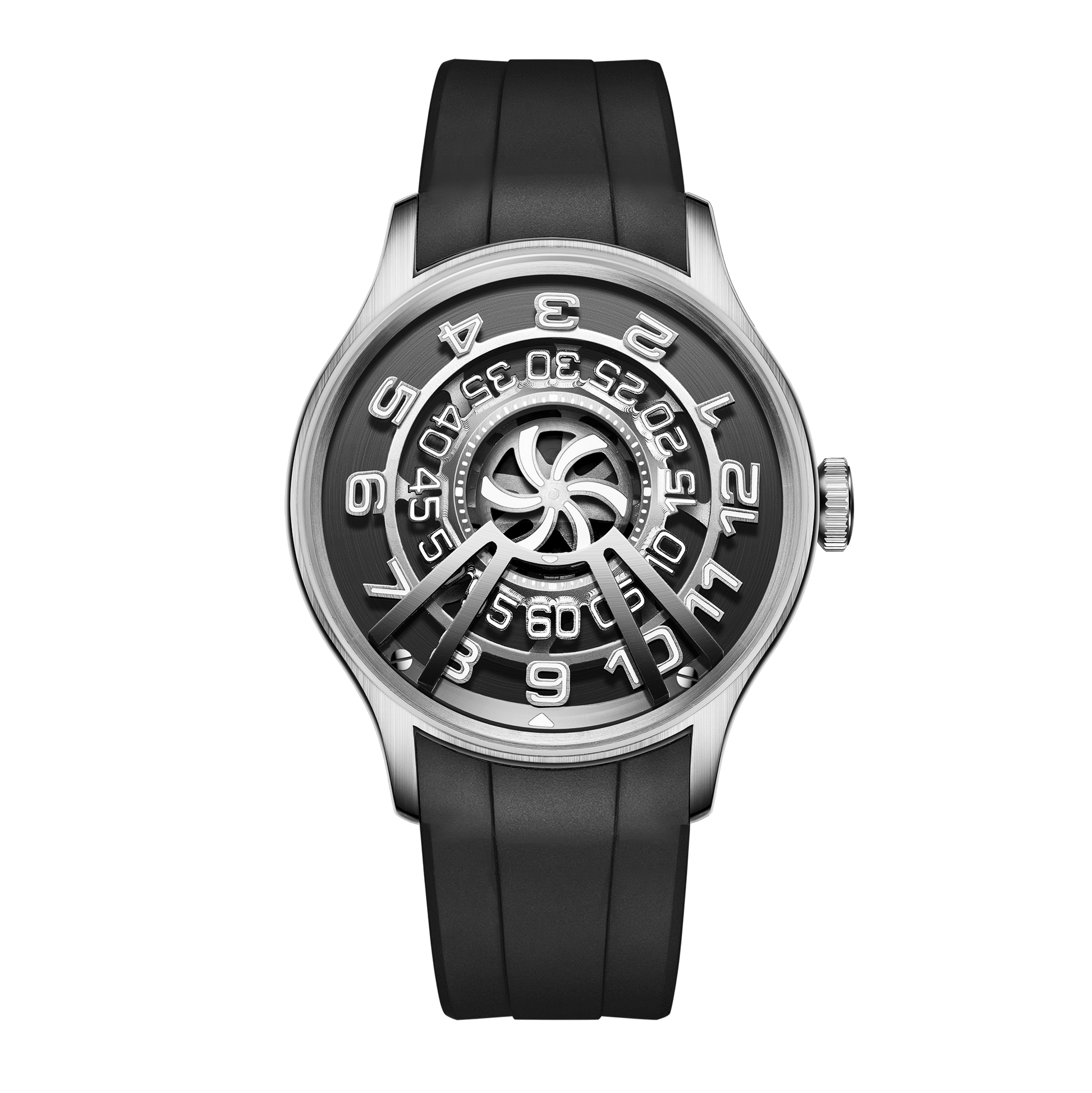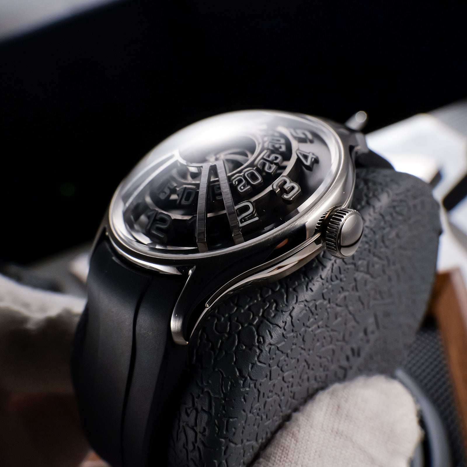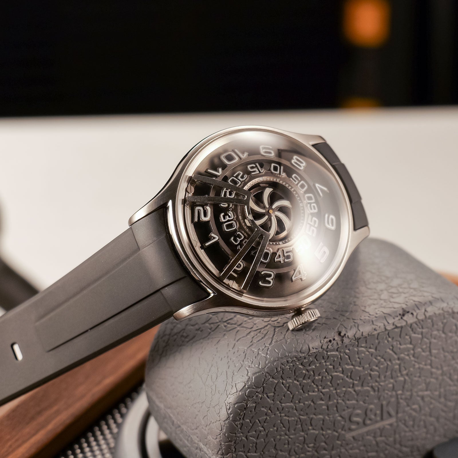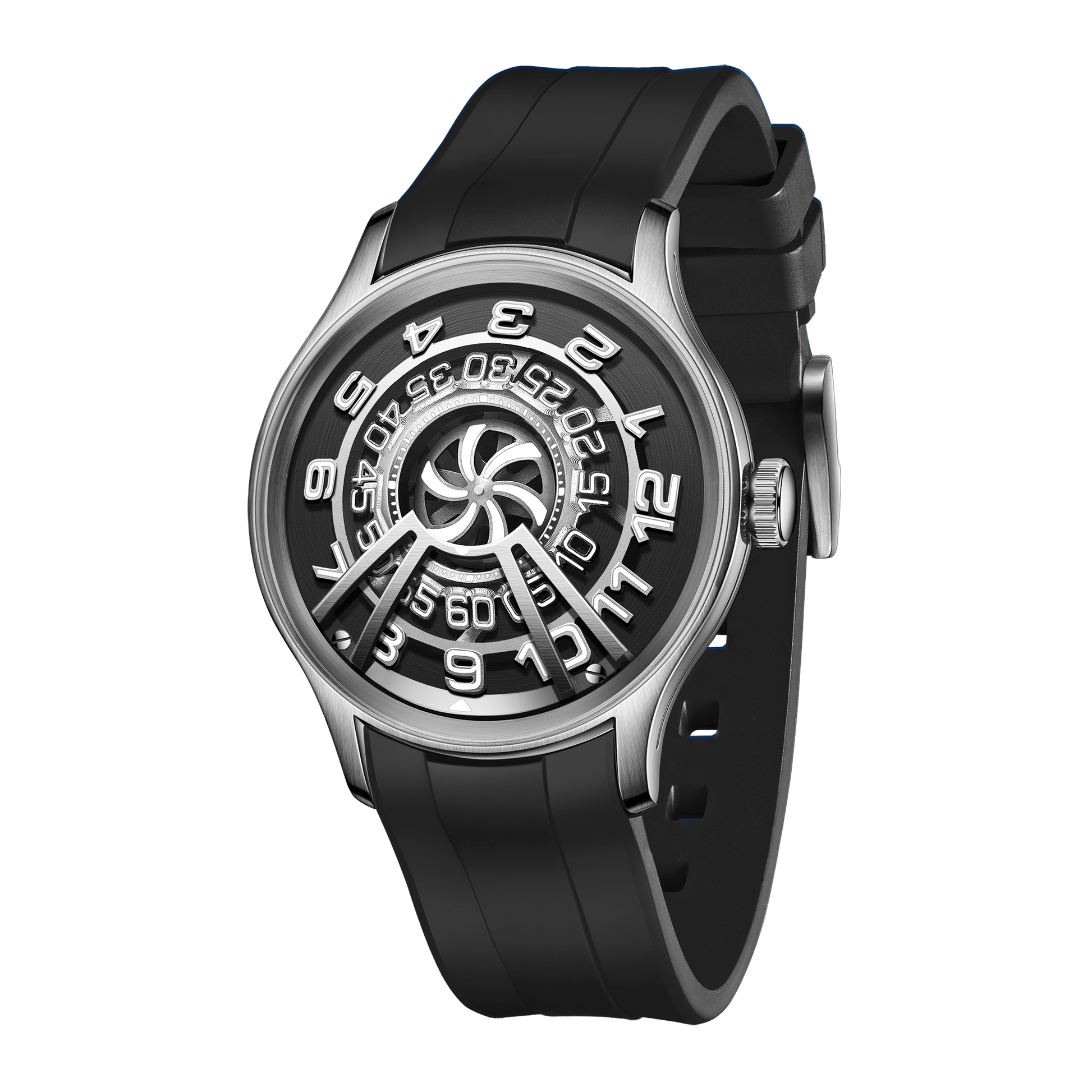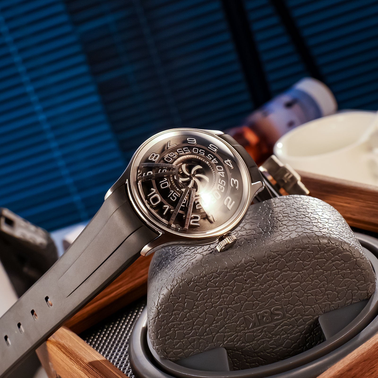 Powering this exceptional timepiece is a reliable Miyota automatic movement, which ensures accurate timekeeping and smooth operation. The watch is equipped with a tang buckle and a black rubber strap for a comfortable and secure fit. The glass face of the watch is made of scratch-resistant sapphire crystal, adding a layer of durability to the already impressive timepiece.