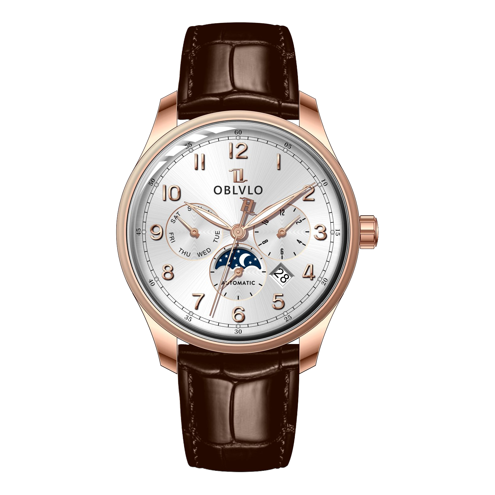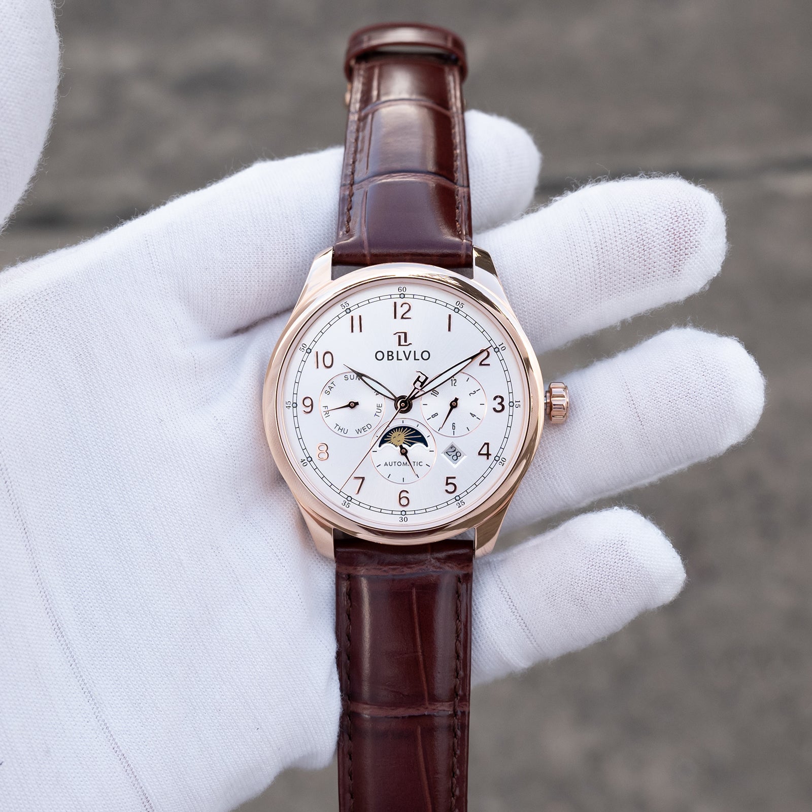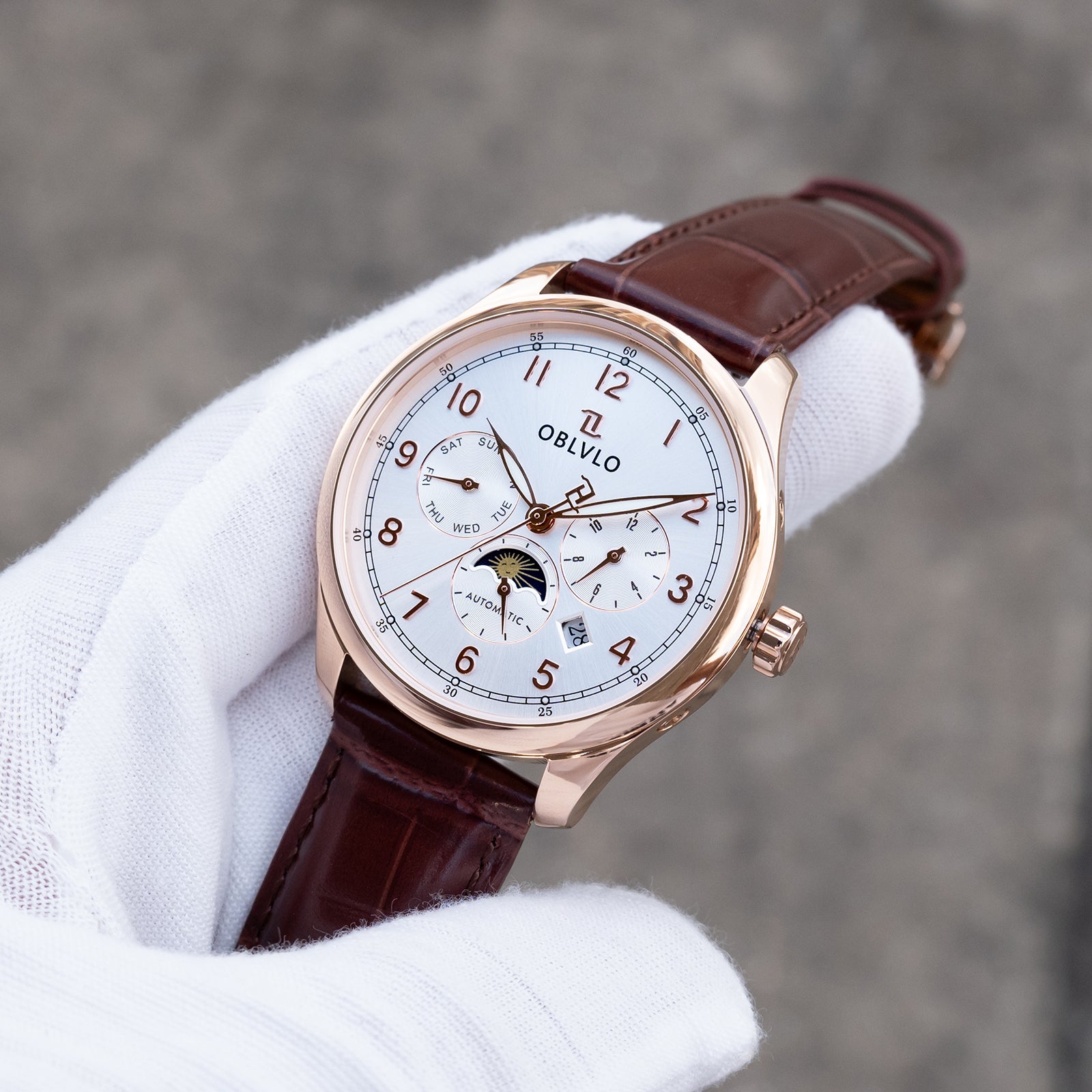 OBLVLO WM Men's 41mm Multi-function 6 Hands Automatic Mechanical Watch - Classic Luxury Rose Gold Dress Watch
