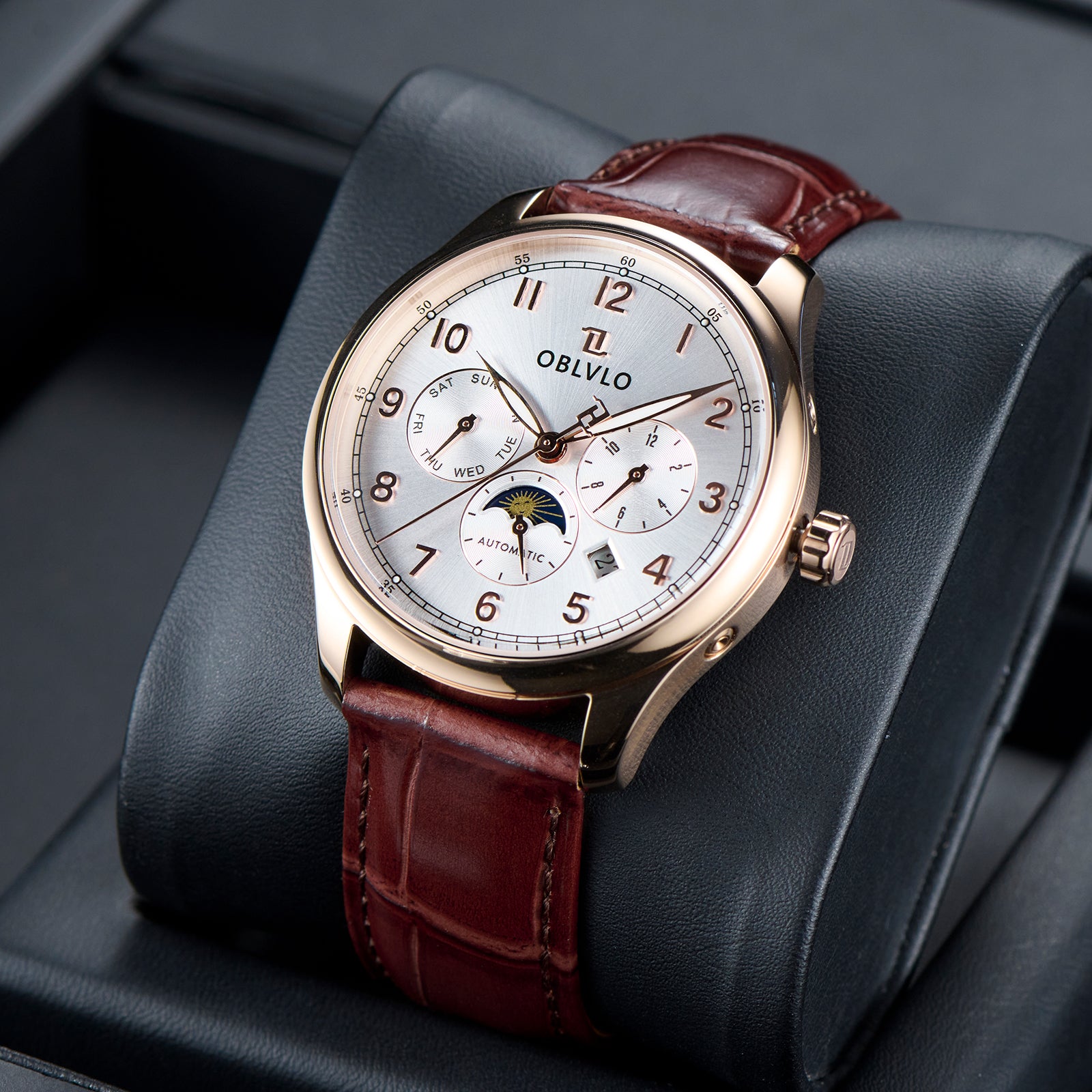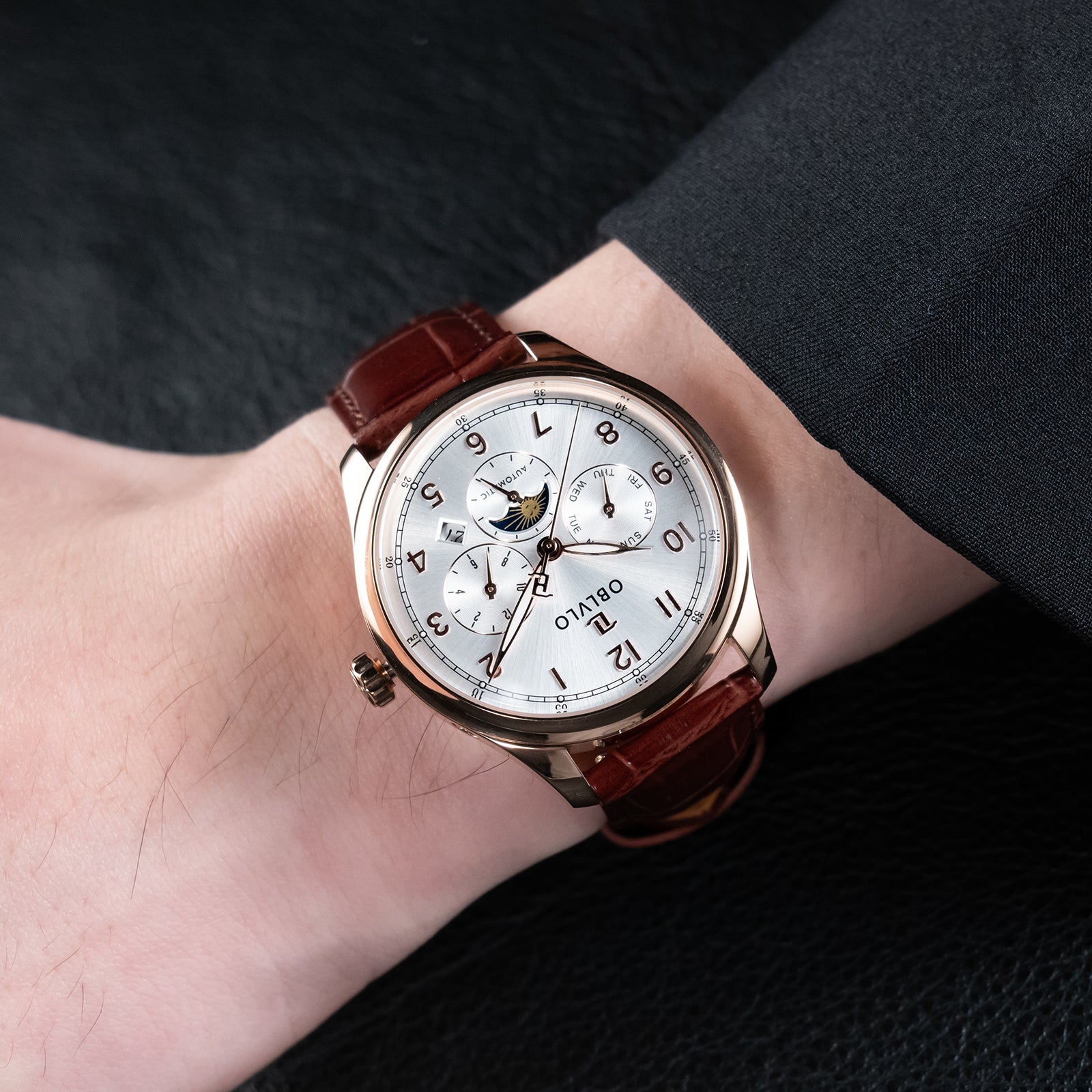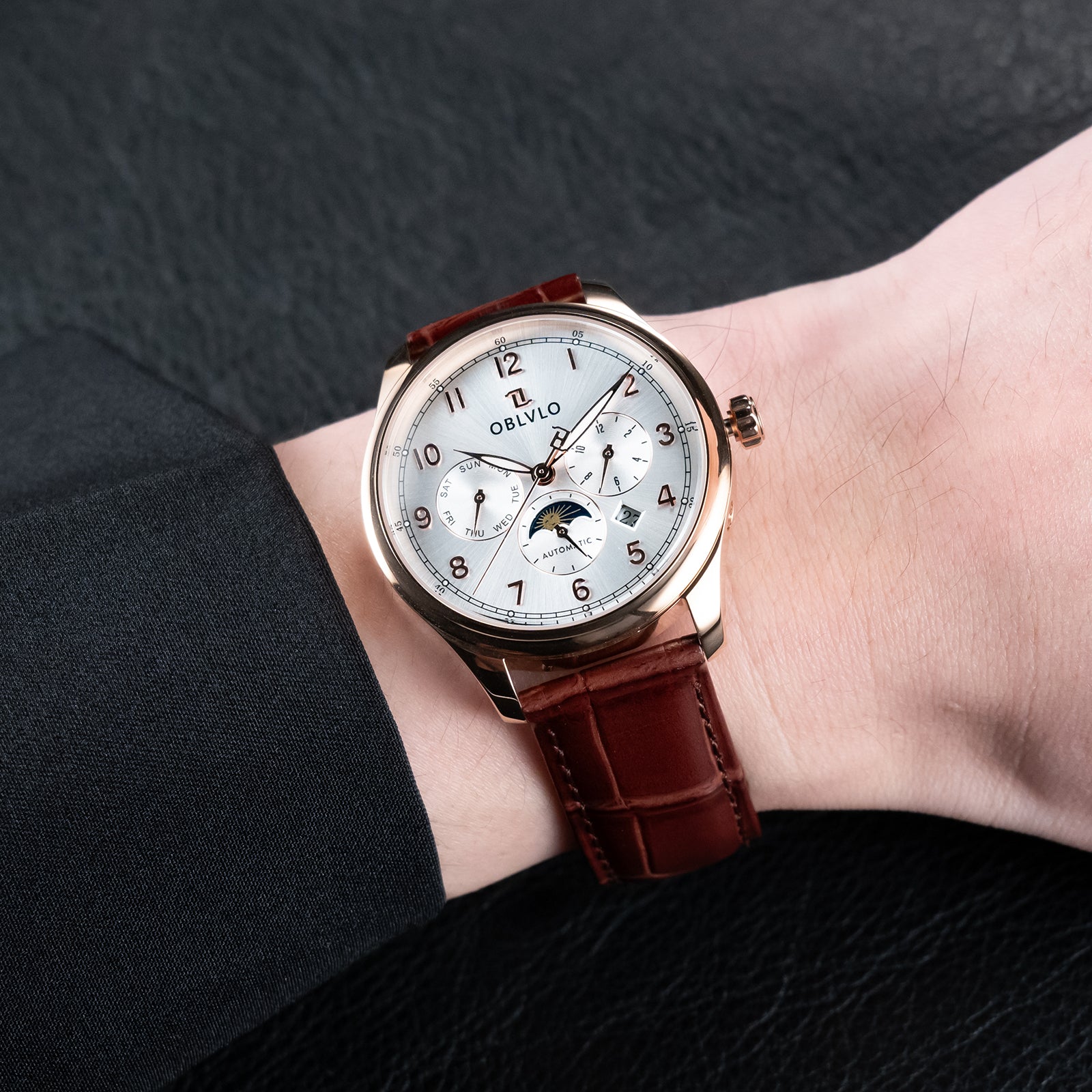 OBLVLO WM Men's 41mm Multi-function 6 Hands Automatic Mechanical Watch - Classic Luxury Rose Gold Dress Watch