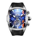 The case of this watch is tonneau-shaped and made from durable 316 stainless steel, ensuring both strength and style. The striking blue racing skeleton dial and hands, complete with luminescent coating, not only enhance the aesthetics of the watch but also improve visibility in low-light conditions.