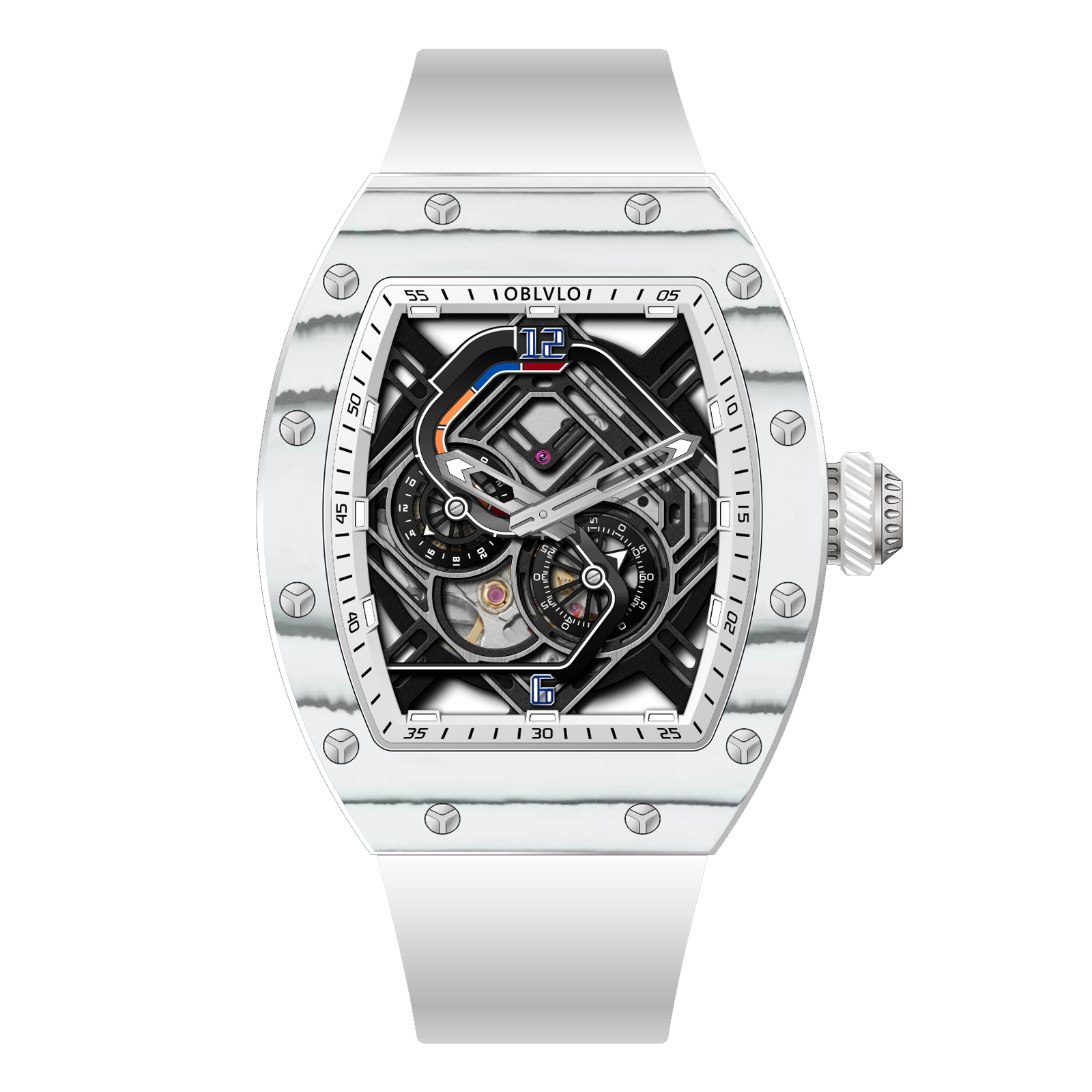 Dial Design: XM-RACING reveals the art of the Japanese 82S7 movement through its skeleton track dial design. A scale is marked around the outer part of the dial or inner bezel – enhancing the classic racing-style aesthetic!As well as an aesthetic that pays homage to the fast and furious world of motorsport.