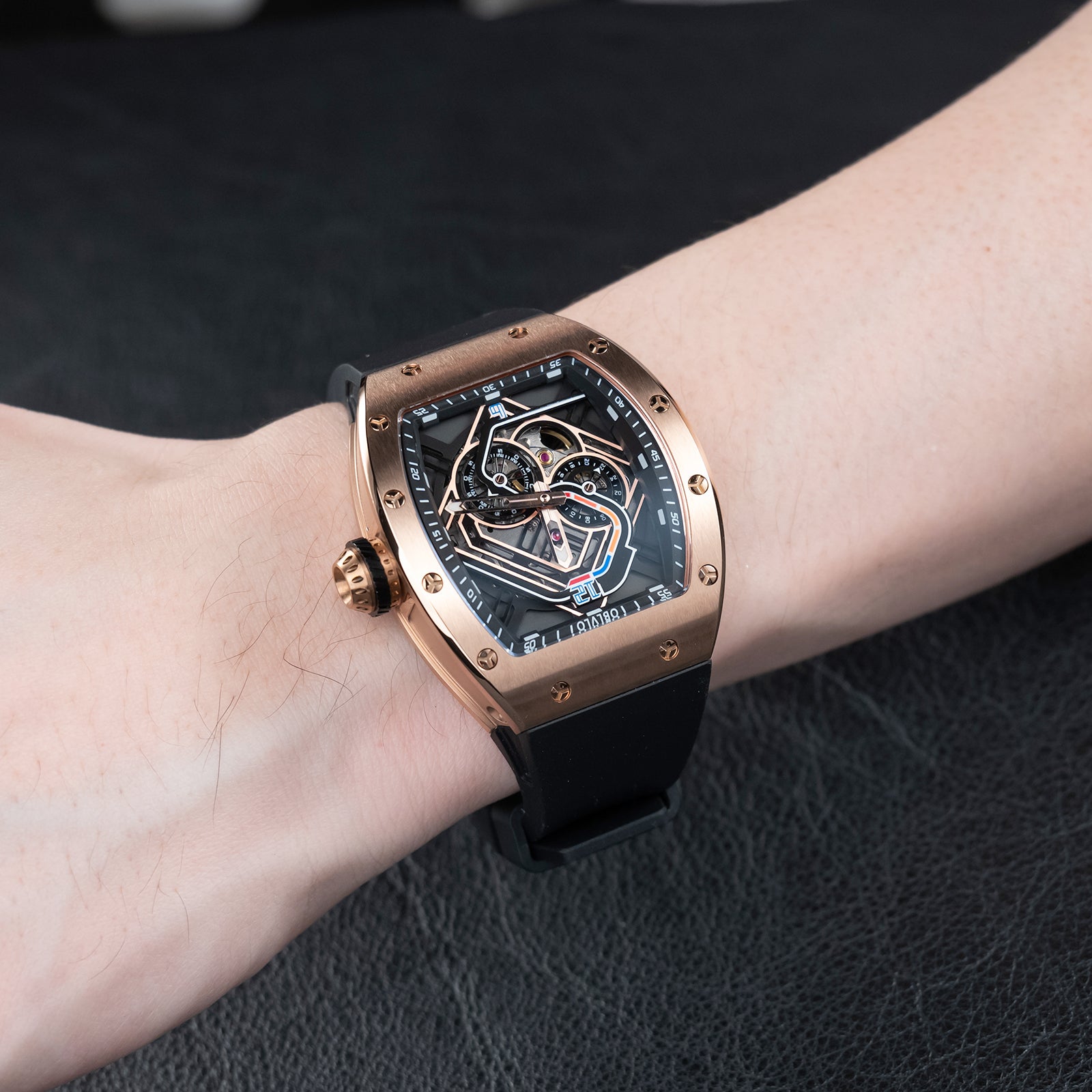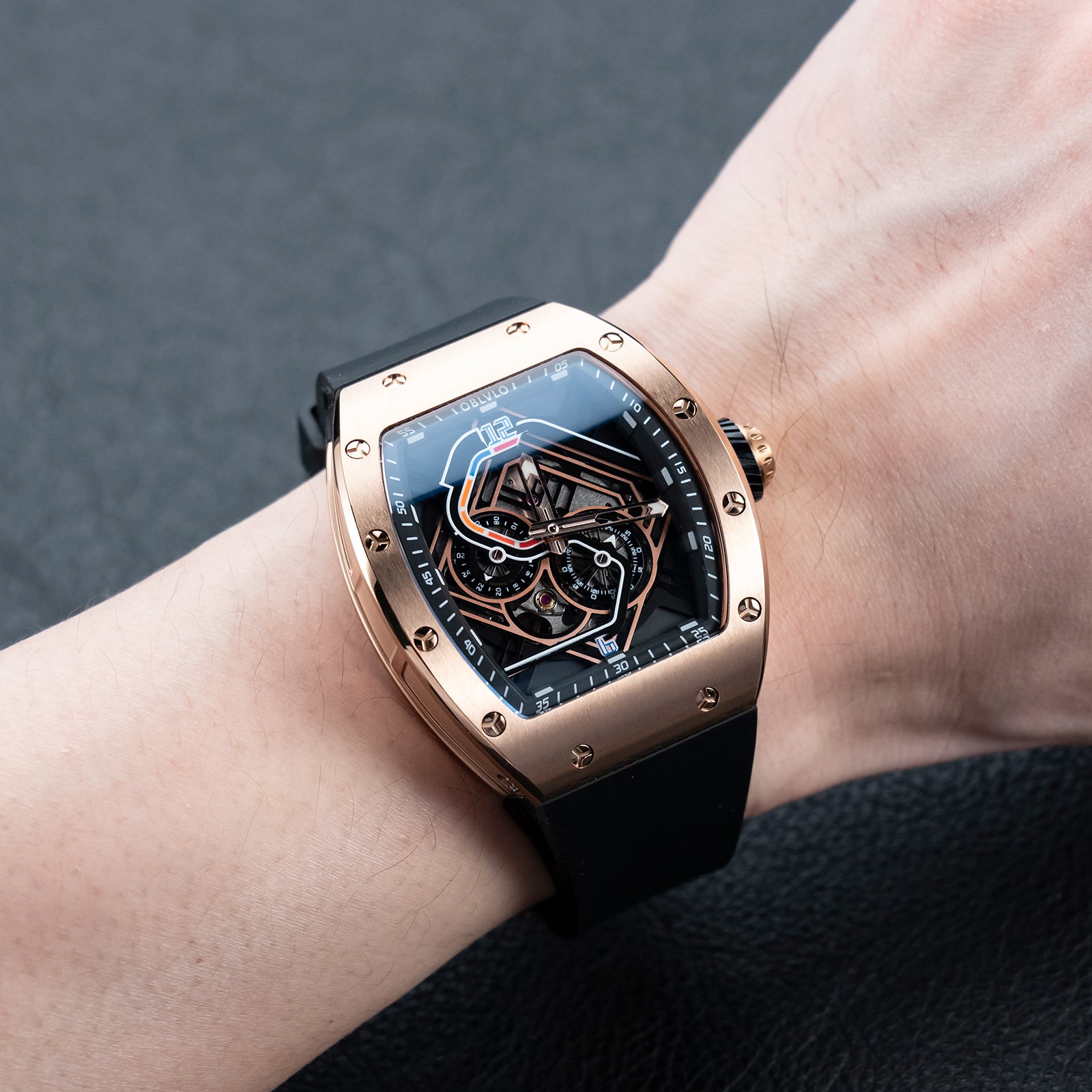 Dial Design: XM-RACING reveals the art of the Japanese 82S7 movement through its skeleton track dial design. A scale is marked around the outer part of the dial or inner bezel – enhancing the classic racing-style aesthetic!As well as an aesthetic that pays homage to the fast and furious world of motorsport.