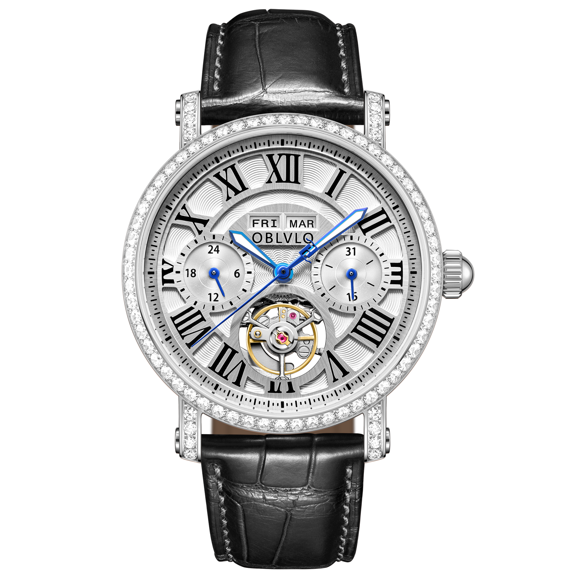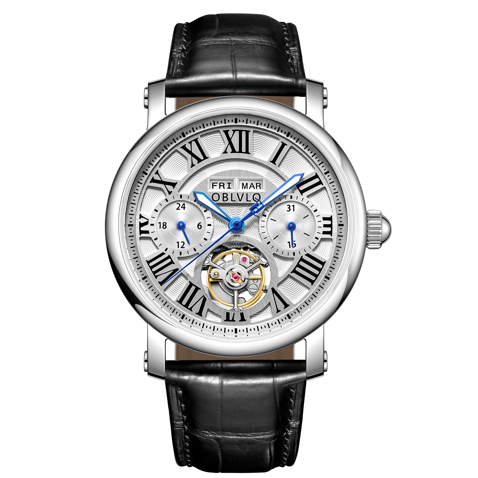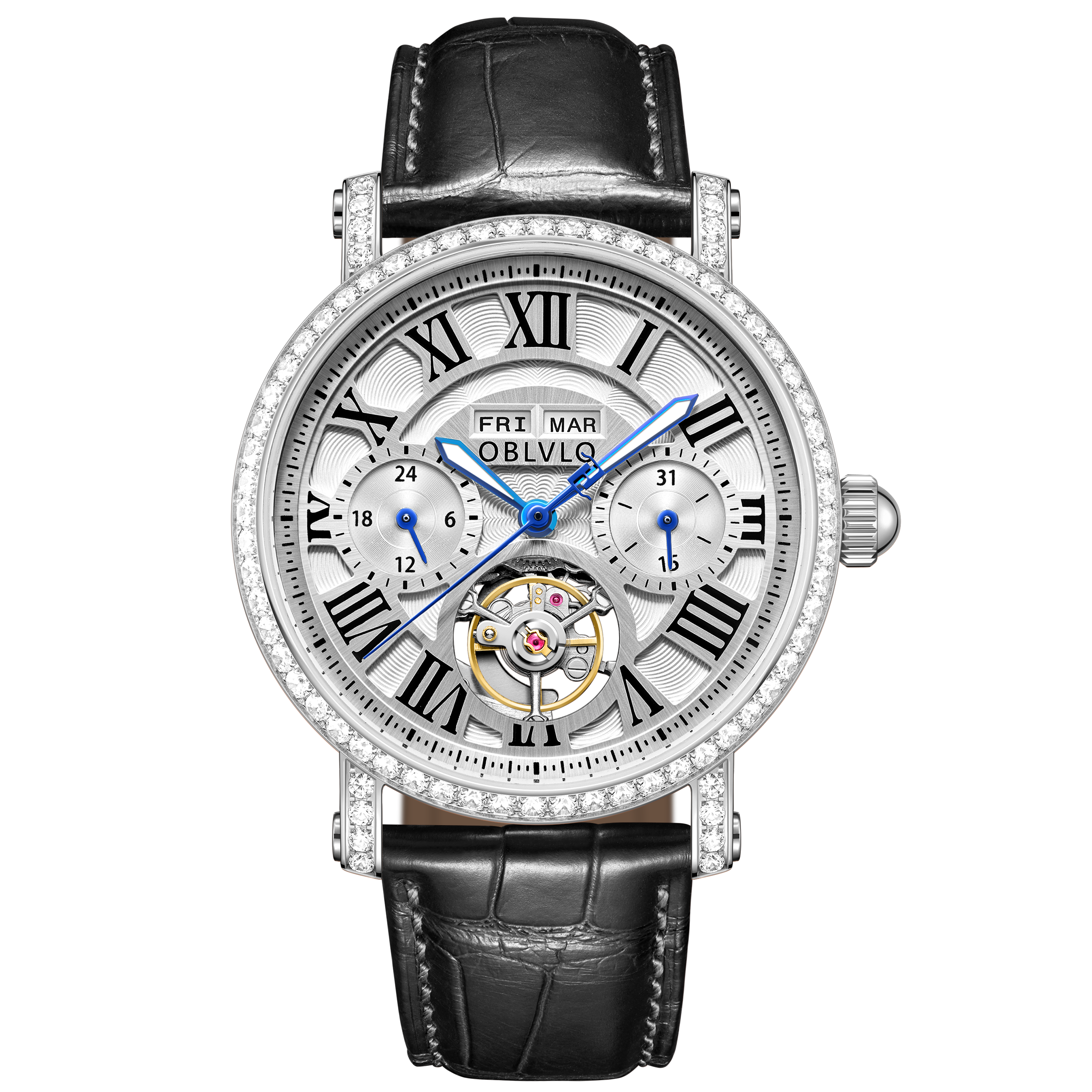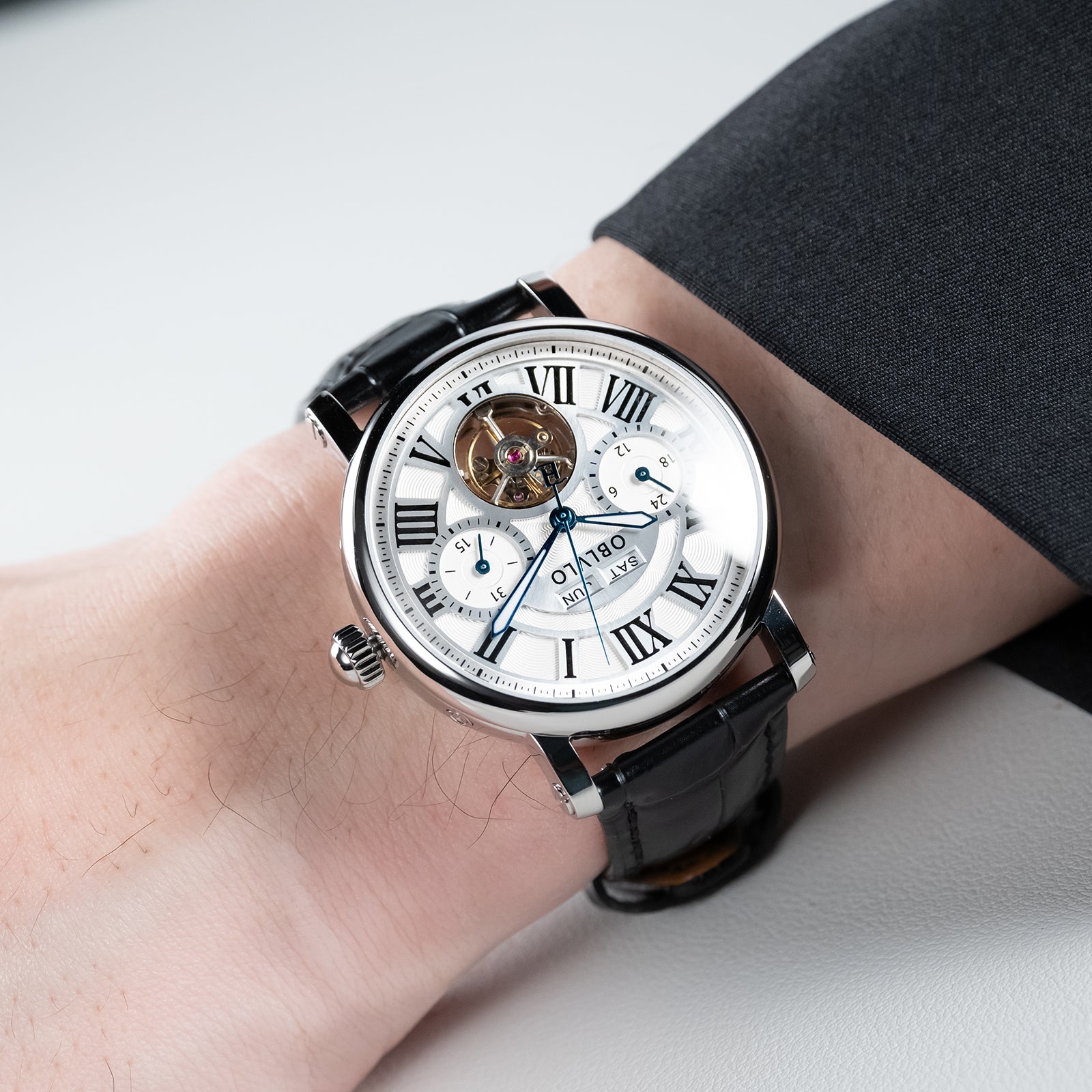 Dial Design: White Dial, Tourbillon style & Multi-Function designed functions of year/month/week/day to meet all customer needs, Adding texture to the multi-layered dial with roman markings Zirconia Bezel, designed to enhance style, Show off tast!