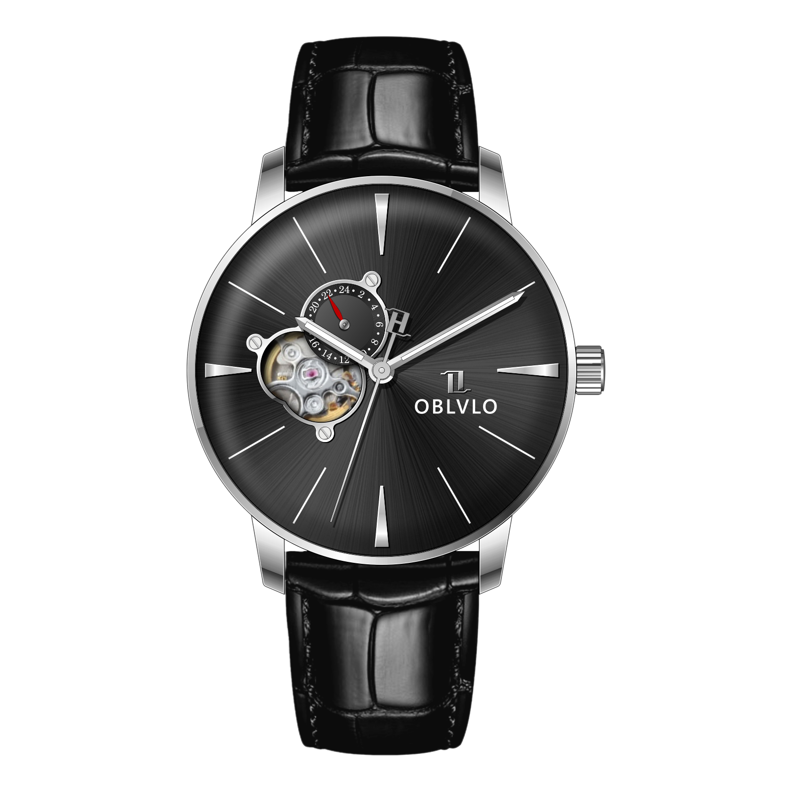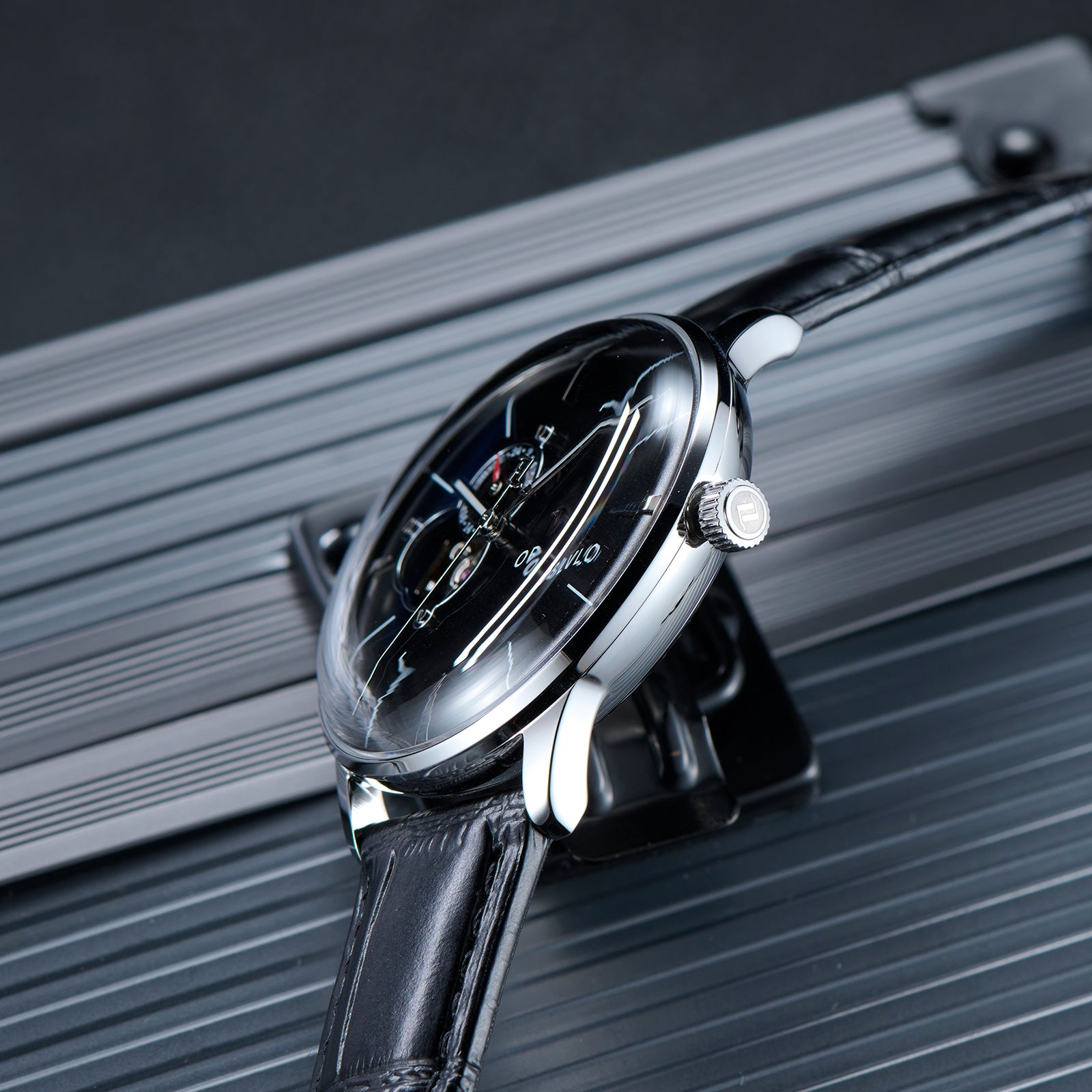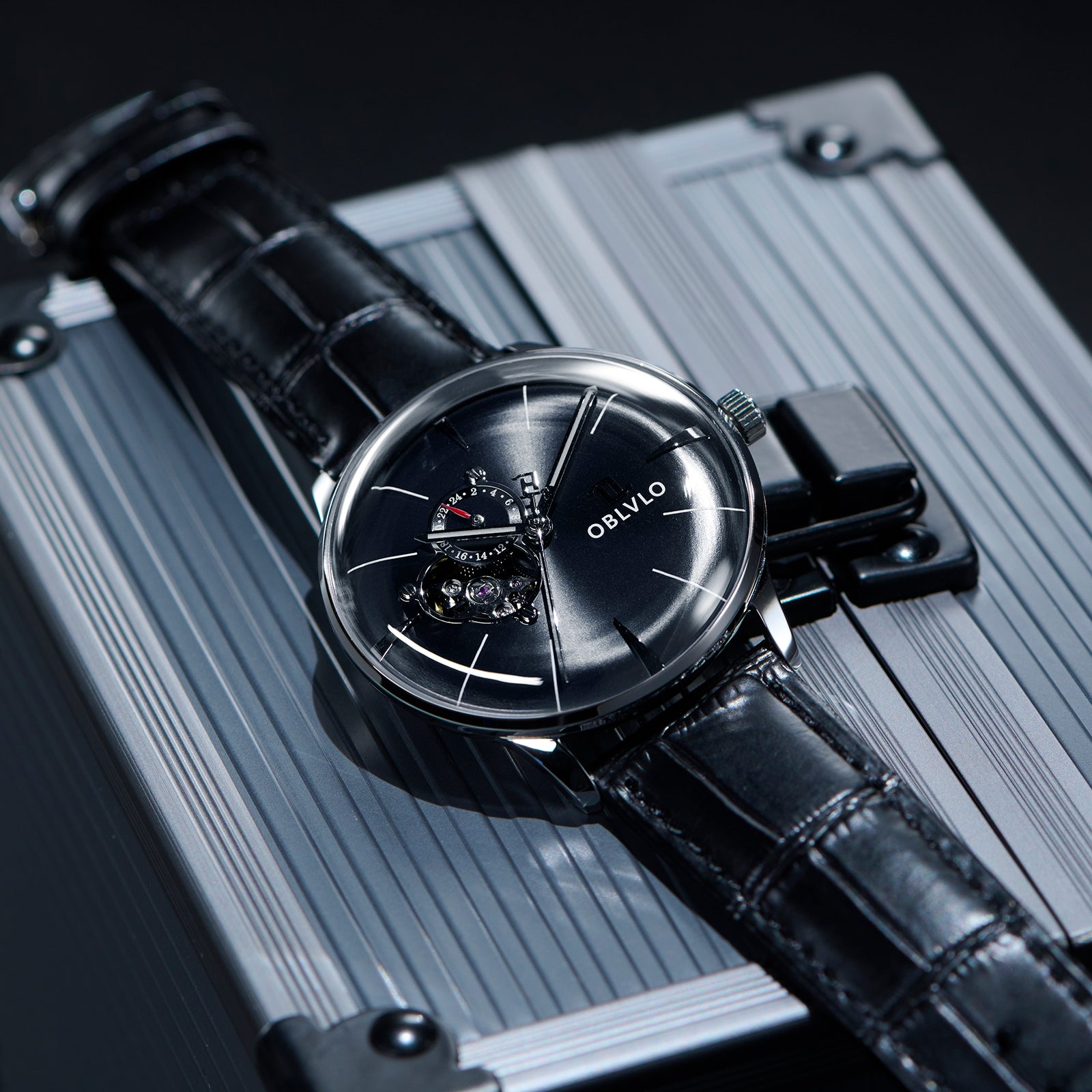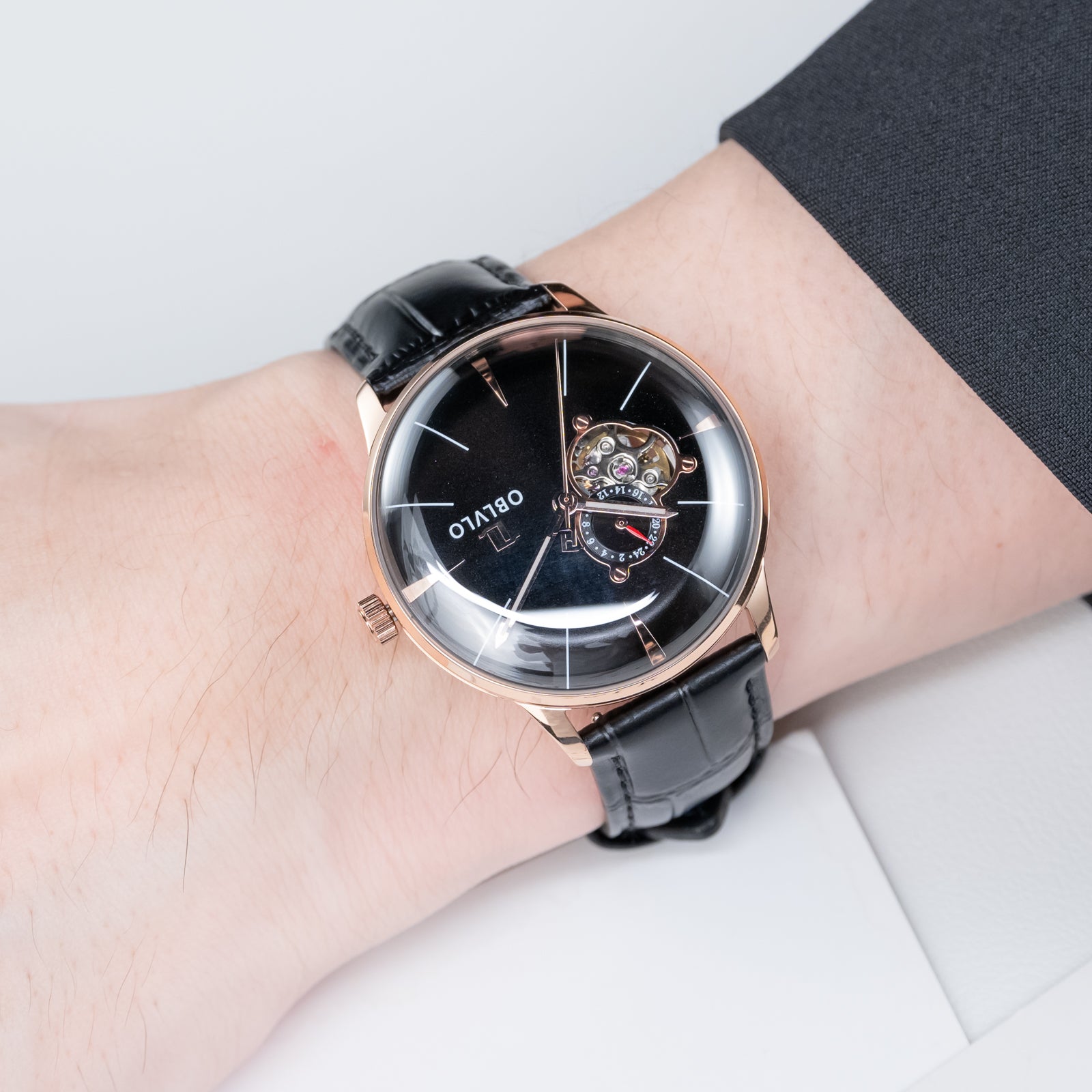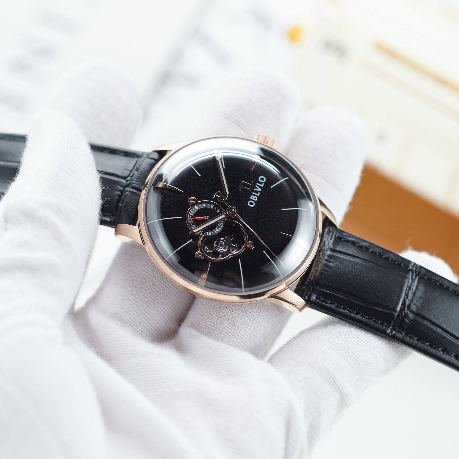 Dial Design: Black Dial & Watch subdial is designed 24-hour with luminous rose gold hands display & partial skeleton dial.