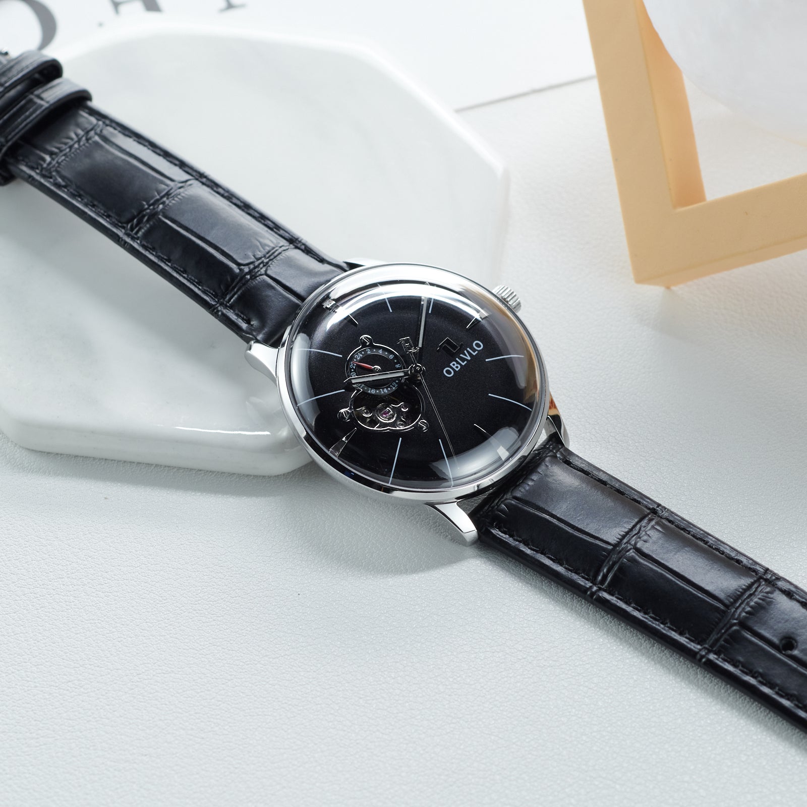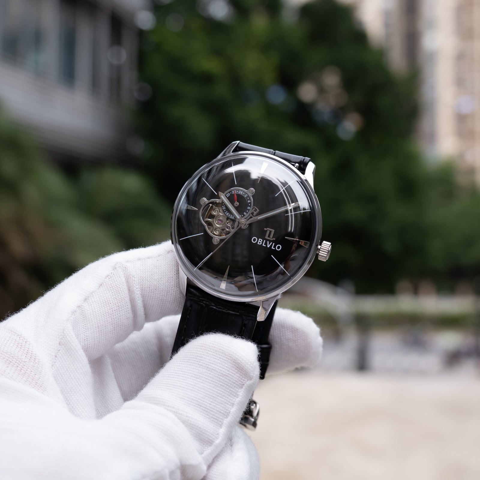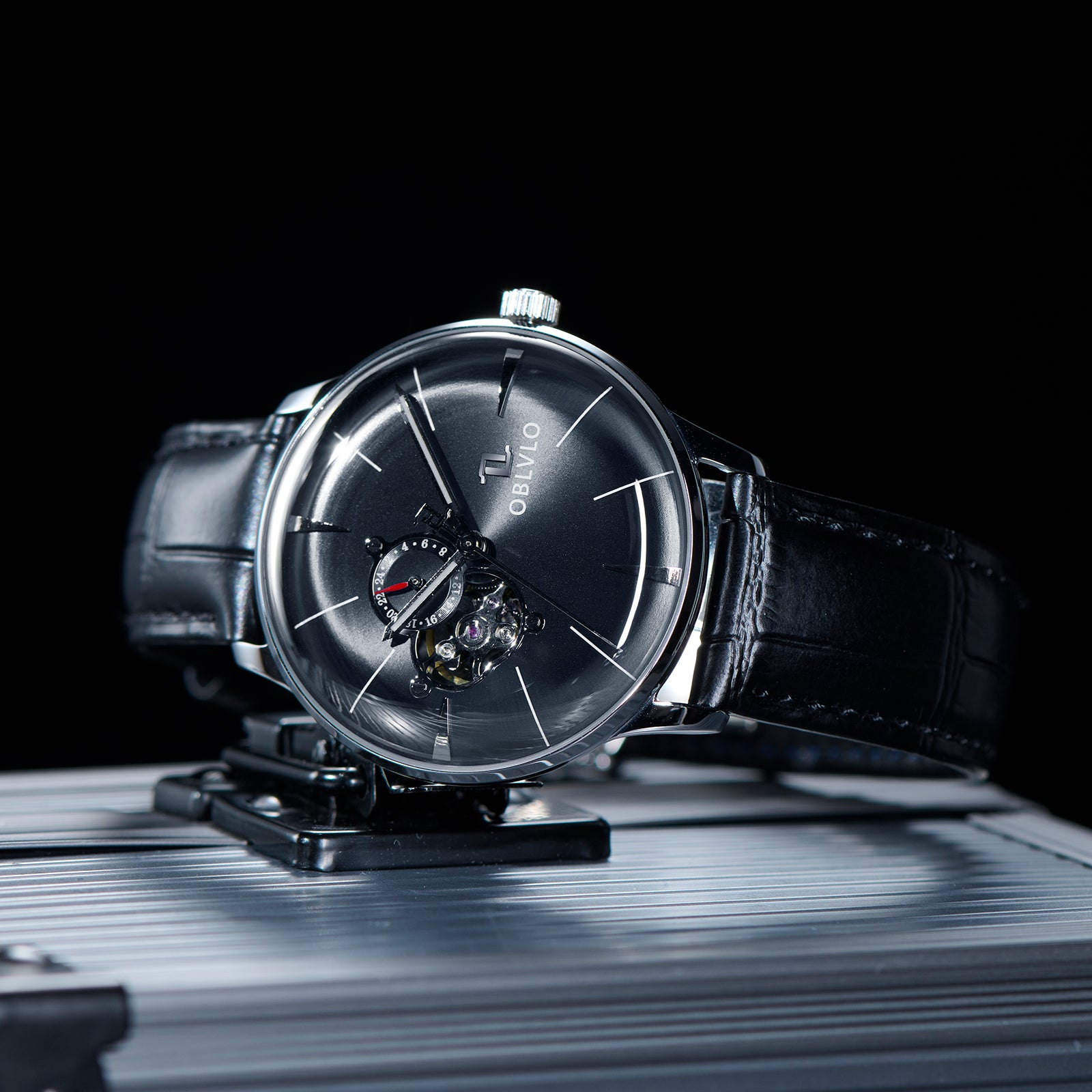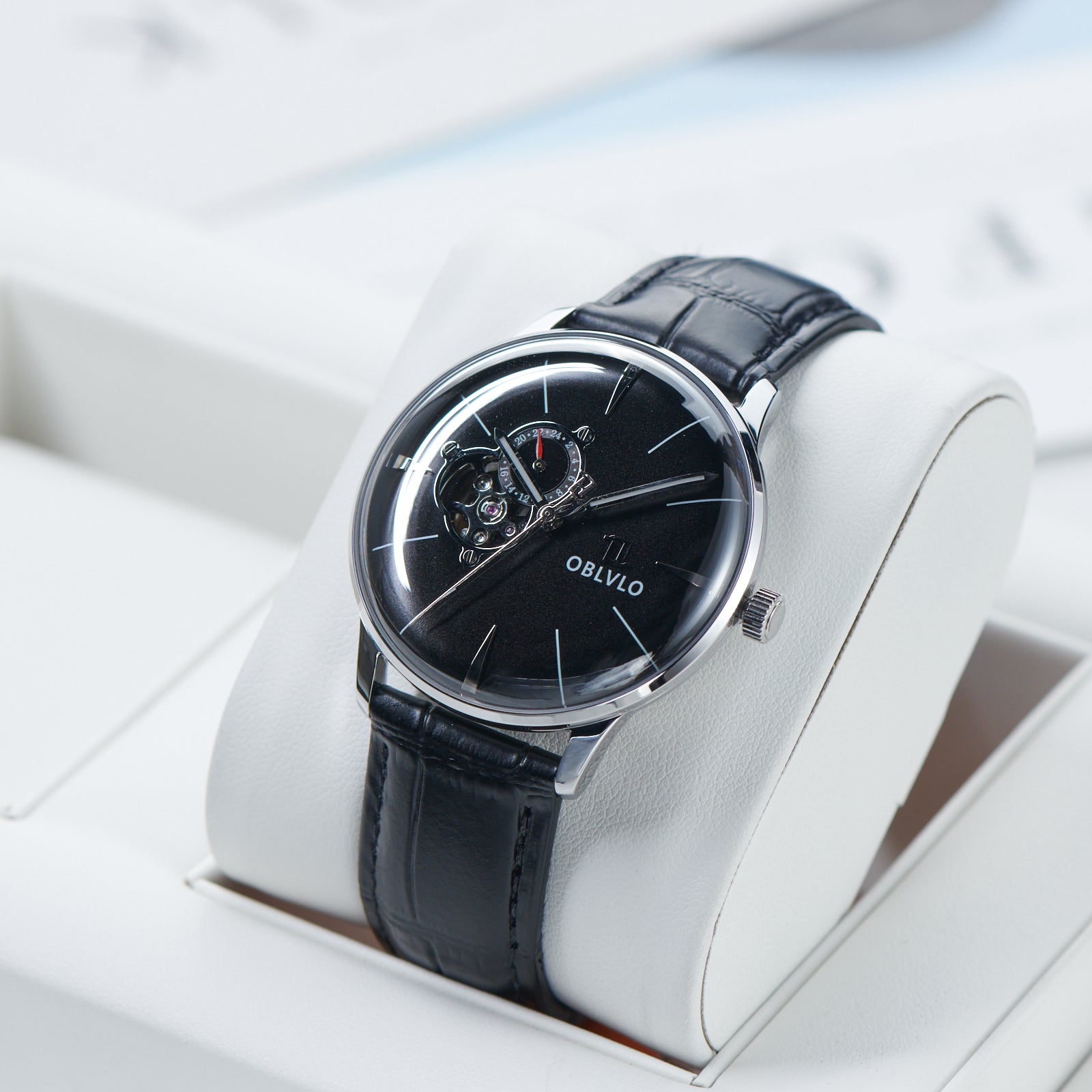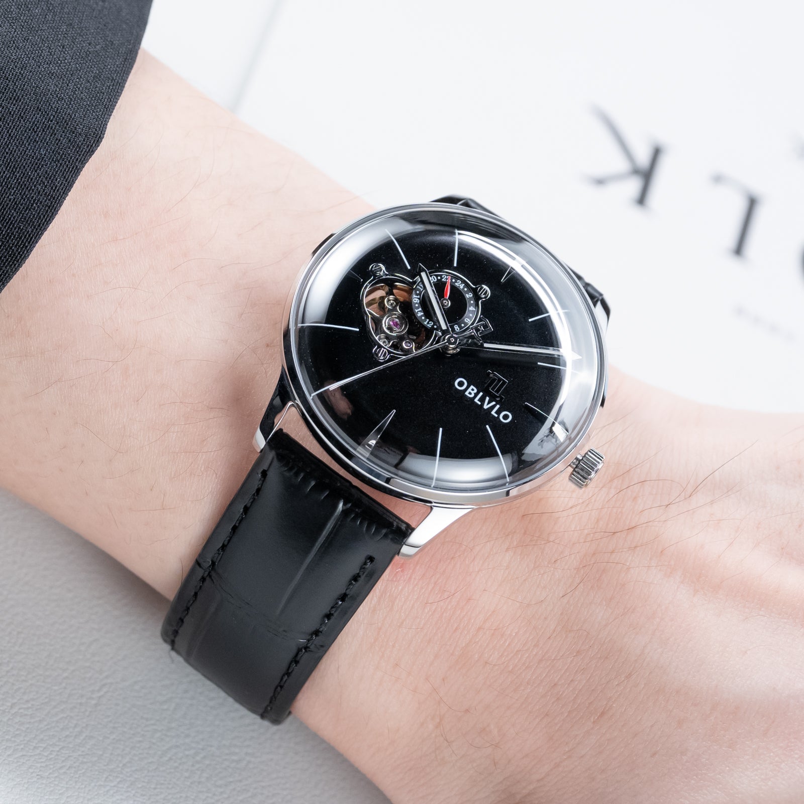 Dial Design: Black Dial & Watch subdial is designed 24-hour with luminous rose gold hands display & partial skeleton dial.