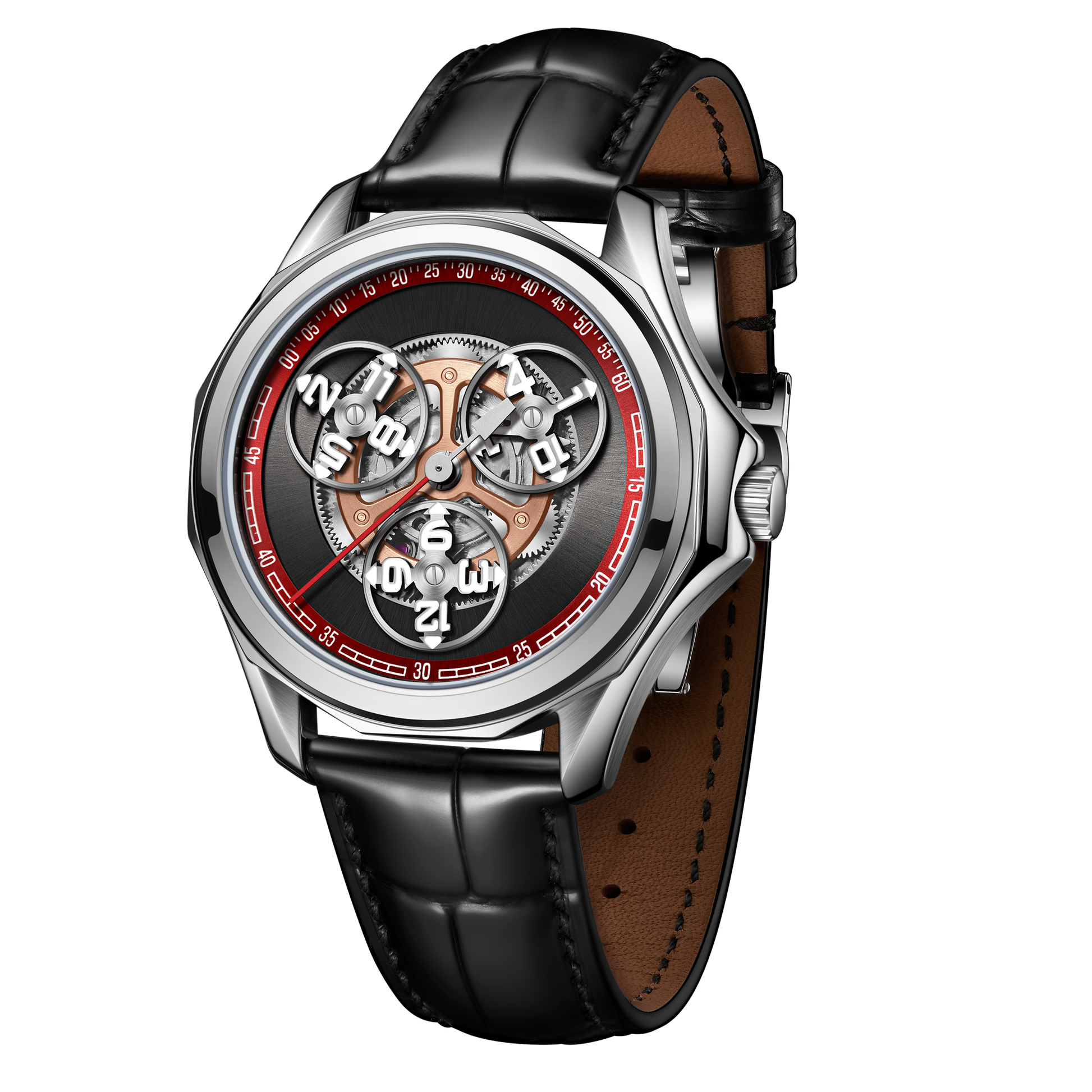 Dial:Red Gradient, automatic mechanical skeleton & silver indices and hands with luminescent coating