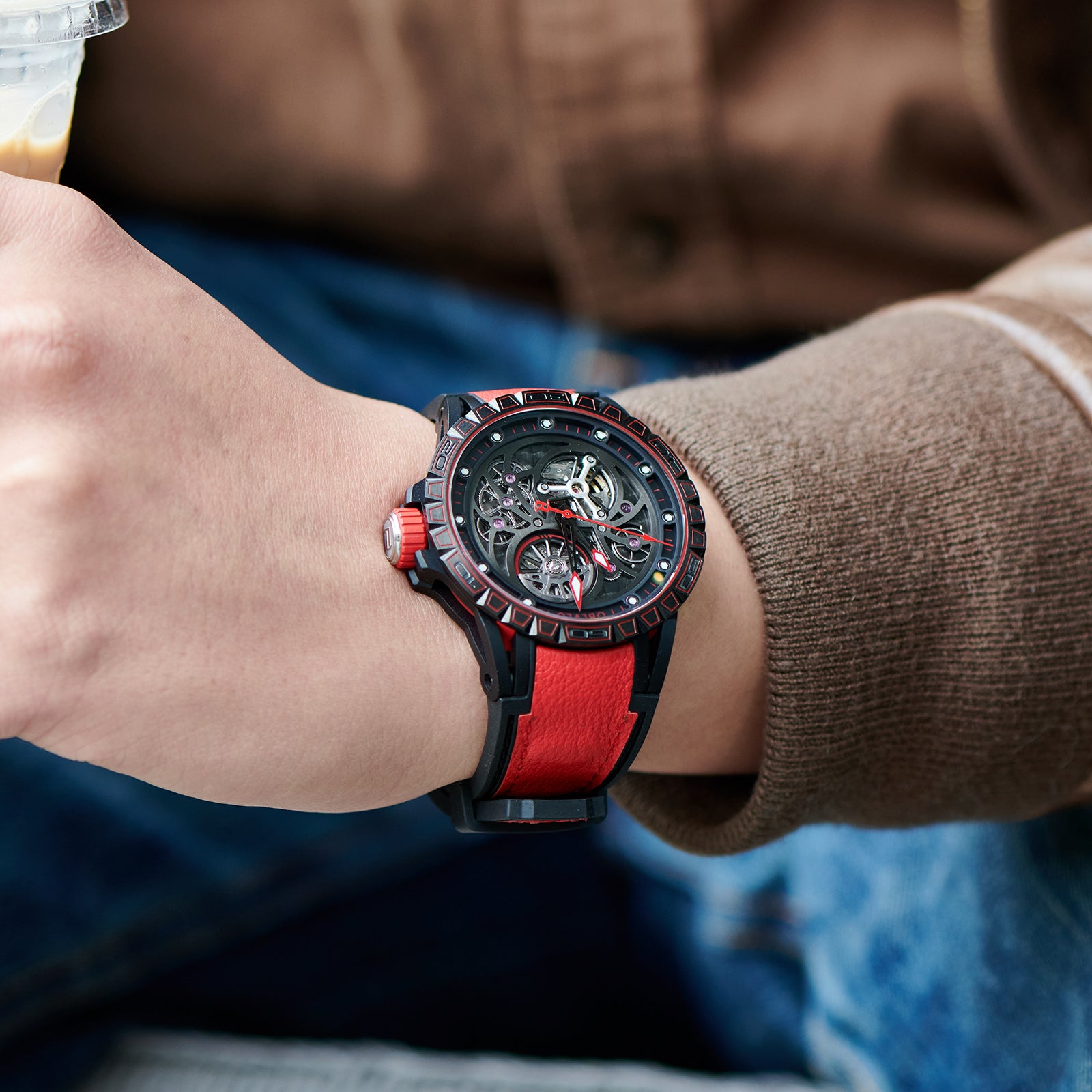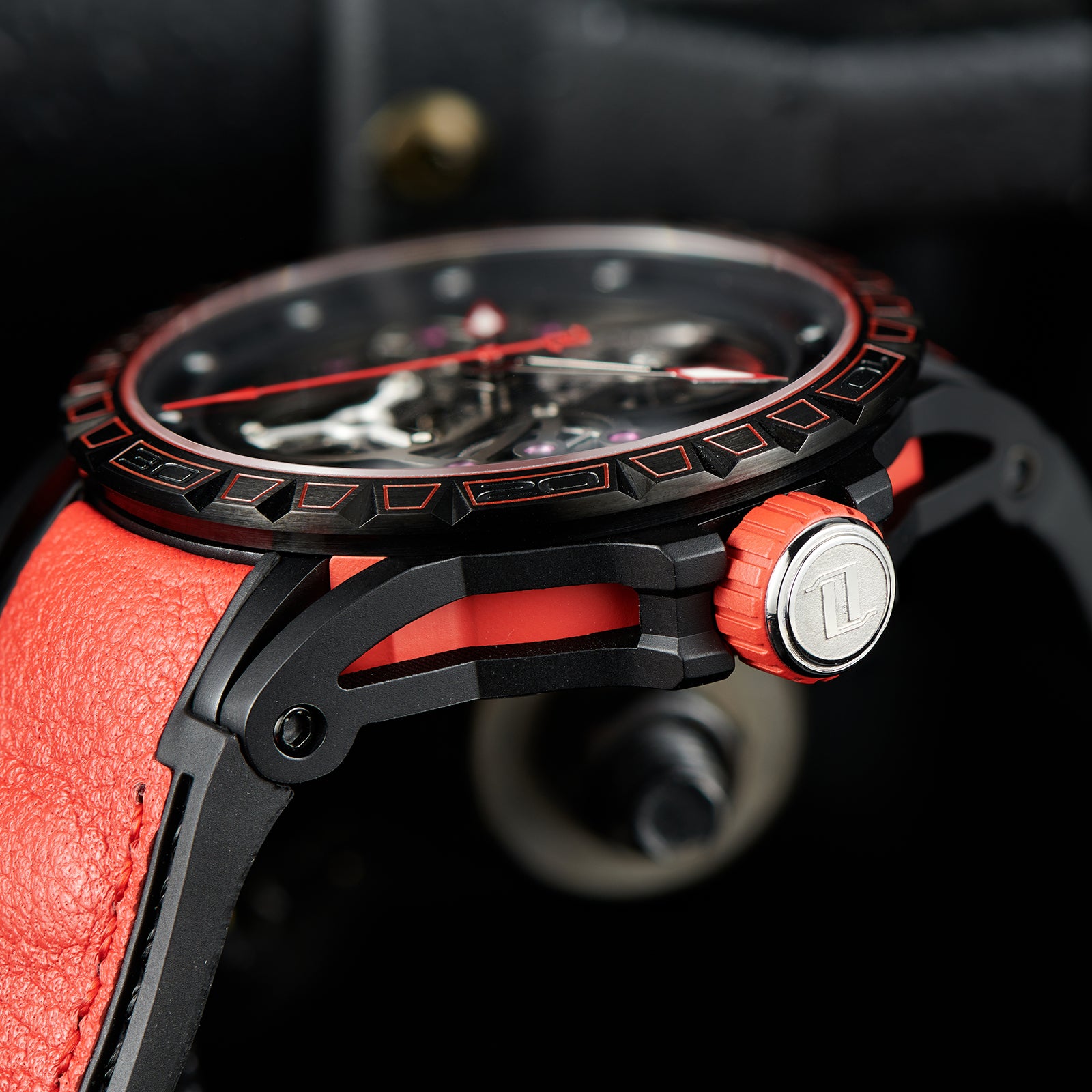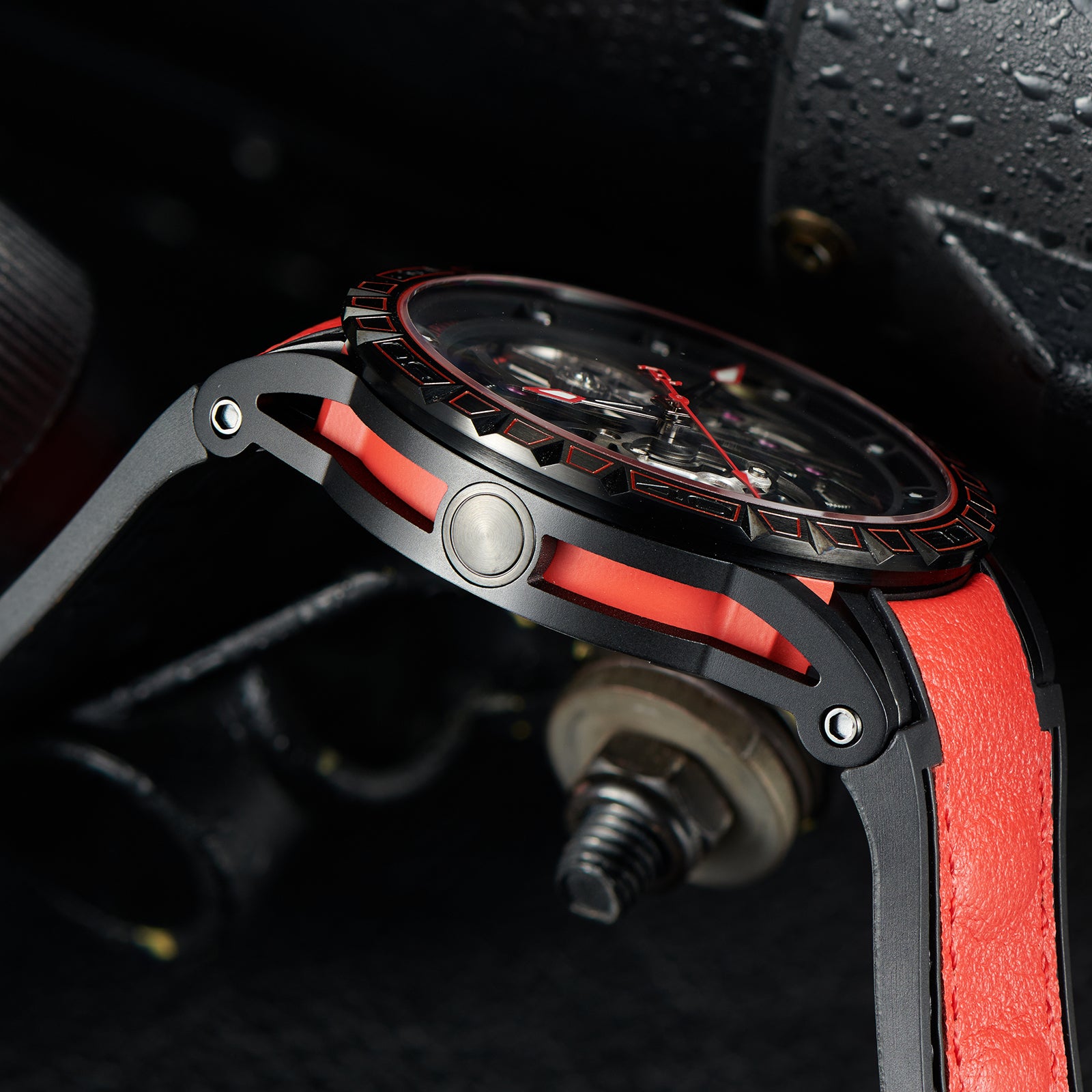 Dial:Black Mechanical Skeleton ,Red Indices