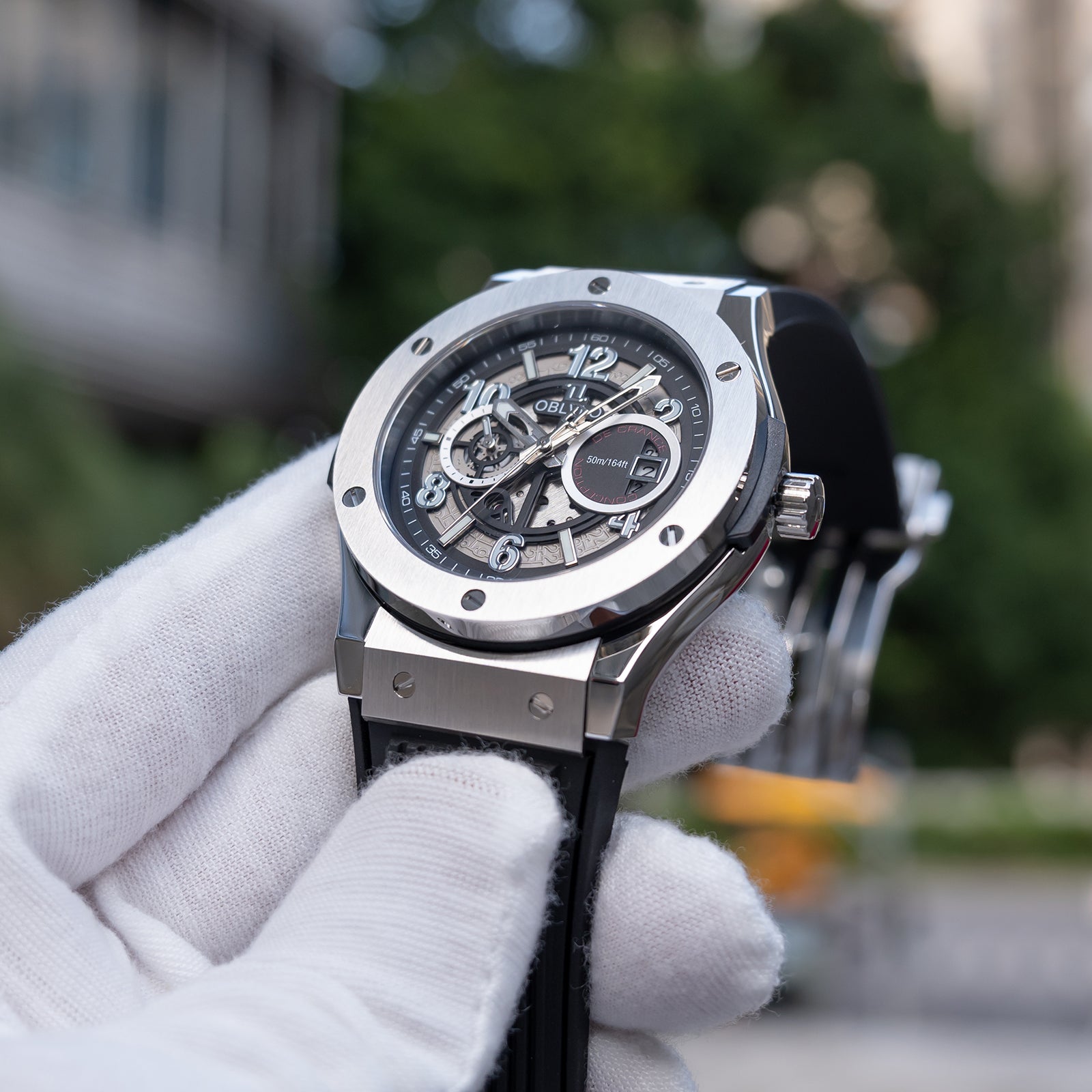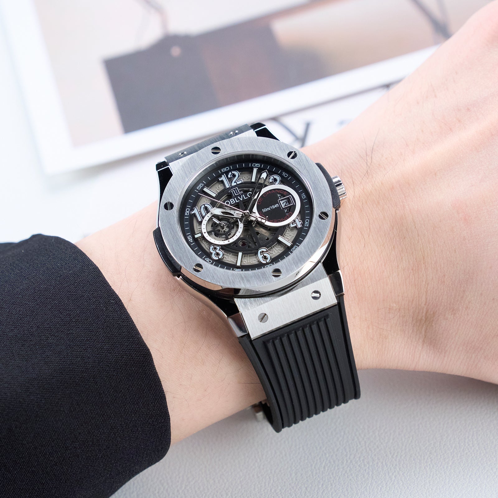 Dial Design: Featuring a sophisticated black dial with date display and stainless steel case for a timeless appearance