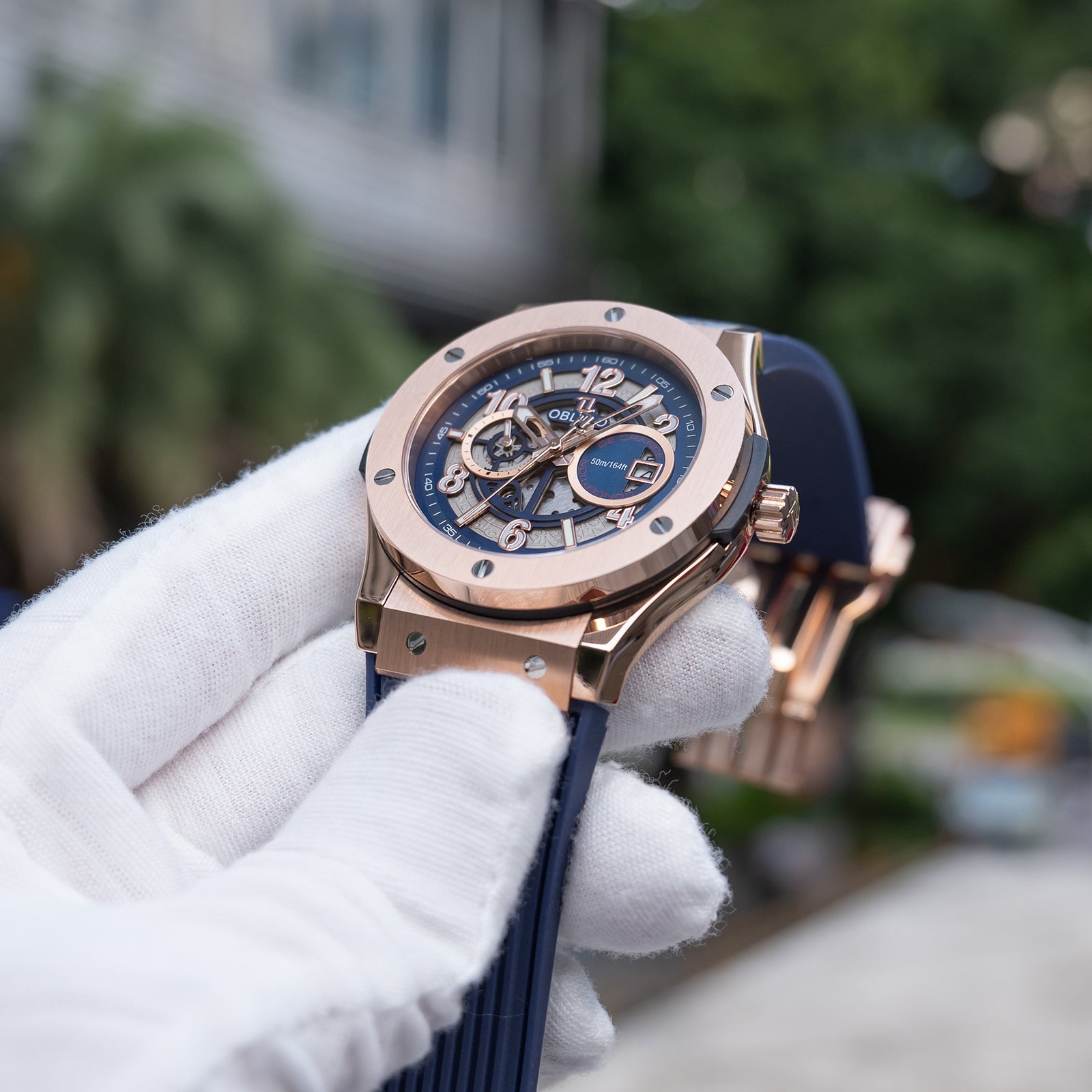 Dial Design: Featuring a sophisticated blue dial with date display and stainless steel case for a timeless appearance