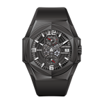 Dial Design: Black Dial & Multifunctional Mechanical Watch face is designed with day, hours instruction, luminous hands display & the pointer is made of a zero-radioactivity super-luminova swiss glow in the dark material. The new geometric line design of the multi-geometric space breaks the rule of square or circle. The back face is combined with the dial geometry design.