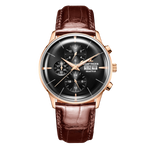 The dress watches features a classic round case made of 316 stainless steel plated with luxurious rose gold. The black dial adds a touch of sophistication, making it suitable for both formal and casual occasions. The timepiece is powered by a reliable Hangzhou 2350 movement, ensuring accurate timekeeping.