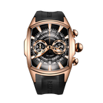 The Luxury Rose Gold Reef Tiger Aurora Tank VK Quartz Sport Chronograph Watch for Men is a true standout. This watch, model number RGA3069VK, boasts a striking tonneau-shaped case made of 316 stainless steel plated with rose gold. The combination of black and rose gold on the skeleton dial exudes sophistication and style.
