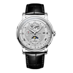 Dial Design: White Dial & Watch face is designed with simplified 12 o'clock position world time, 3 hours with calendar window, 6 hours day/night/24 hours instruction & moonphase style dial.