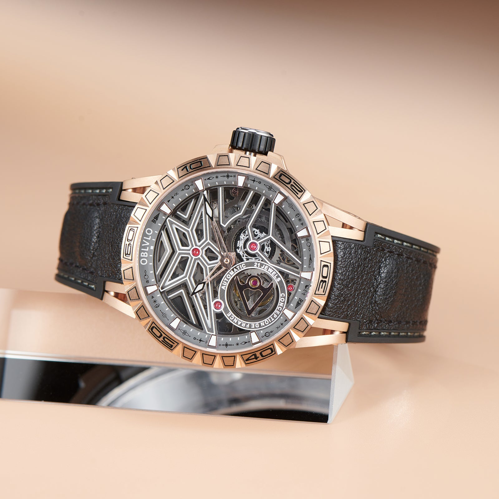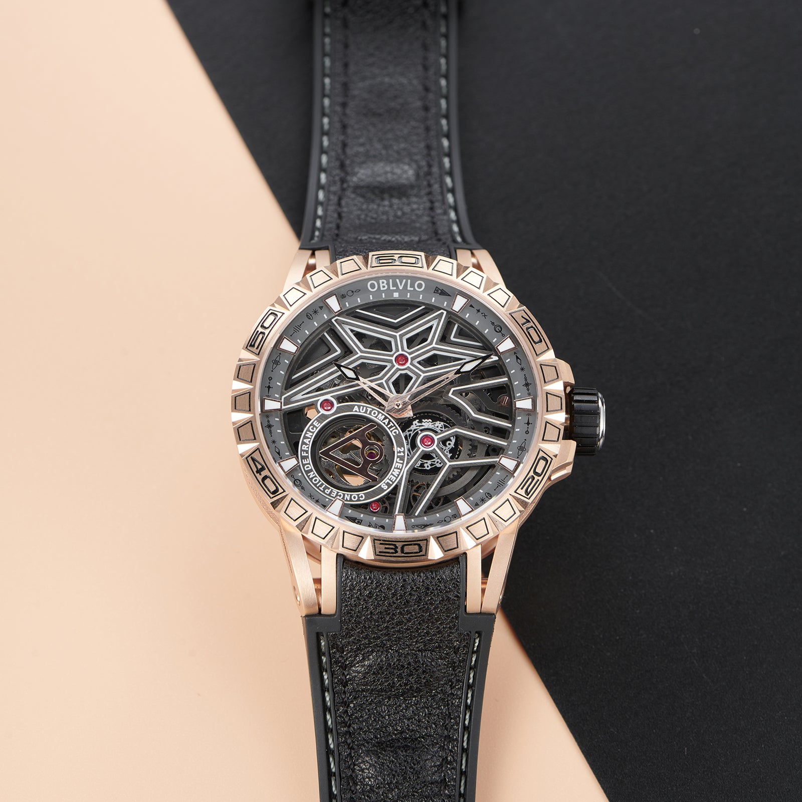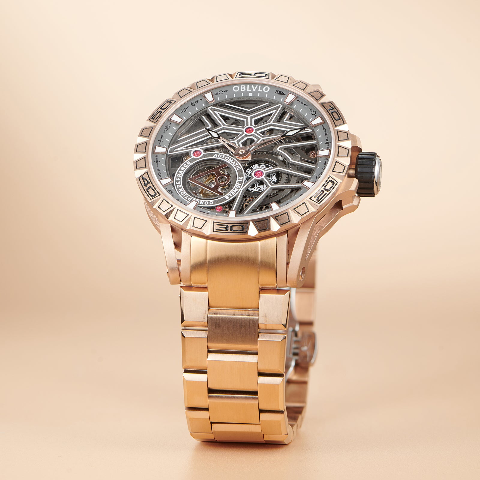 At the heart of this remarkable watch is the reliable Miyota 82S5 movement. Known for its precision and durability, this automatic movement ensures that your watch is always in perfect working order, providing not just style but reliability as well. The combination of aesthetic appeal and mechanical excellence makes the Rose Gold OBLVLO LMQ one of the most sought-after automatic watches on the market today.