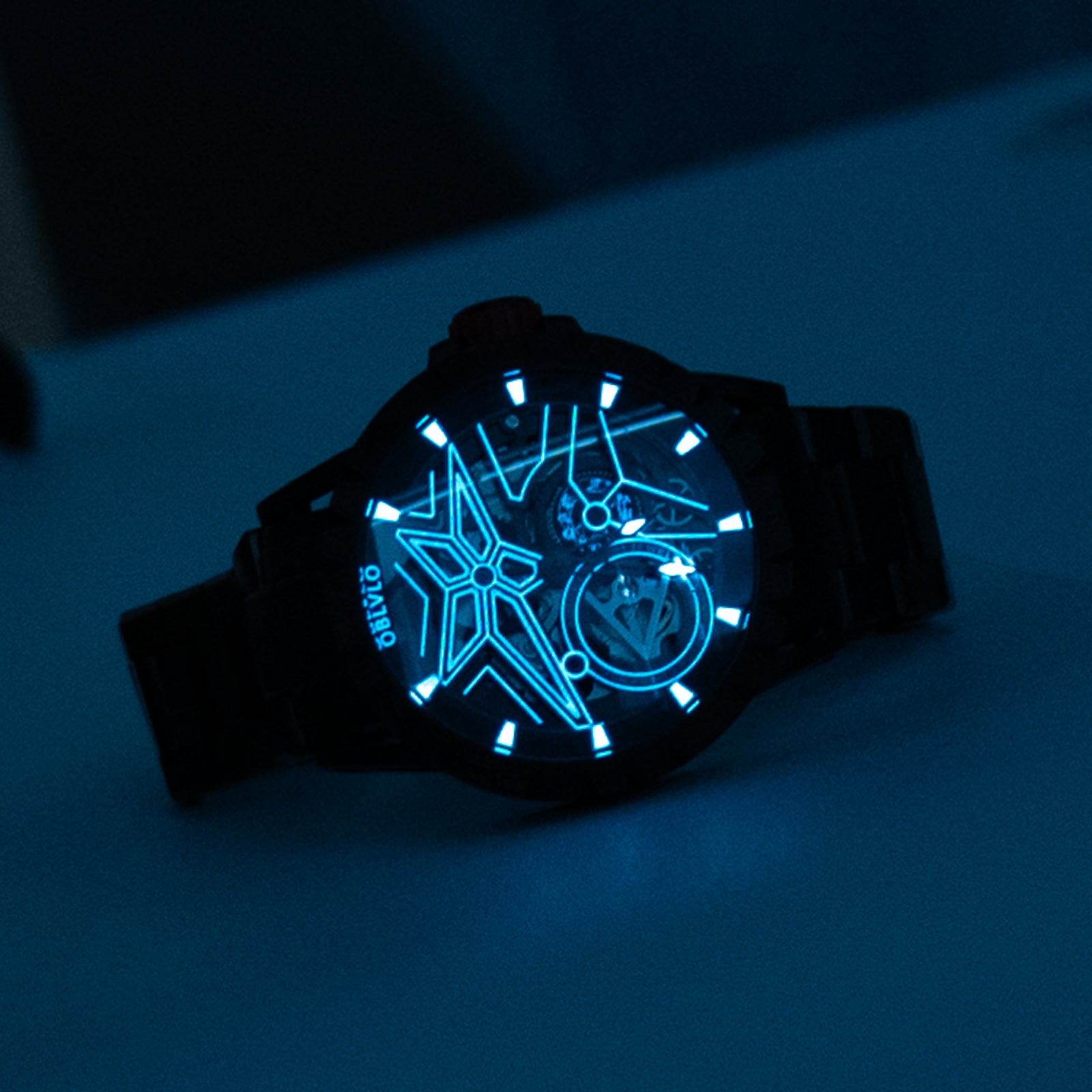What sets the OBLVLO LMQ apart from other skeleton watches is its captivating black skeleton dial, which is enhanced with super luminous features. This ensures visibility, even in low-light conditions, making it a practical choice for night outings. Adding an astrological flair, the watch features a plate representing the 12 constellations, beautifully highlighted by the watch's intricate skeleton design. The second hand elegantly sweeps across the dial, contributing to the watch's dynamic feel.