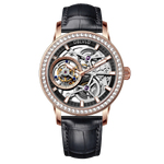Dial: Silver & Black Skeleton Dial, Rose Gold Indices And Hands With Luminescent Coating