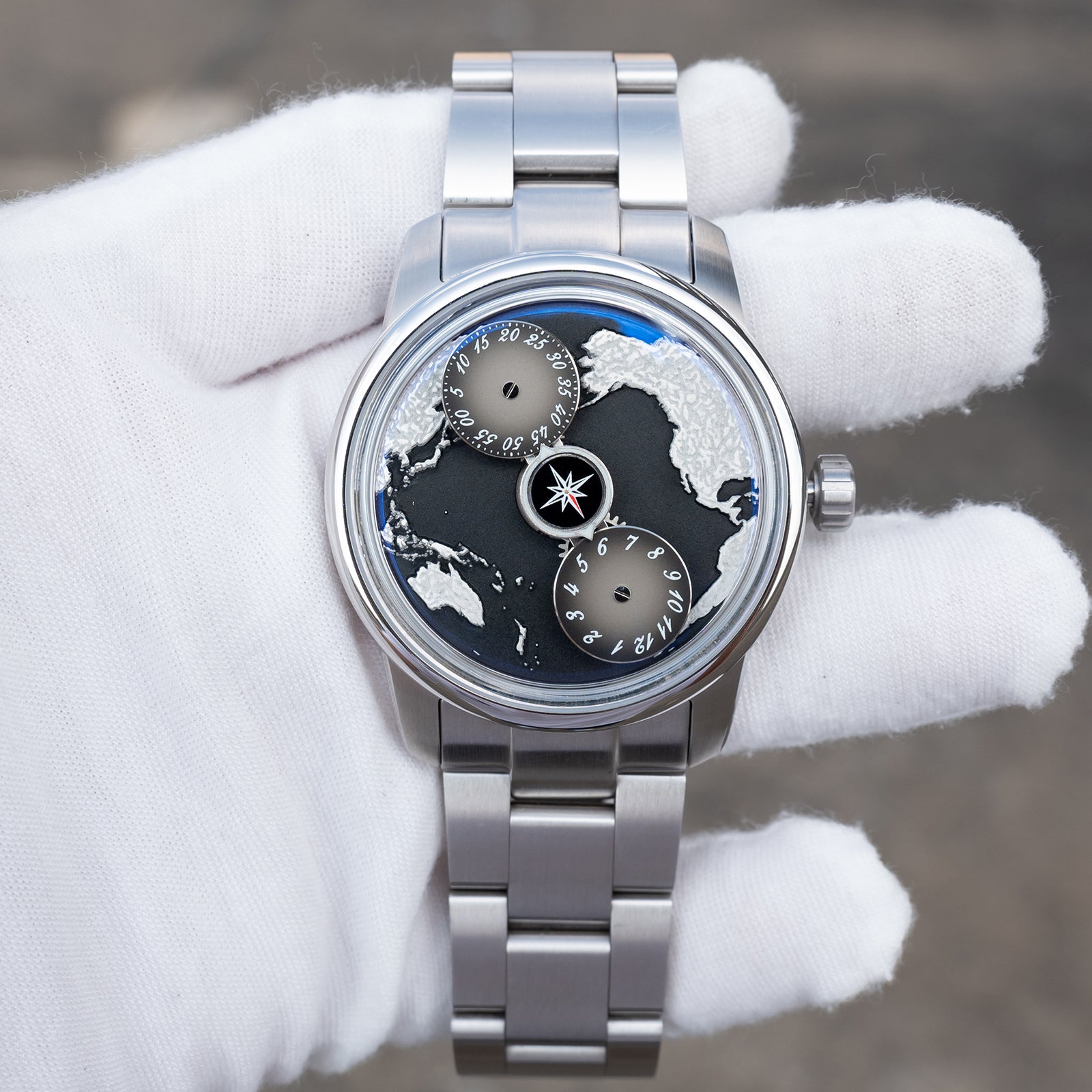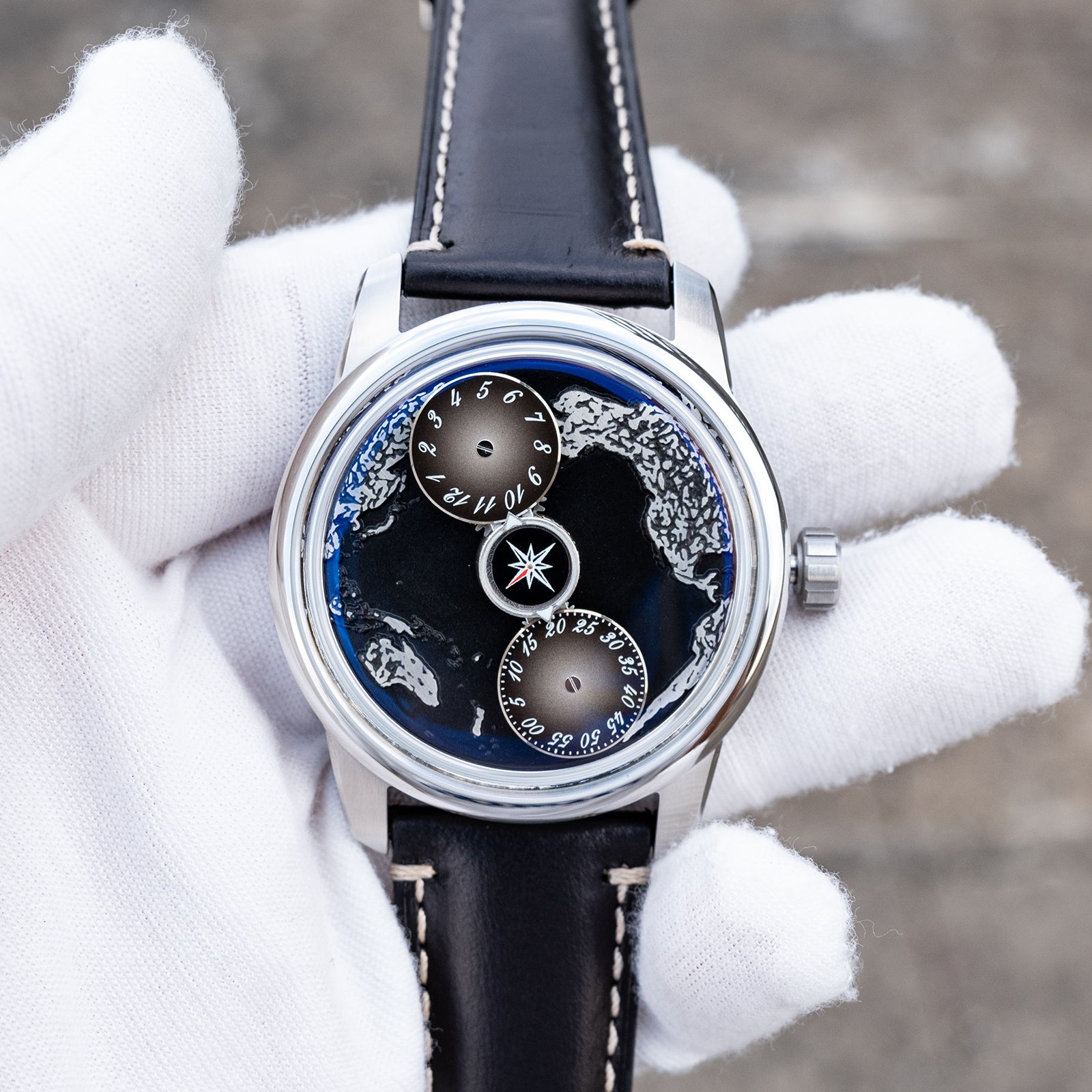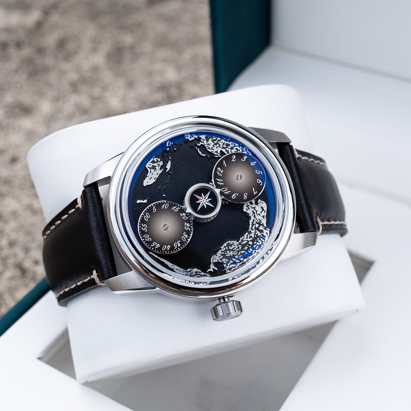 Dial:Black Earth Ocean Map Dial, Unique Flying Mechanical Sports Indices And Hands With Luminescent Coating