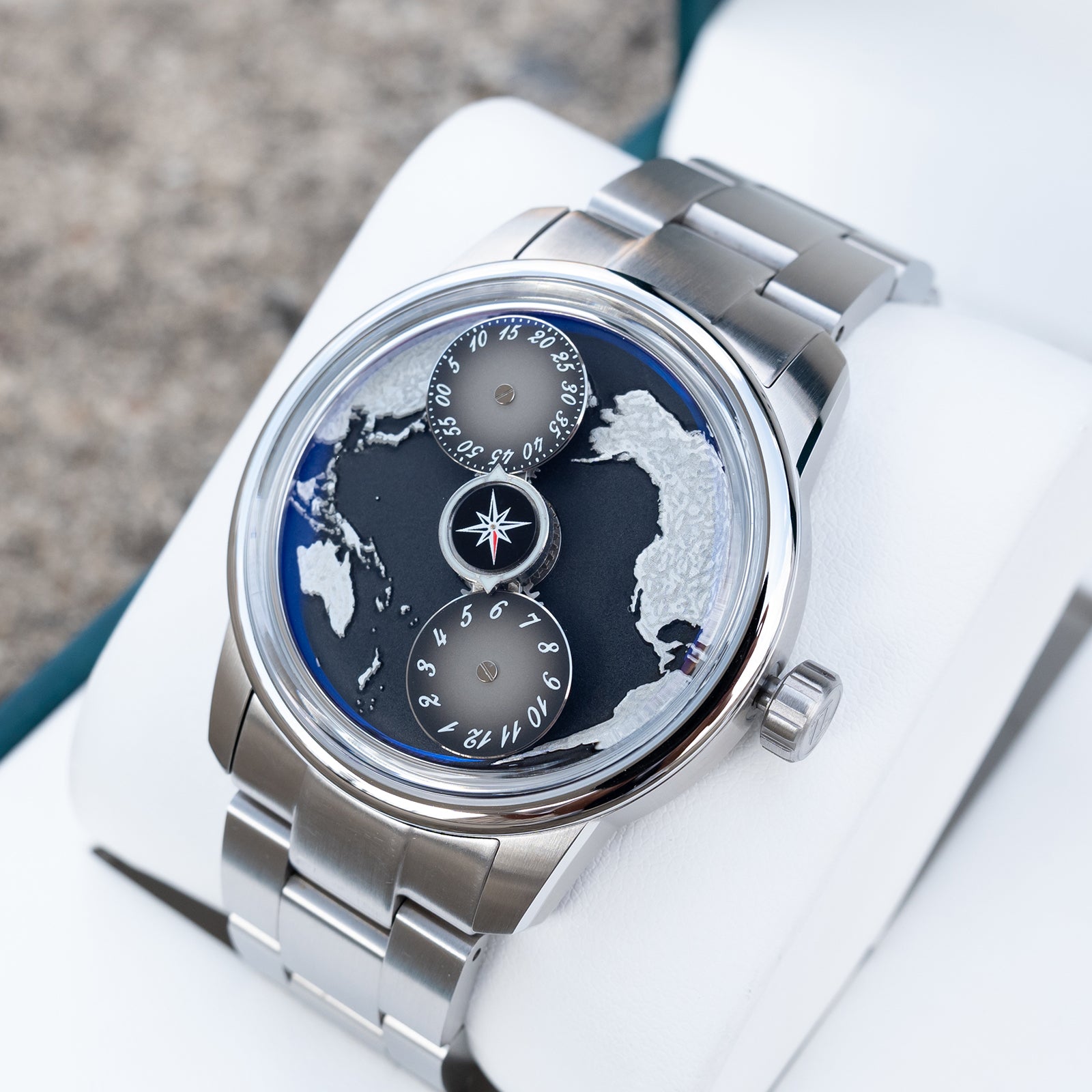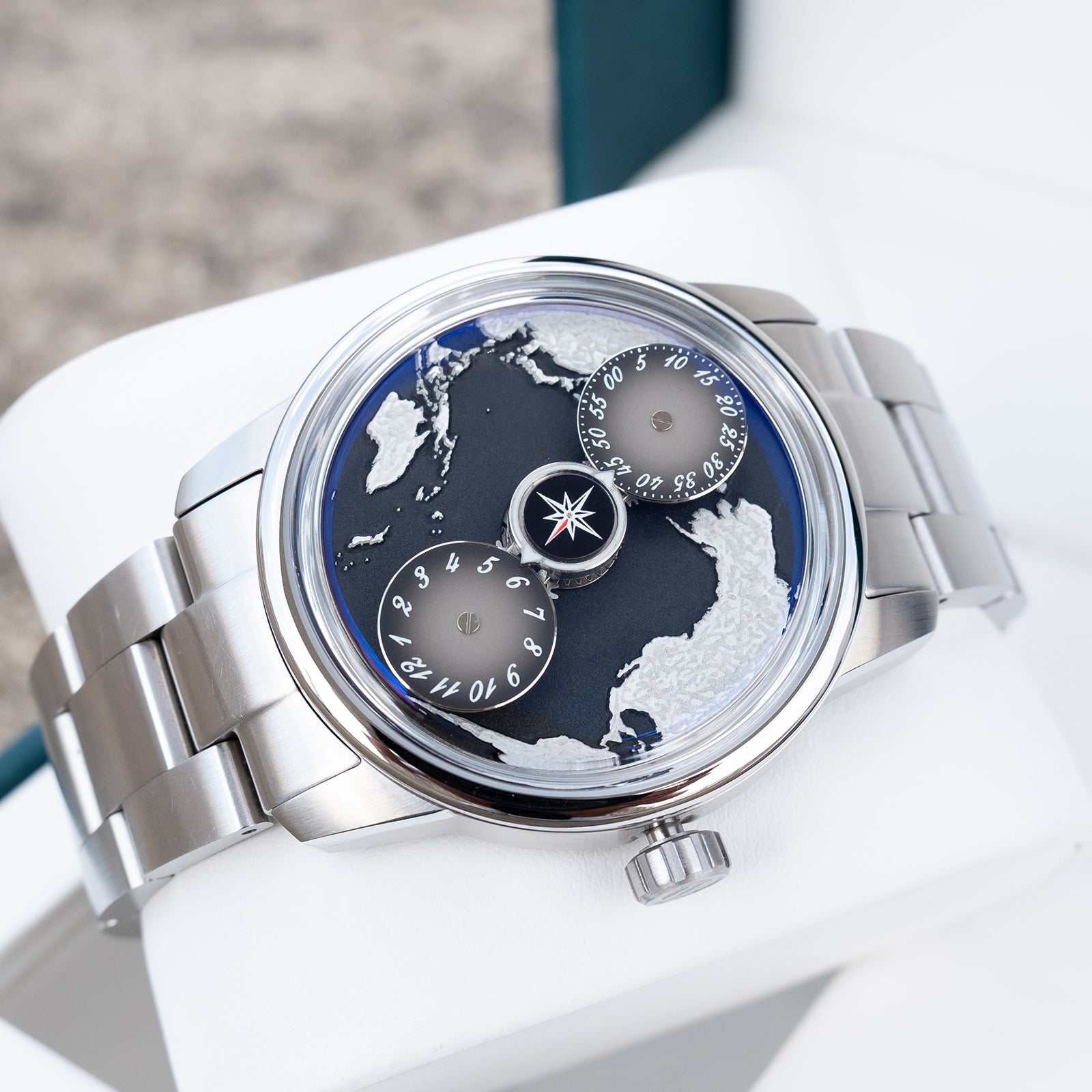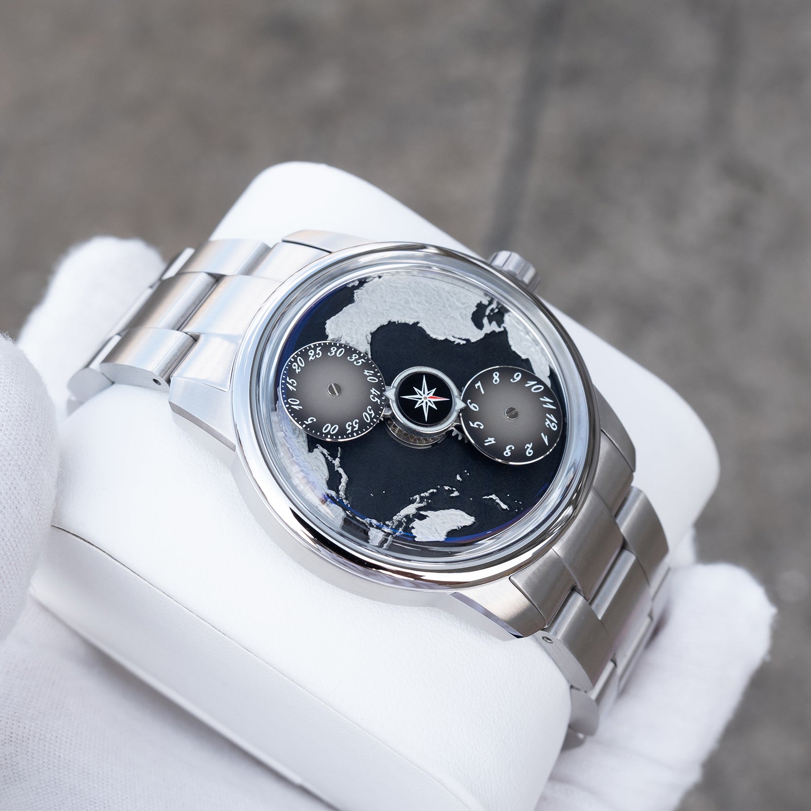 Dial:Black Earth Ocean Map Dial, Unique Flying Mechanical Sports Indices And Hands With Luminescent Coating