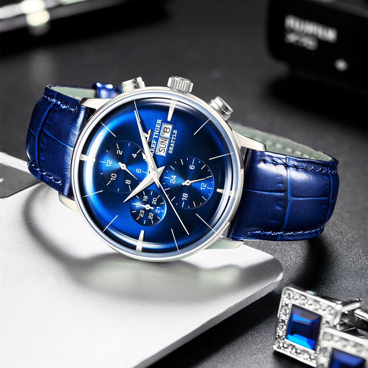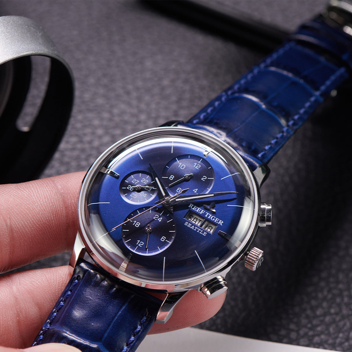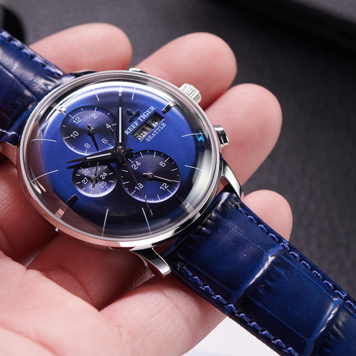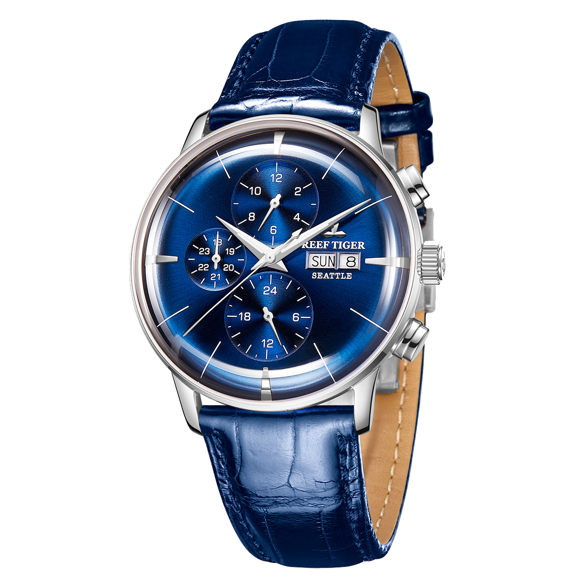 Introducing the Perfect Mens Vintage Dress Automatic Chronograph Watch from Reef Tiger Seattle Chiefs, a timepiece that exudes elegance and craftsmanship.