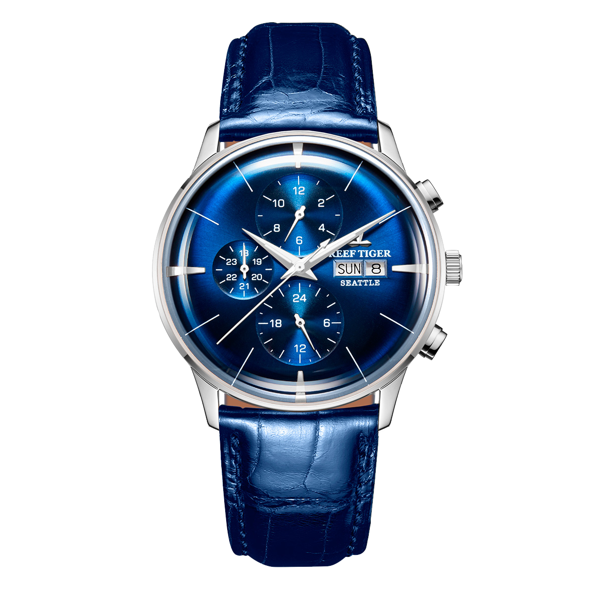 Completing the classic look of the dress watches is the bow buckle, adding a vintage touch to the timepiece. With its timeless design and impeccable quality, the Perfect Mens Vintage Dress Automatic Chronograph Watch from Reef Tiger Seattle Chiefs is a true statement of style and sophistication.