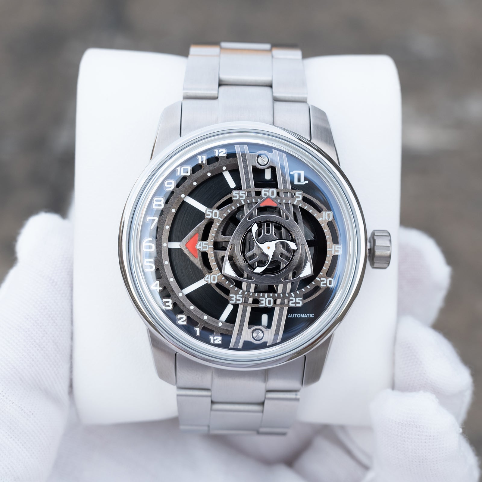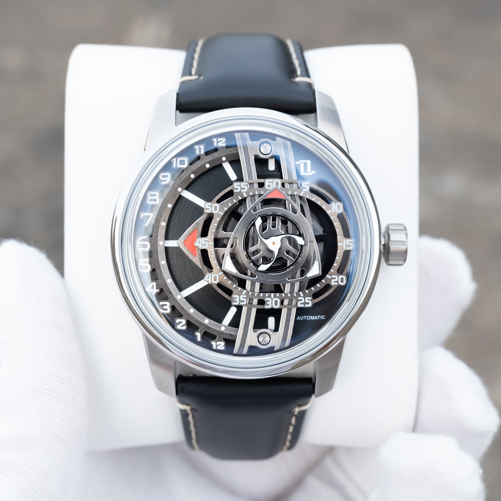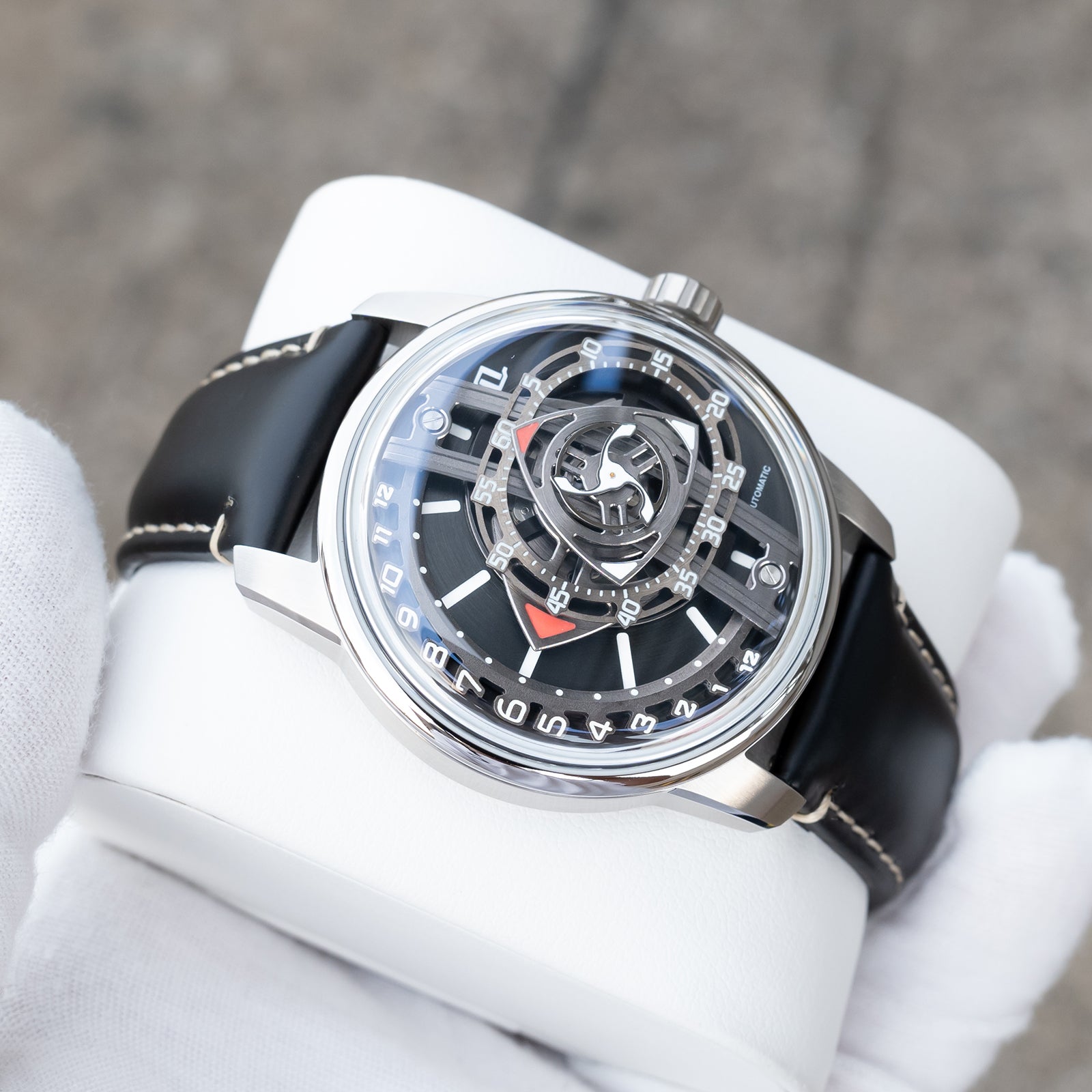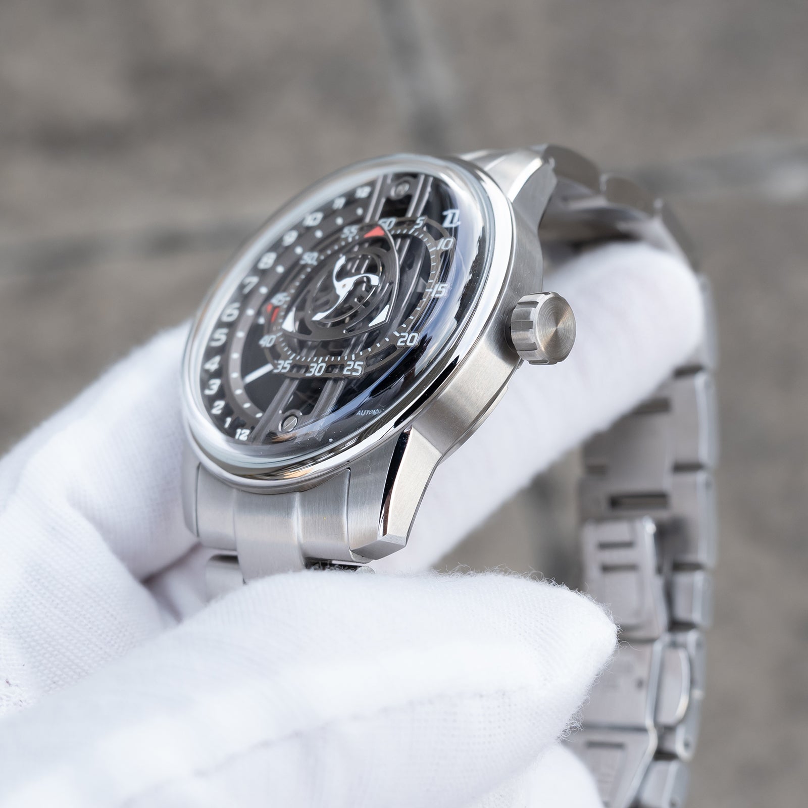Das Herzstück der JM ROTOR-Serie ist ein faszinierendes Skelettzifferblatt, das einen Blick auf die komplexen Mechanismen im Inneren gewährt. Das einzigartige schwarze Skelettzifferblatt, ergänzt durch ein sportliches Zifferblatt mit Rotationsmechanismus, strahlt zeitgenössische Eleganz aus. Angetrieben von einem Automatikwerk vereinen diese Uhren Form und Funktion nahtlos.