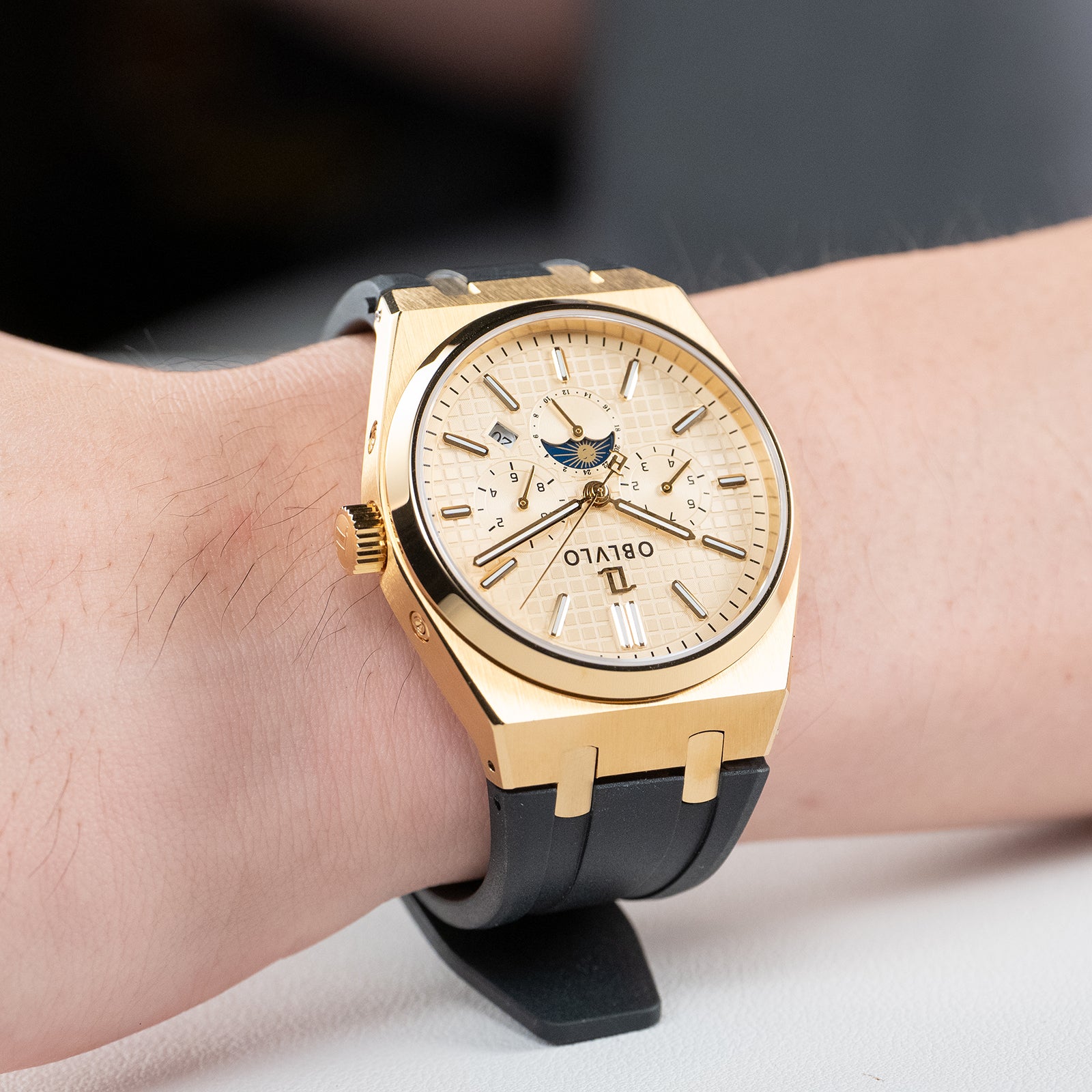 Veredeln Sie Ihren Stil mit der OBLVLO TM-MUT 3-Eye aus Gelbgold, einer atemberaubenden Ergänzung für jede Herrenuhrensammlung . Diese außergewöhnliche Uhr vereint Eleganz und Funktionalität und eignet sich ideal für formelle Anlässe und den Alltag.