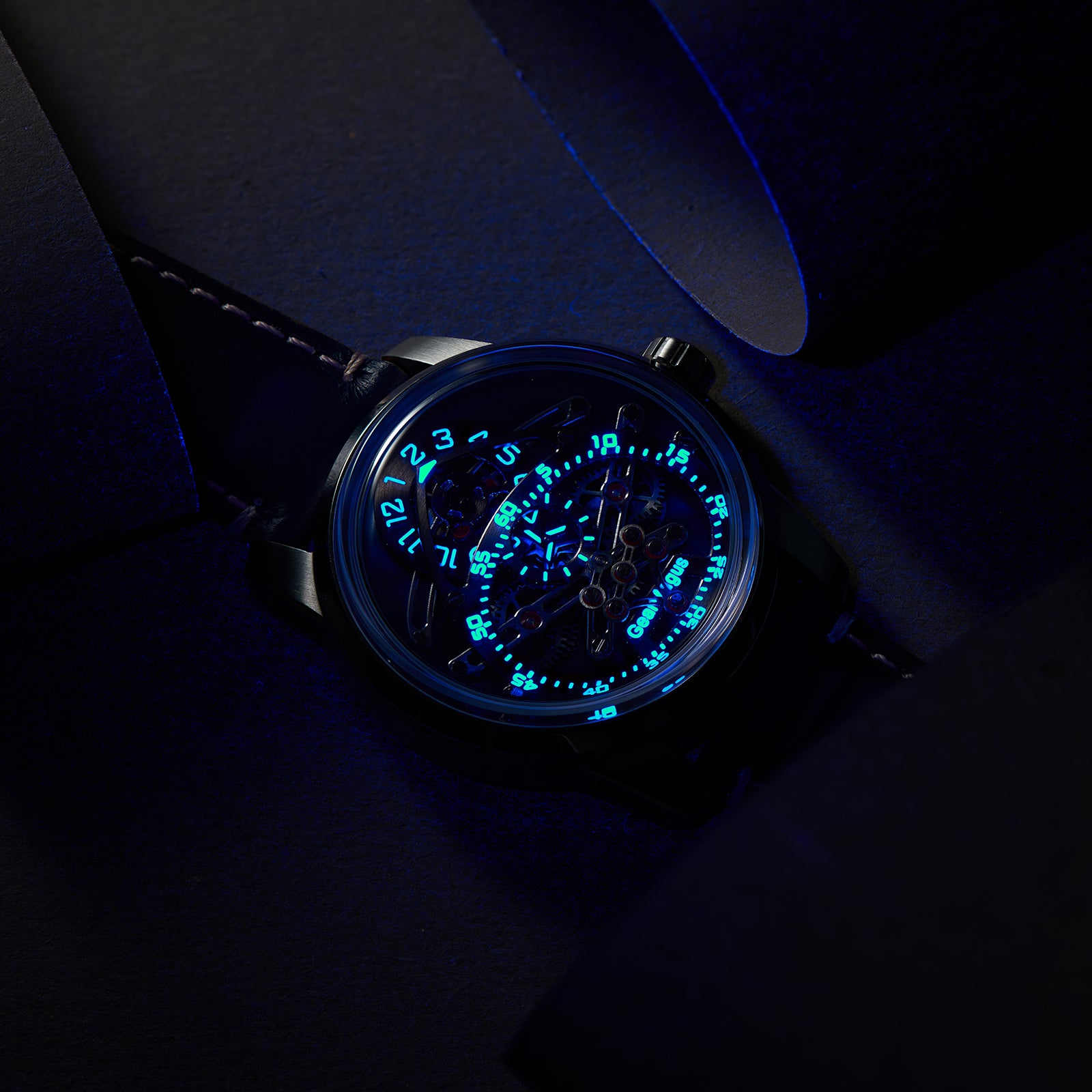 Dial:Blue Dial, Unique Skeleton Mechanical & Indices And Hands With Luminescent Coating