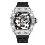 This Mens Diamond Skeleton Watch is a must-have for those who appreciate the finer things in life. Crafted with precision and attention to detail, the OBLVLO XM XSK Series features a Tonneau-shaped case made of 316 stainless steel, adorned with a dazzling Swarovski Crystal White Diamonds bezel. The black skeleton dial showcases intricate indices and hands with a luminescent coating, adding a touch of modernity to its classic design.