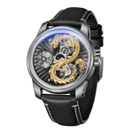 This luxurious yet affordable men’s watch is designed to impress with its eye-catching details. The black unique engine fan blade dial and the intricate 3D gold Chinese Dragon dial create a captivating visual experience. The mechanical rotating indices dial adds complexity and fascination, while the "YinYang" second hand showcases a thoughtful nod to balance and harmony—a philosophy deeply rooted in Chinese culture.