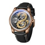 Dial:Black Unique Engine Fan Blade Dial & 3D Gold Chinese Dragon dial , Complex Unique Mechanical Rotating Indices Dial And "YinYang" Second hand