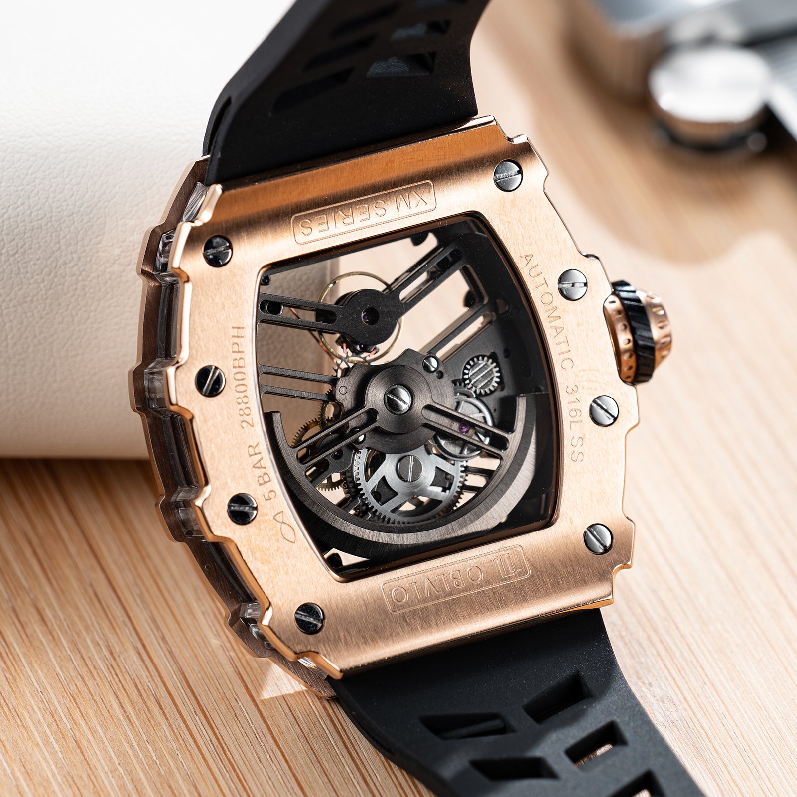 The OBLVLO XM XSK series of men's watches are a must-have for those looking for a unique blend of luxury, style, and functionality. With their skeleton design, automatic movement, and rose gold accents, these watches are sure to make a statement wherever they go. Elevate your look with these cool and stylish timepieces that are sure to turn heads and spark conversations.