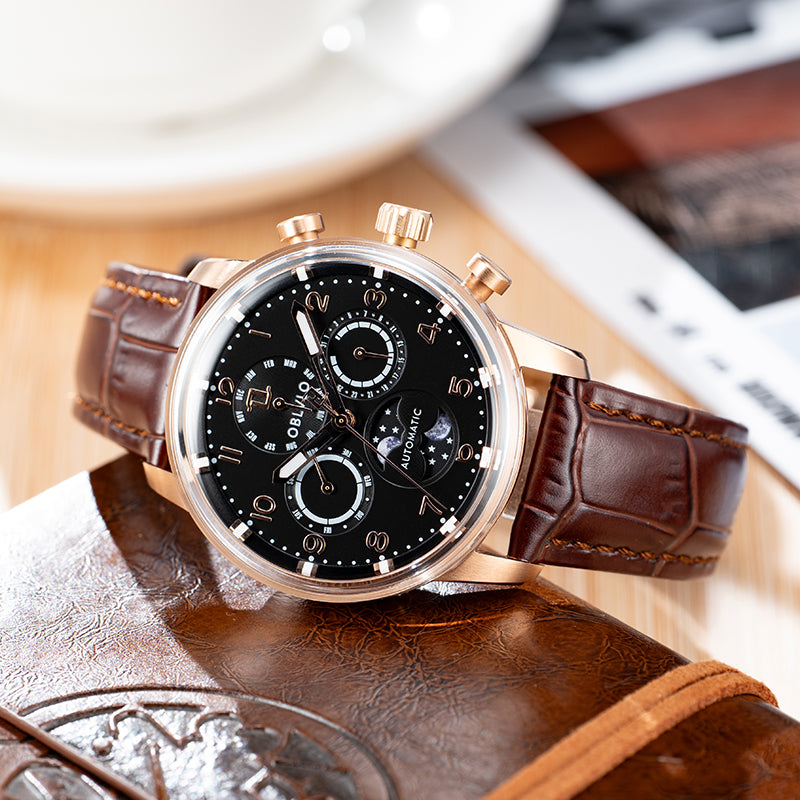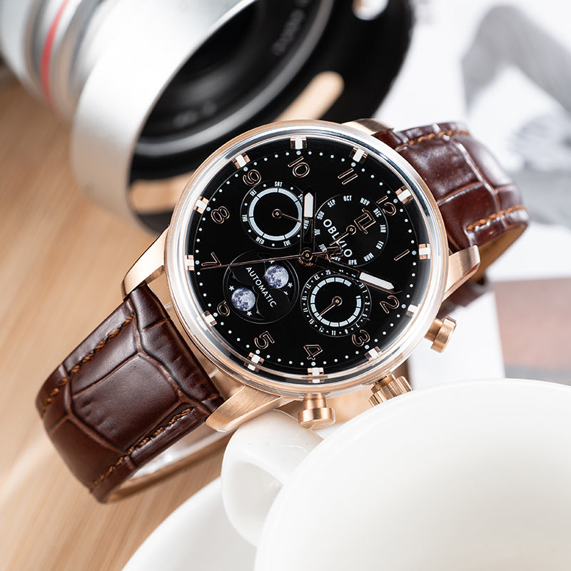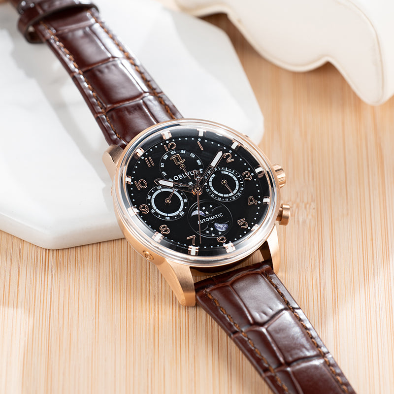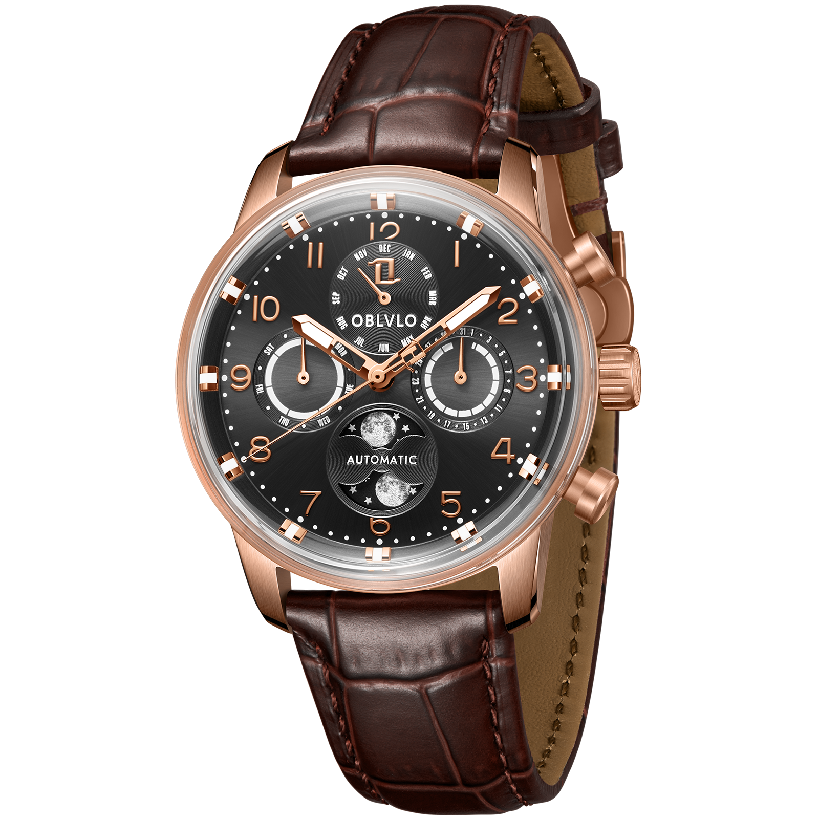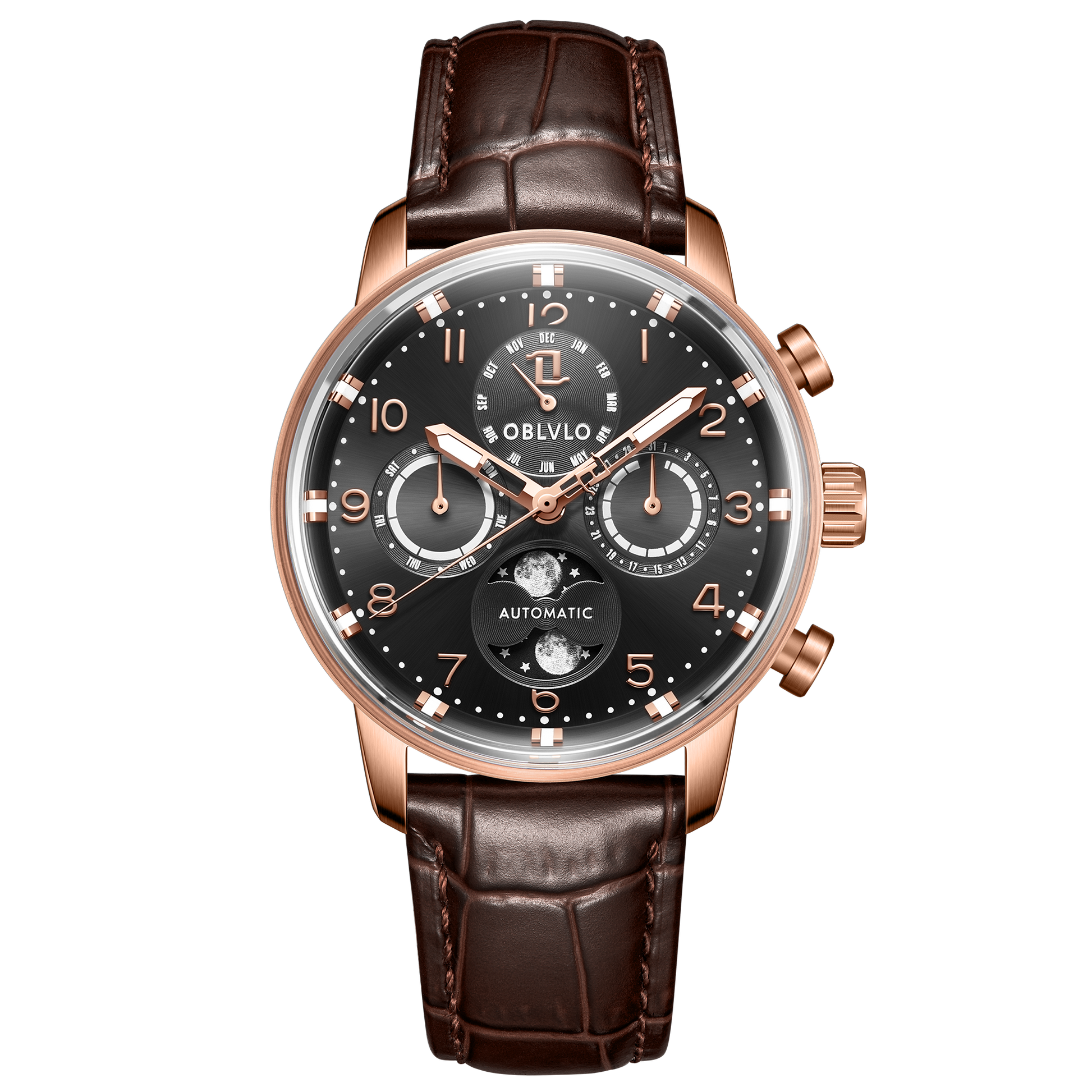 In conclusion, the OBLVLO IM MUT-MP Classic Moon Phase Luxury Rose Gold Mechanical Dress Watch is a masterpiece that embodies the essence of men's fashion. Its fusion of vintage aesthetics, automatic movement, and exquisite design sets it apart as a timeless classic in the world of dress watches. For those in search of a sophisticated timepiece that exudes elegance and craftsmanship, the OBLVLO IM MUT-MP is a must-have addition to any watch collection.