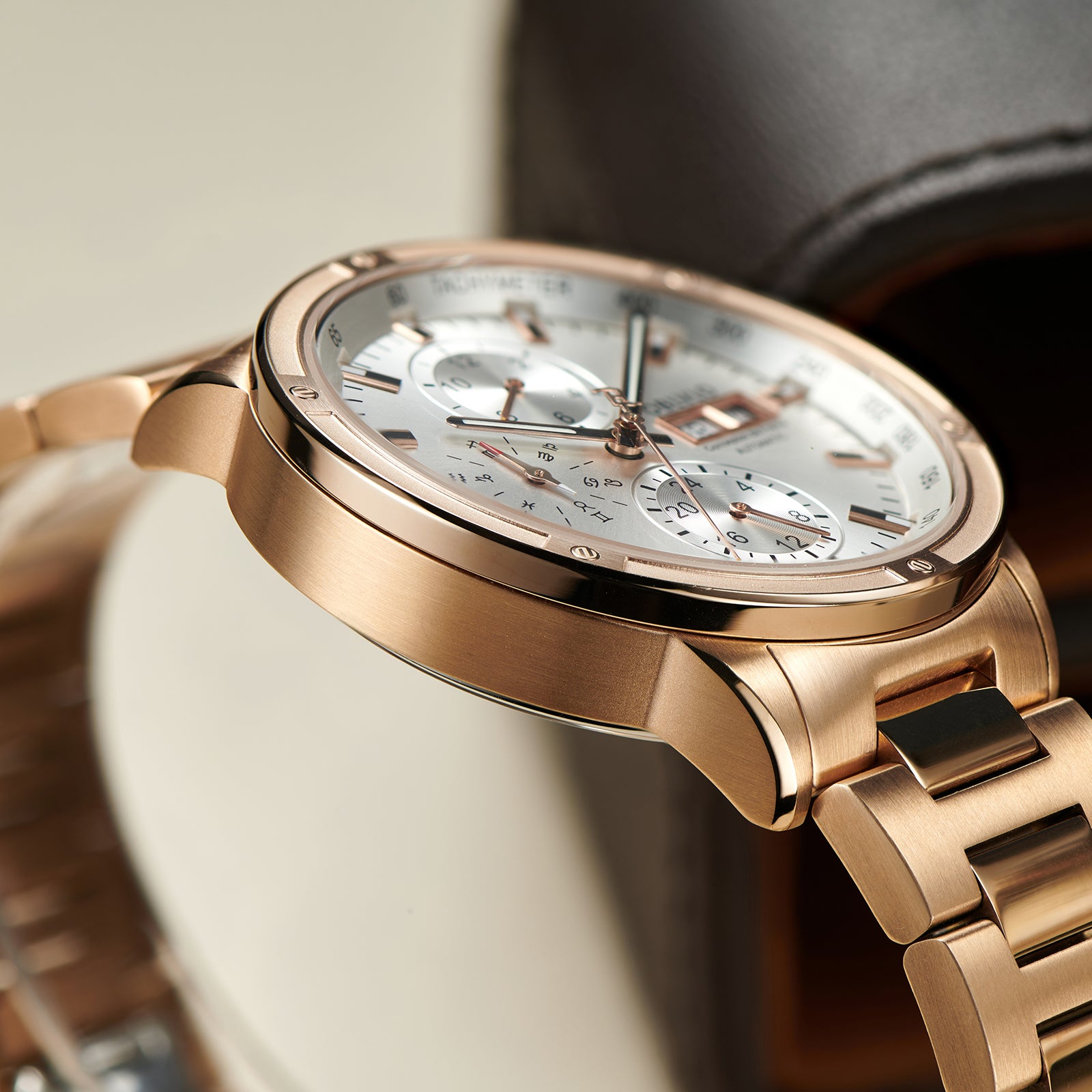 Dial:Silver dial, silver gradient,rose gold applied numerals with luminescent coating