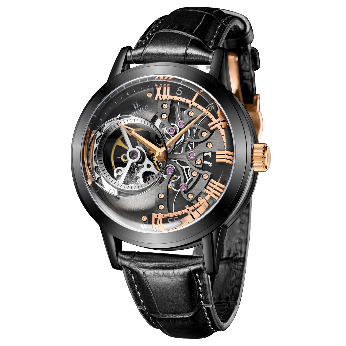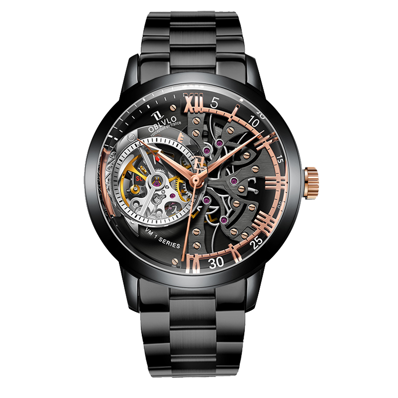 Oblvlo VM Series Men's Luxury Watches are renowned for their exceptional elegance. From the sleek black PVD plating to the intricate detailing, these Automatic Men's Watches effortlessly blend classic design with a modern flair. The black PVD coating not only enhances the aesthetic appeal but also ensures durability, making it a timeless investment.