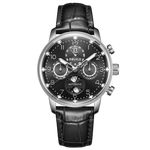 Crafted with precision and attention to detail, this watch features a classic round case made of 316 stainless steel, ensuring durability and a sleek aesthetic. The black dial with moon phases, luminous hands, and indices adds a touch of mystery and intrigue to the overall design, making it perfect for formal occasions or everyday wear.