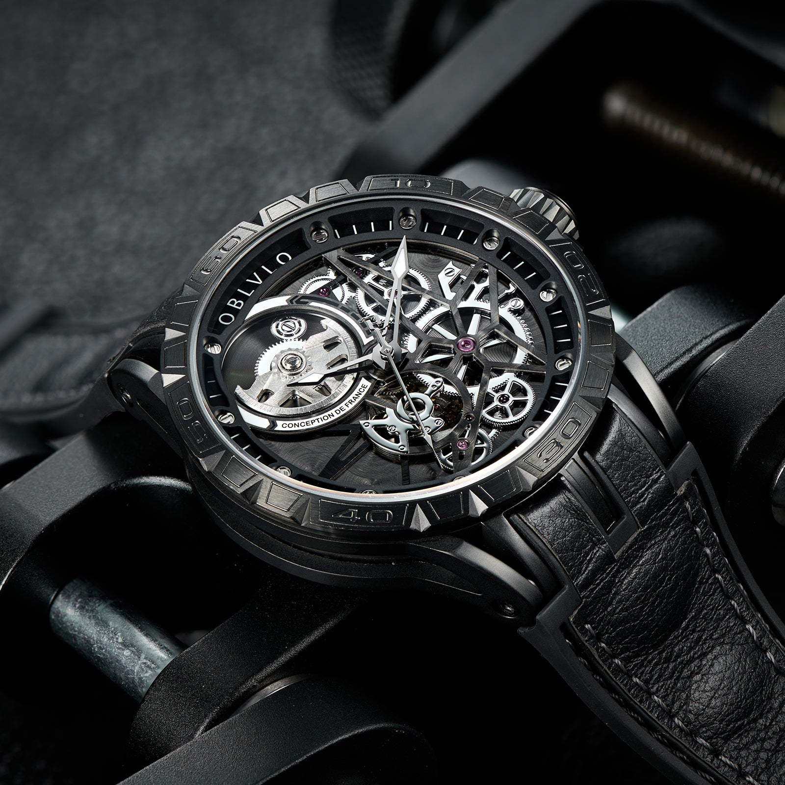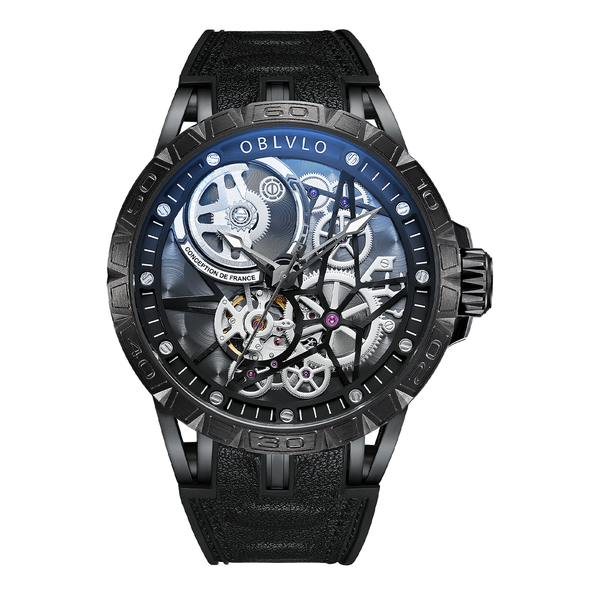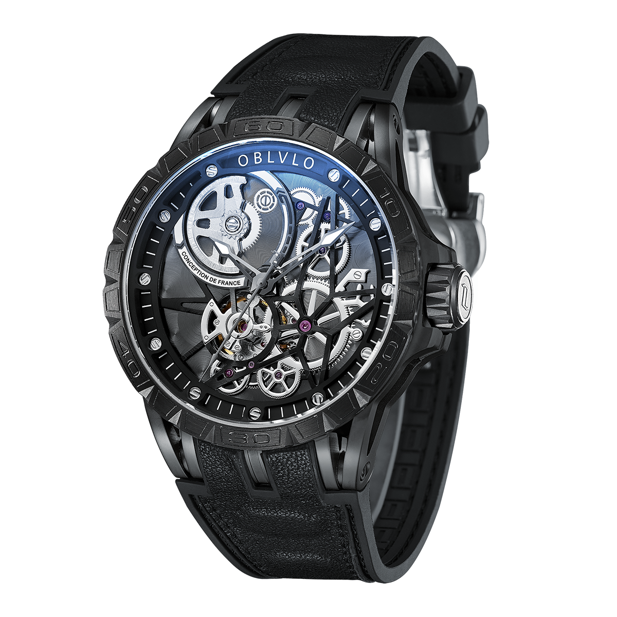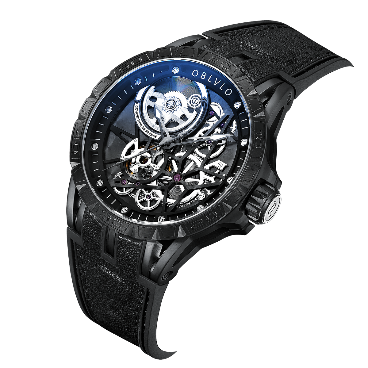 Oblvlo Men's affordable luxury automatic skeleton watches plated with black PVD are the epitome of style, functionality, and craftsmanship. With their functionality, automatic movement, durable PVD plating, and impeccable design, these timepieces are a testament to the brand's commitment to providing accessible luxury to watch aficionados. Indulge in the world of Oblvlo Men's luxury watches and experience the perfect balance between affordability and luxury.
